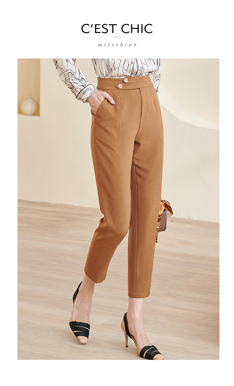 剩L 米思阳2024秋季新款时尚通勤九分休闲裤简约纯色修身铅笔裤女2310