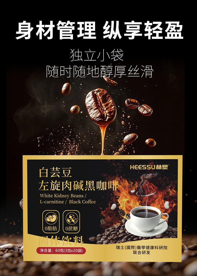 HEESSU赫塑 白芸豆左旋肉碱黑咖啡