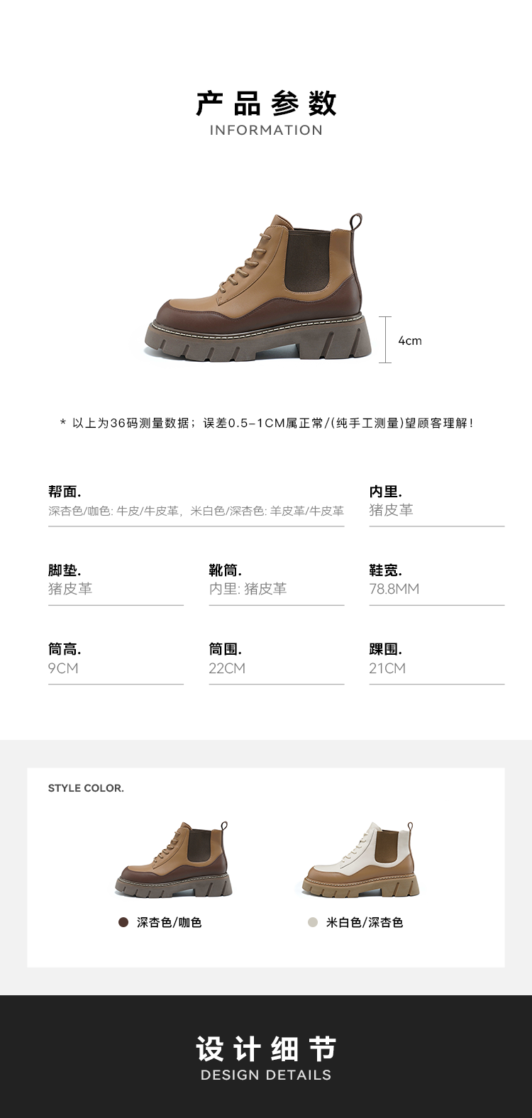 星期六时尚拼色厚底短靴SS34116584