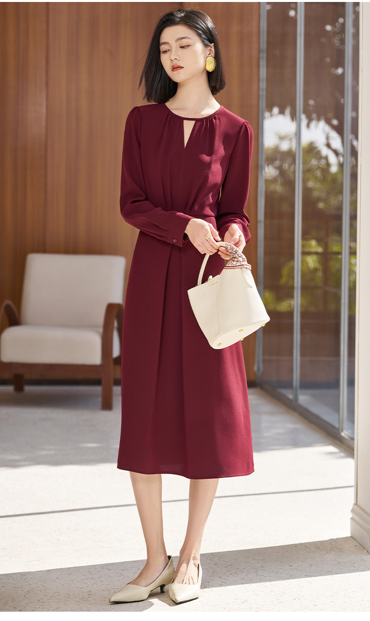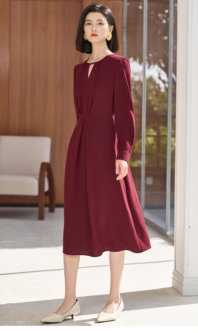 【气质优雅连衣裙】2026春季时尚简约红色A字裙5360