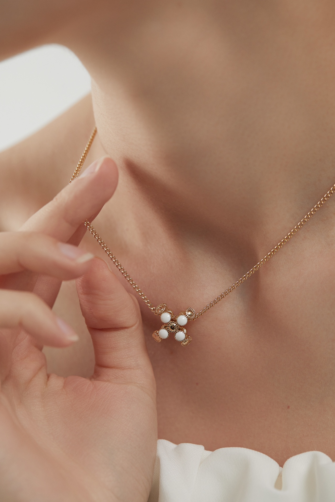 TYNVIE 露肩花边装饰短袖T恤 - 粉色