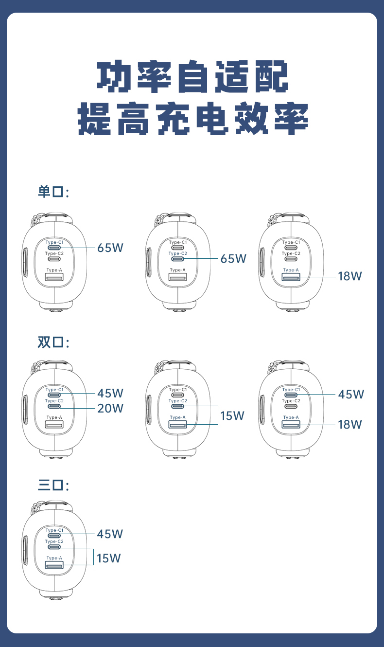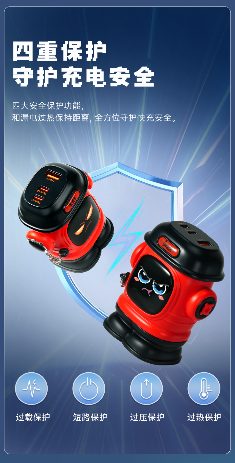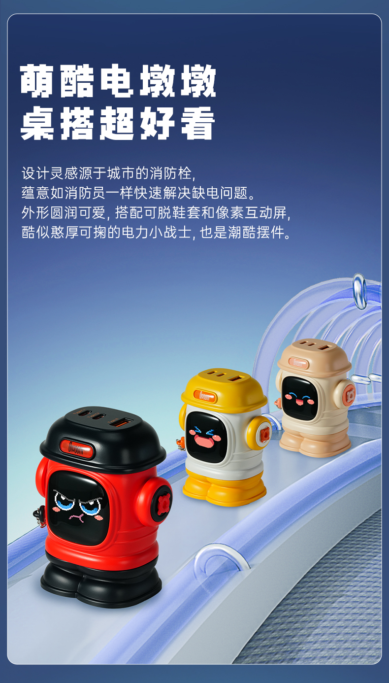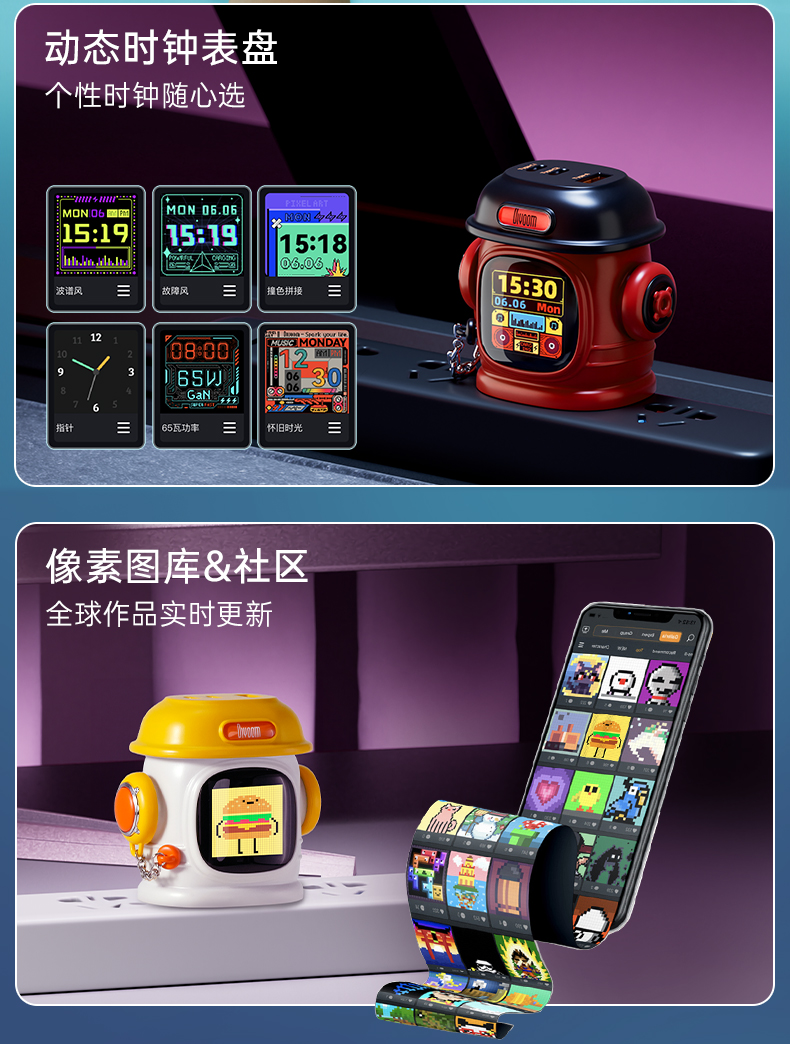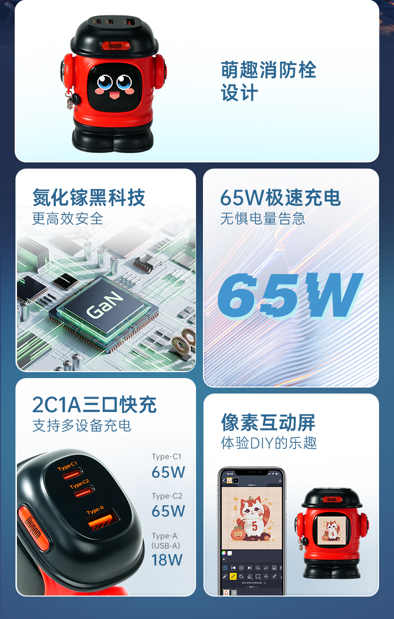 Divoom点音电墩墩65W充电头氮化镓快充插头适用于苹果16华为安卓平板笔记本电脑手机充电器桌面充电站桌搭