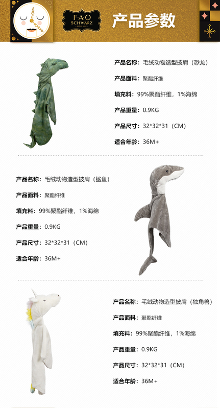 F.A.O. 毛绒动物造型披肩 (恐龙) TSFC6000328玩偶