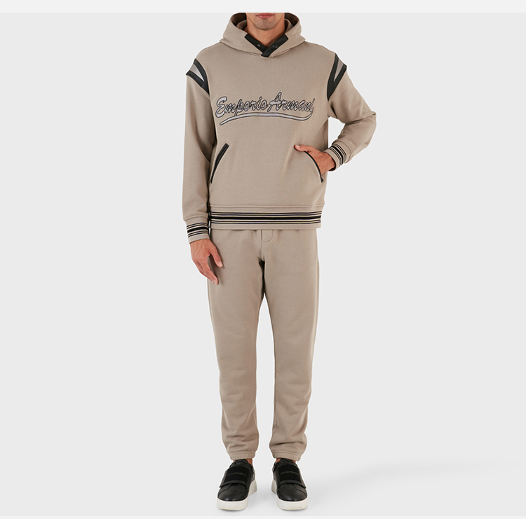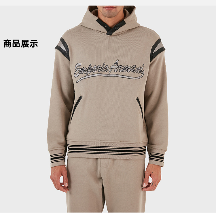 EMPORIO ARMANI 阿玛尼 男士徽标刺绣棉质连帽卫衣 淡褐色 6R1MG1 1JWPZ 0643
