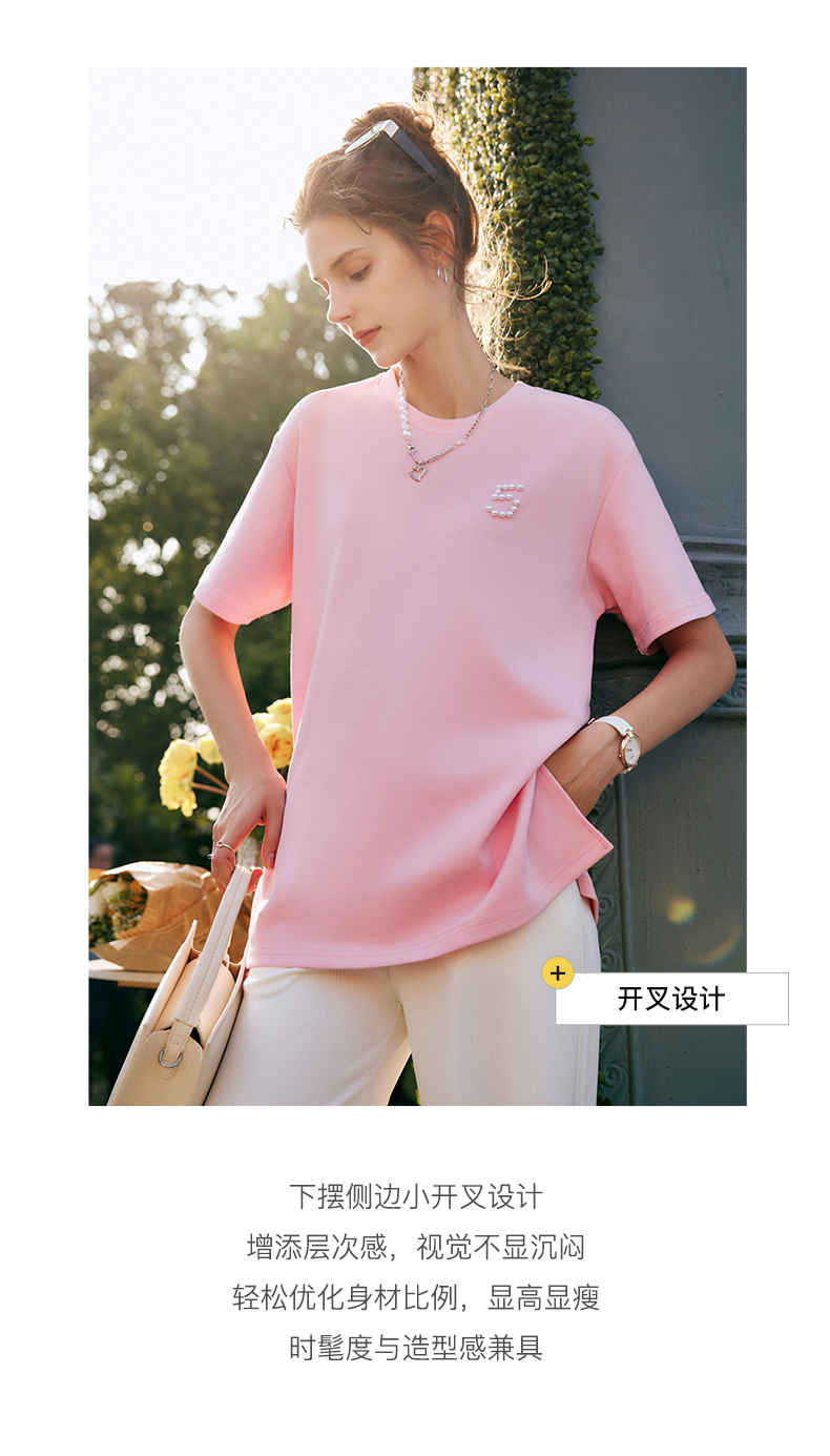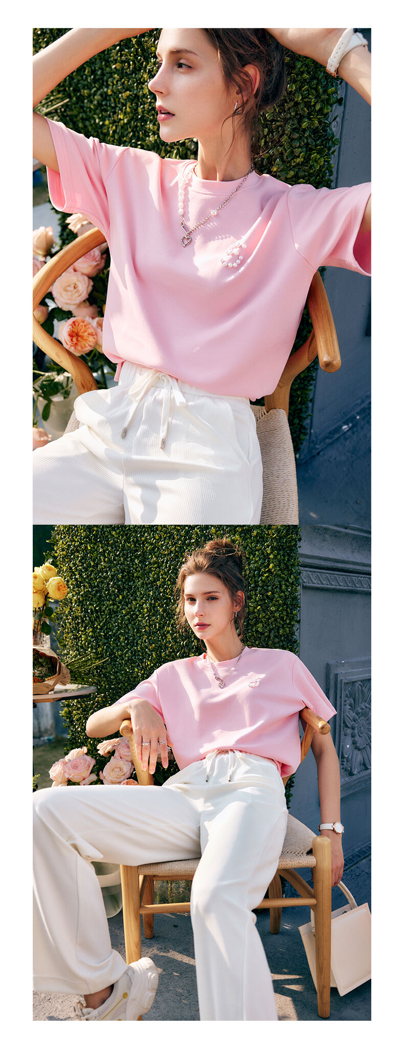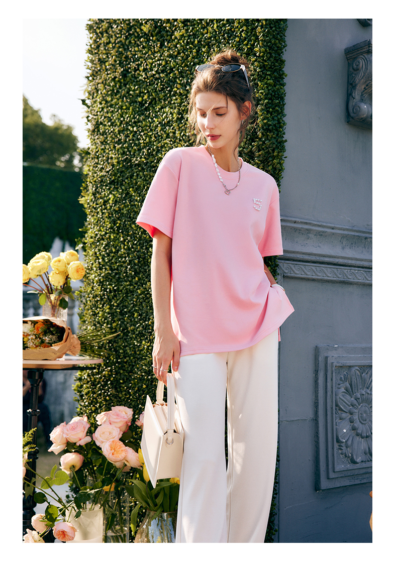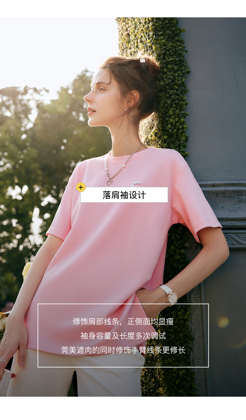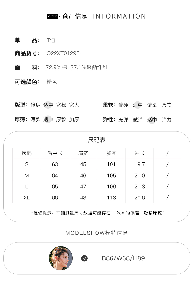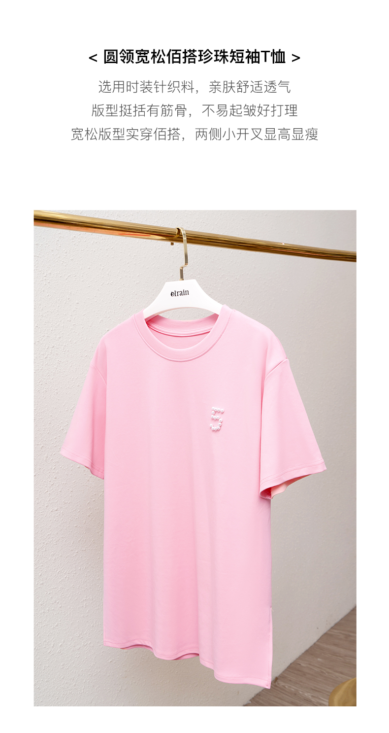 OLrain法式高级穿搭粉色短袖T恤女夏季2022年新款宽松设计感上衣