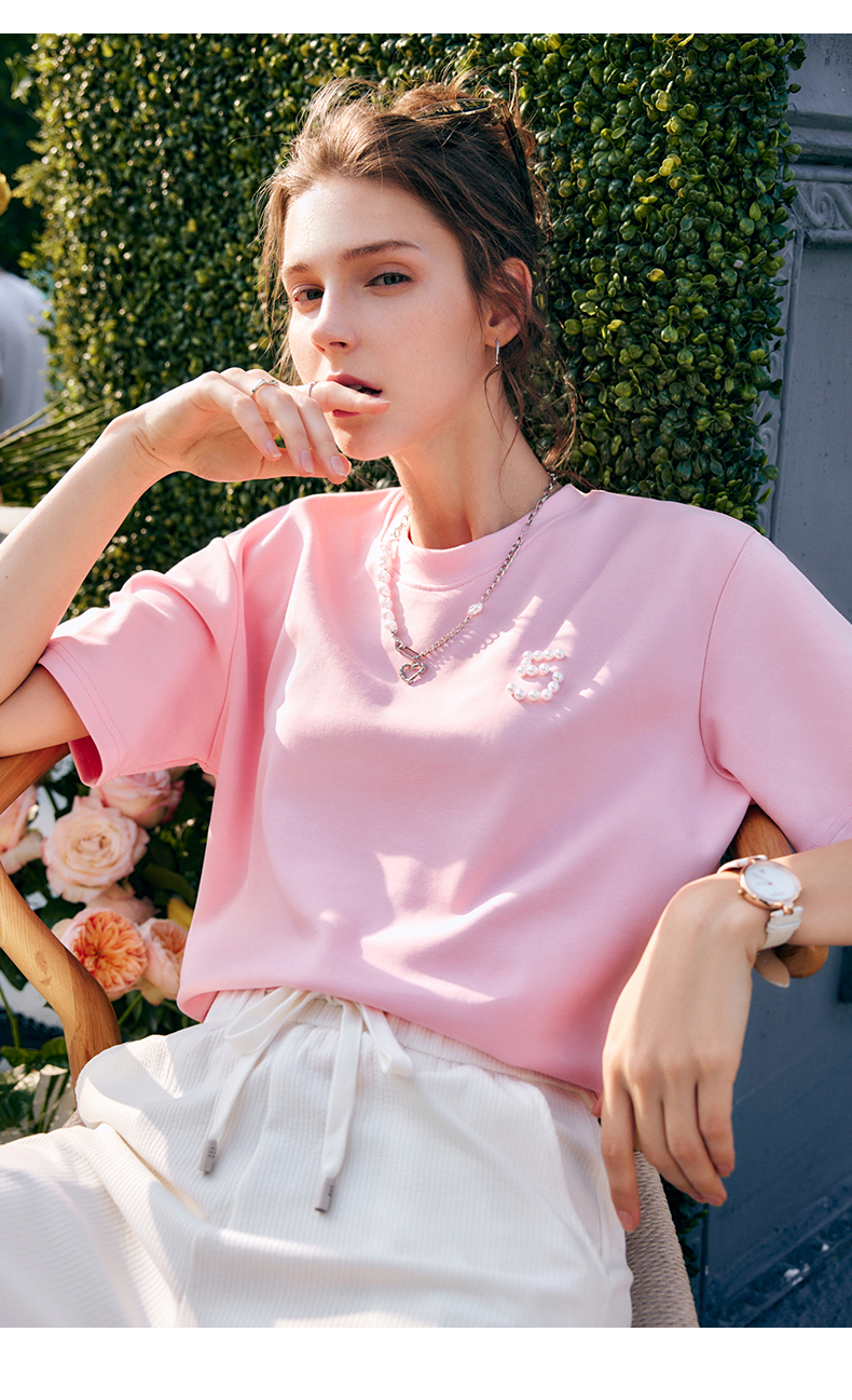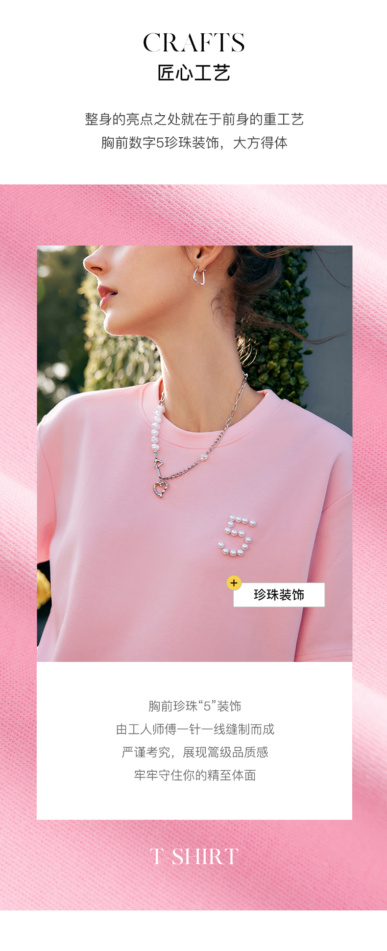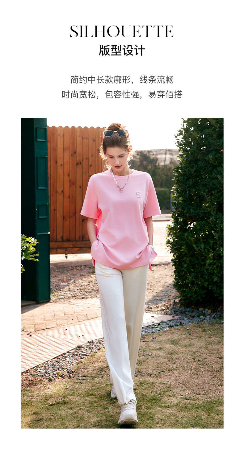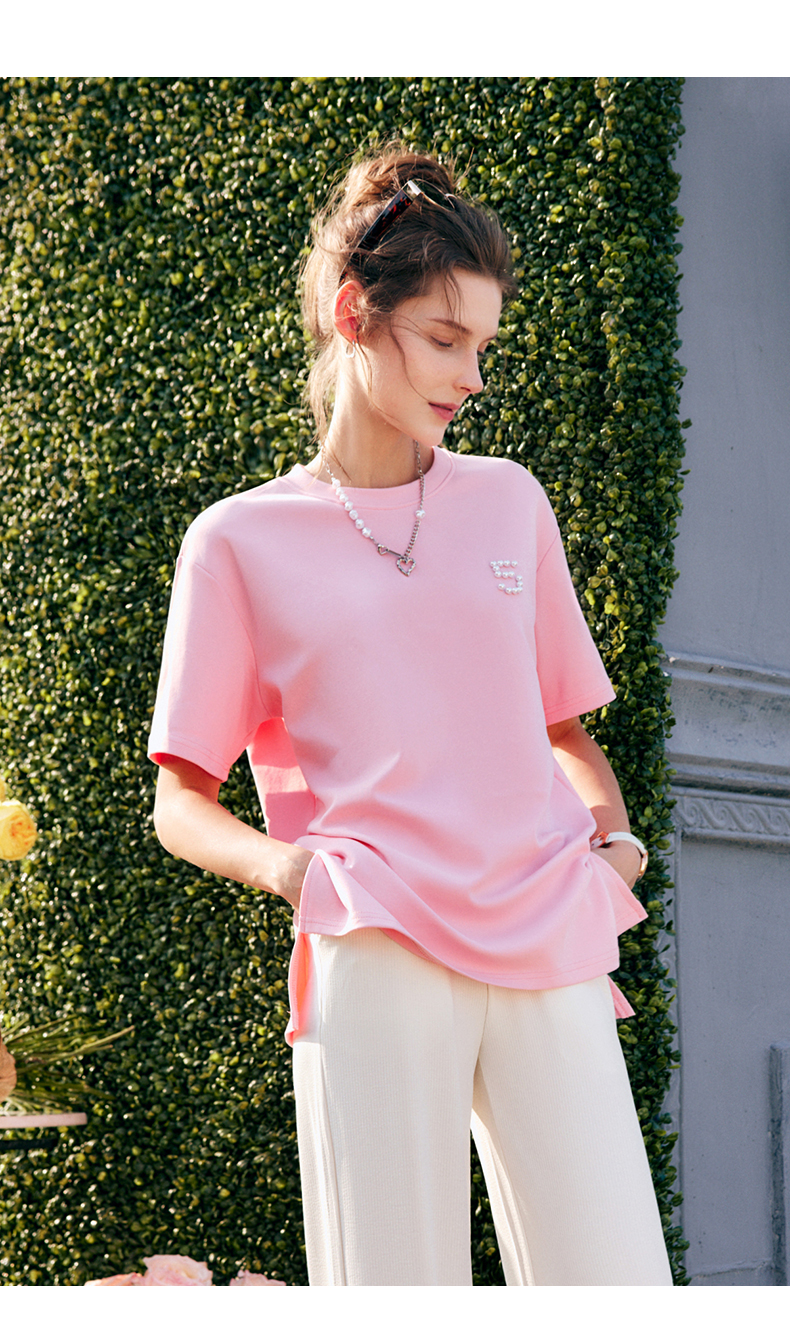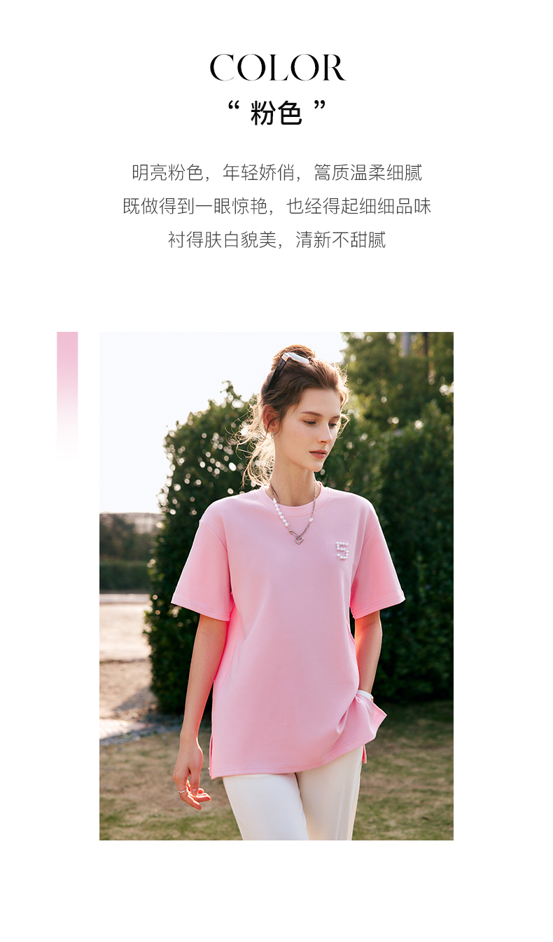OLrain法式高级穿搭粉色短袖T恤女夏季2022年新款宽松设计感上衣