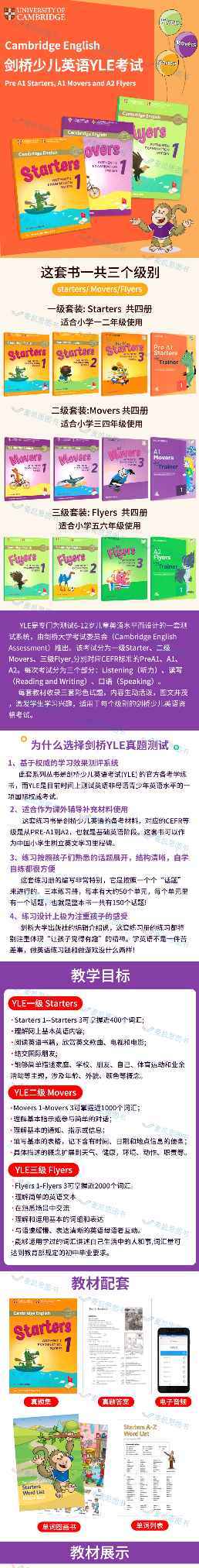 【麦凯思图书】原版进口剑桥少儿英语考试YLE一级官方测试真题cambridge english 全级别1/2/3级试卷小学认证全真试题集备考资料