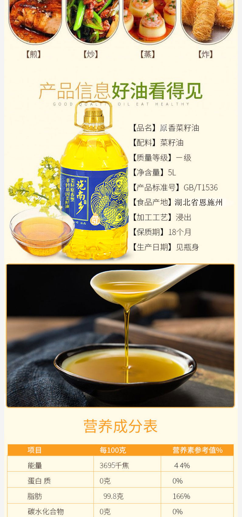 【严选】施南乡原香型菜籽油5L(厂家直发)