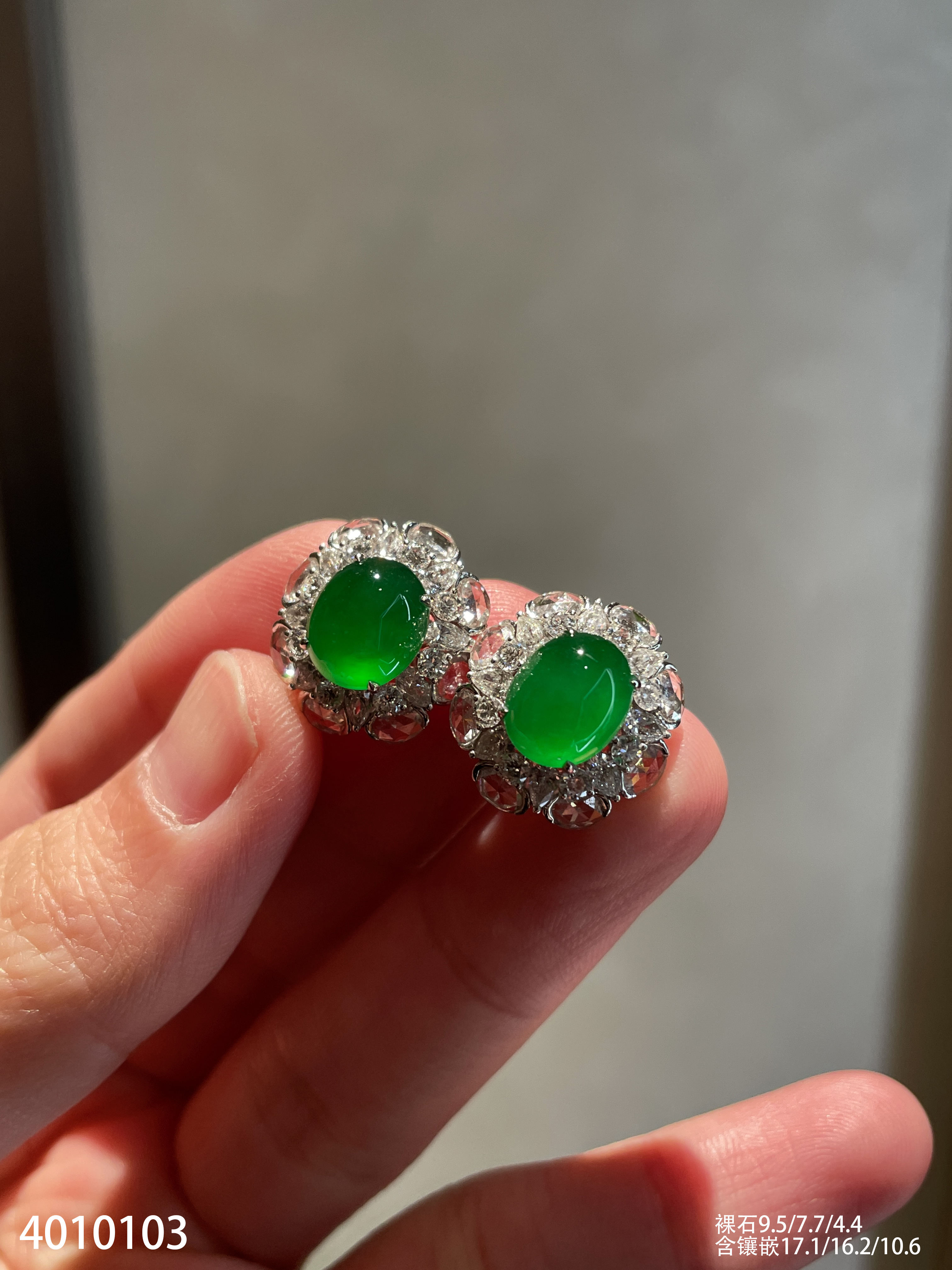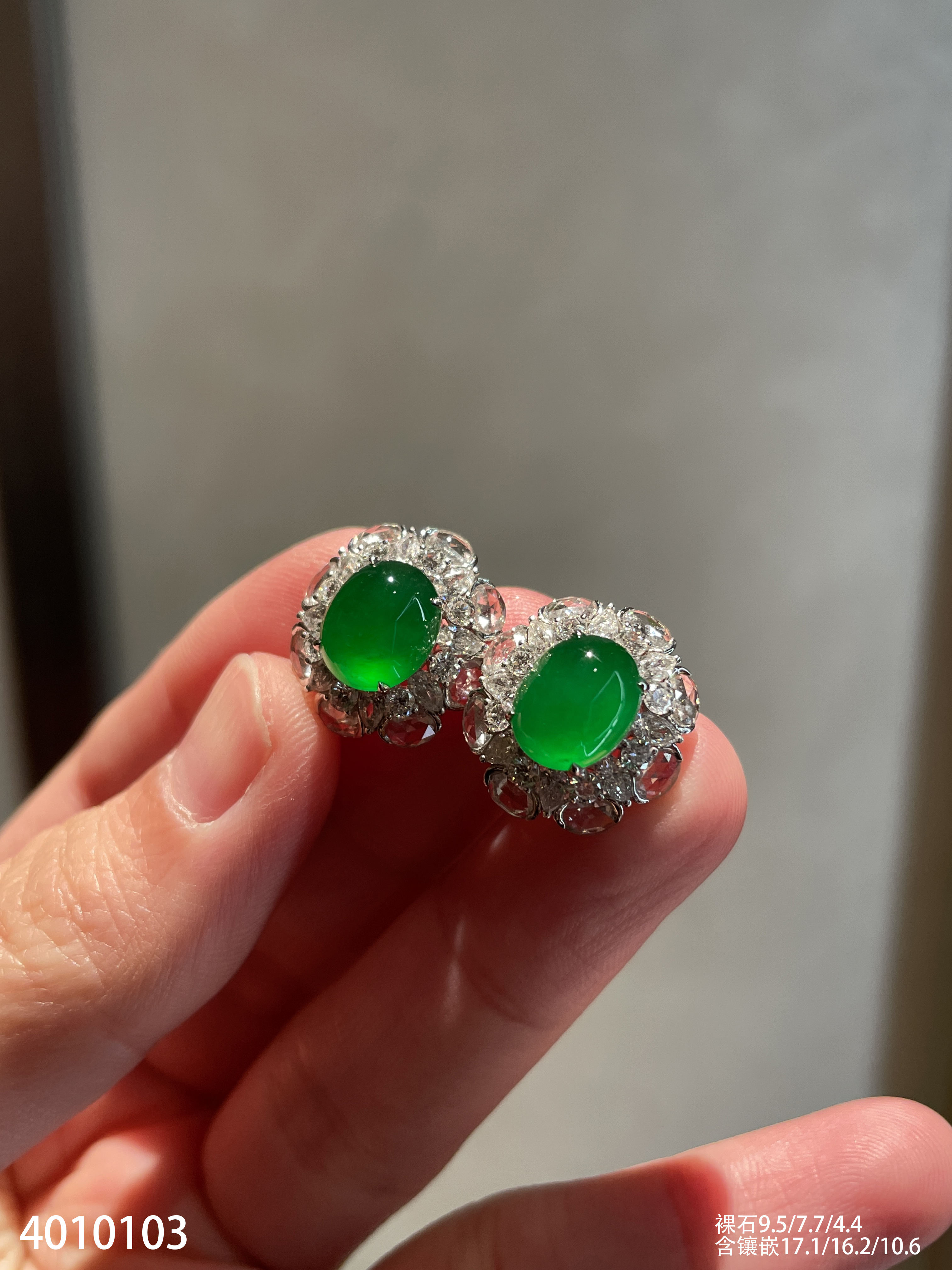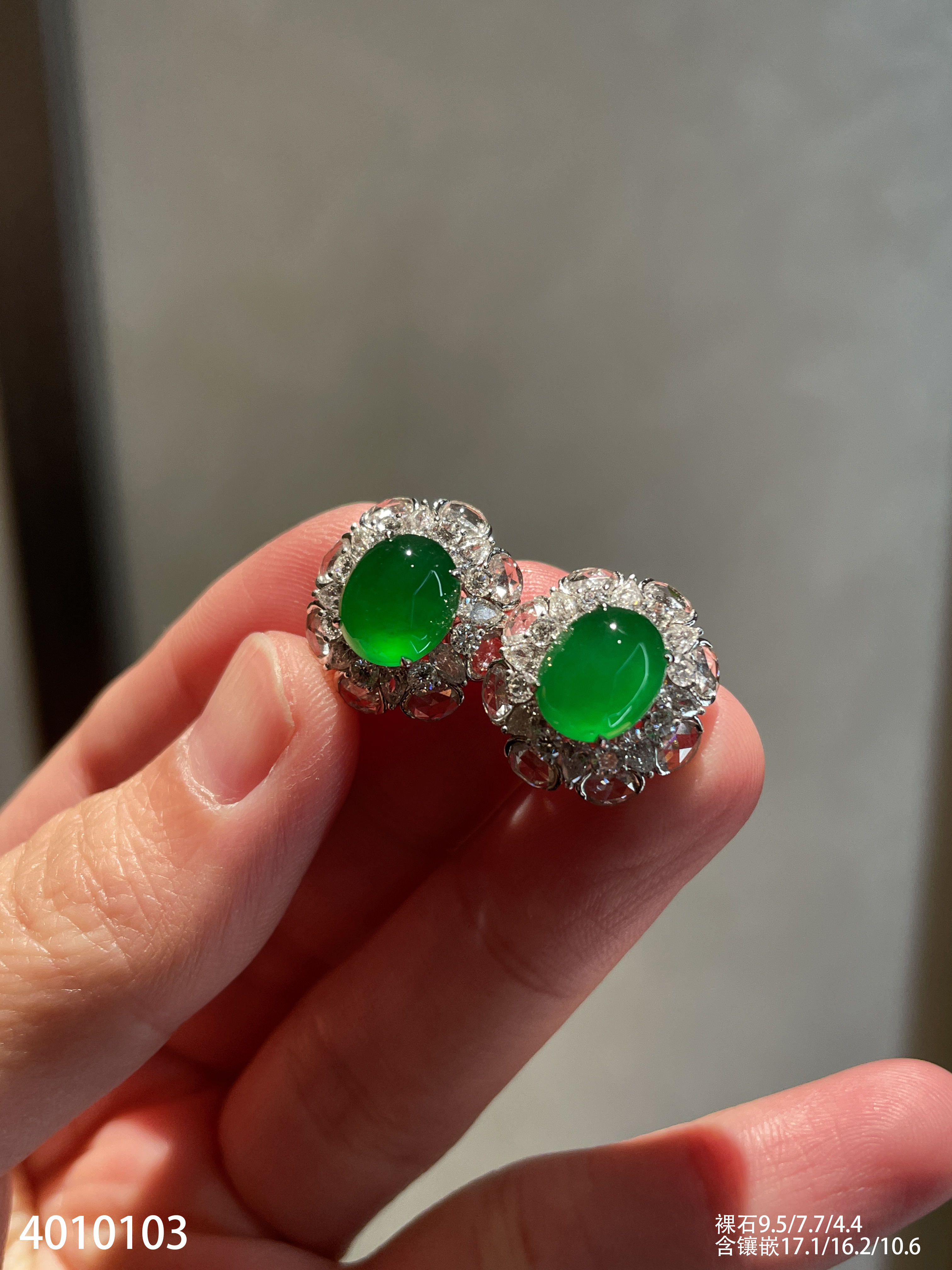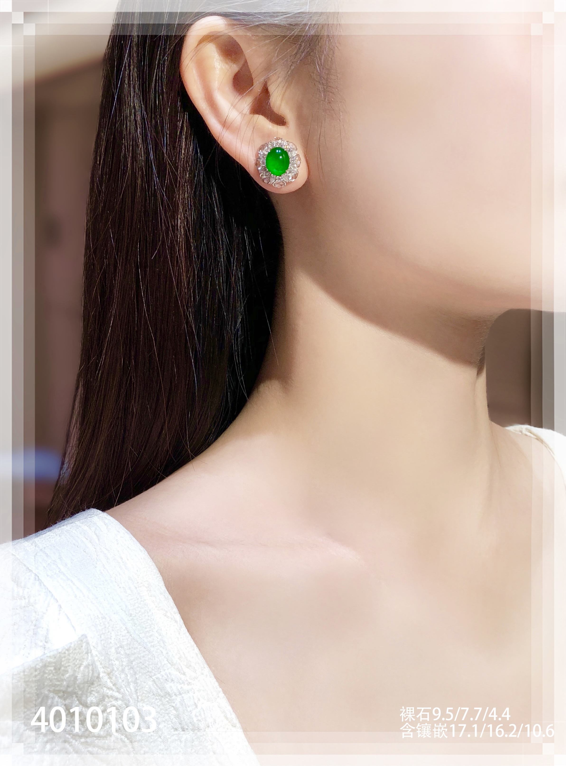 4010103、老坑高冰艳绿蛋面耳钉。具体价格微信咨询