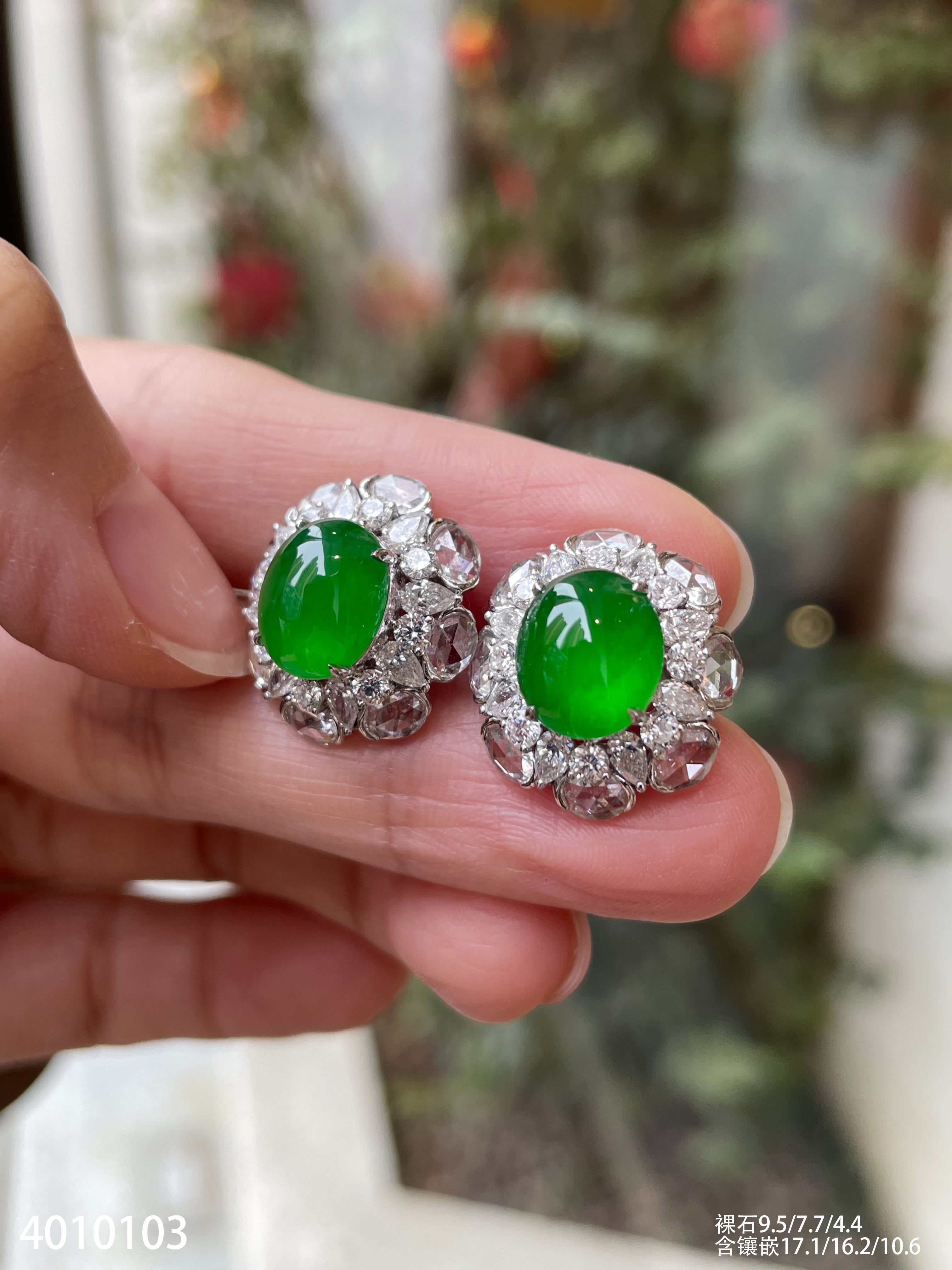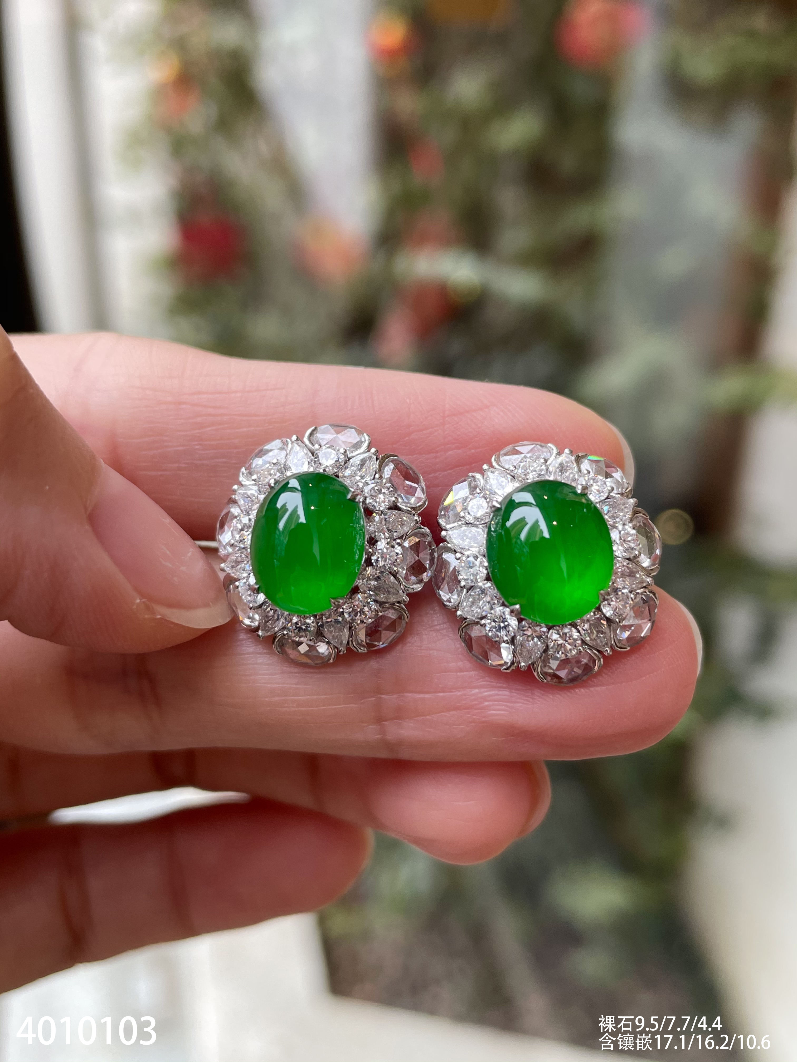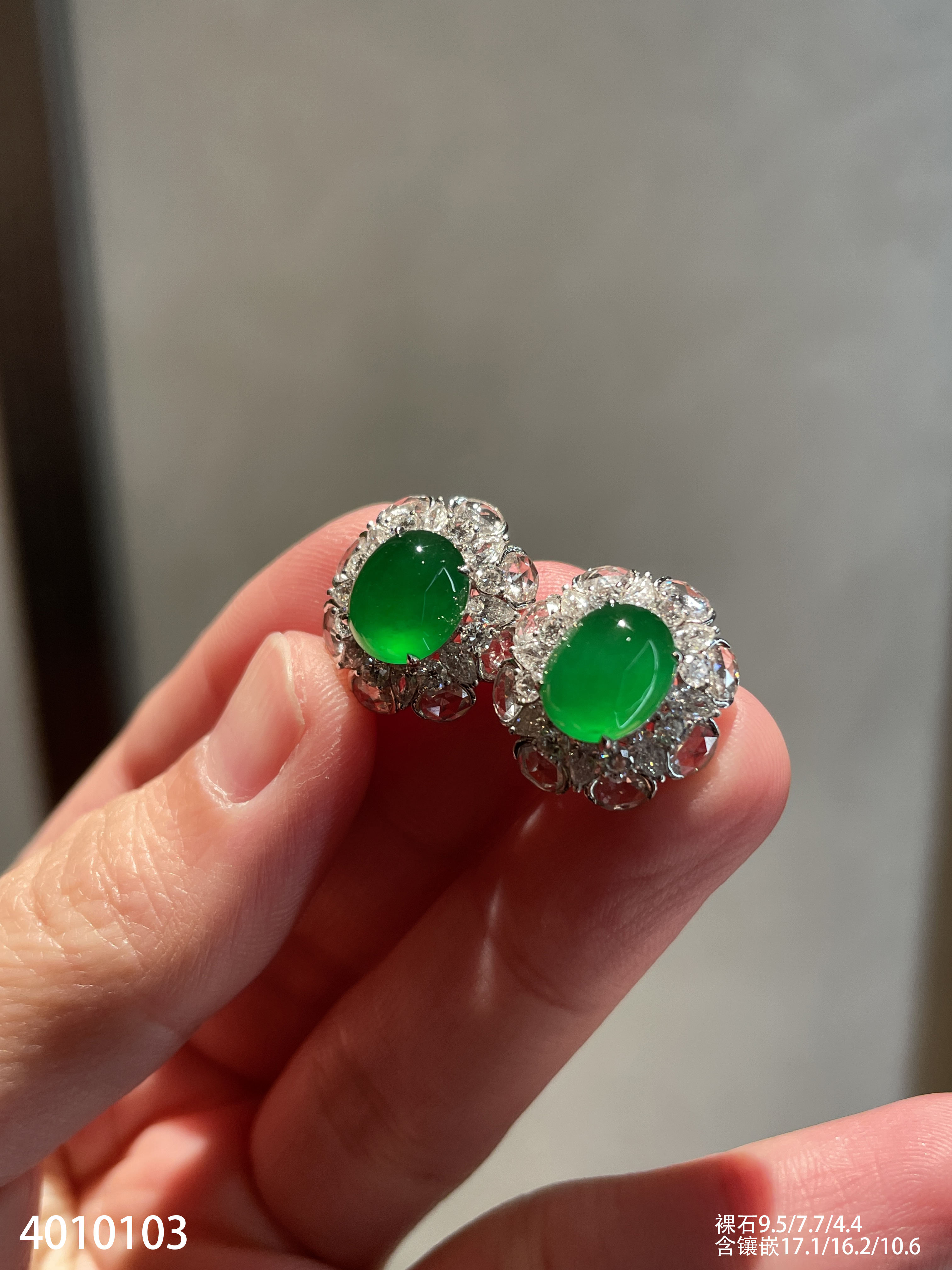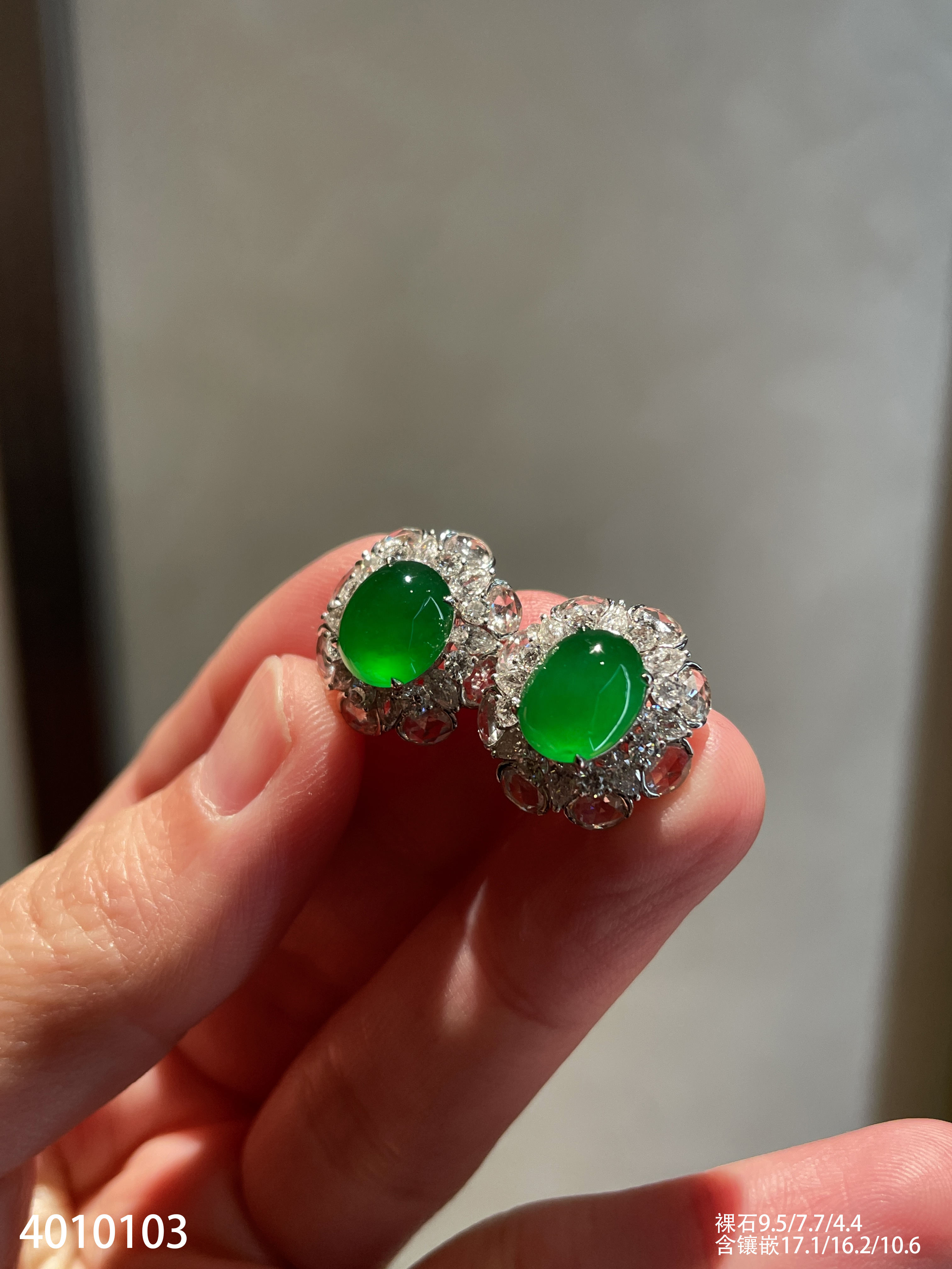 4010103、老坑高冰艳绿蛋面耳钉。具体价格微信咨询