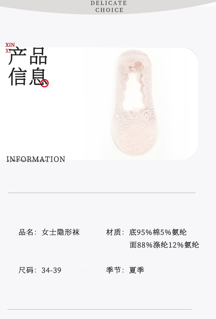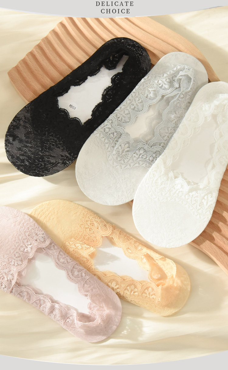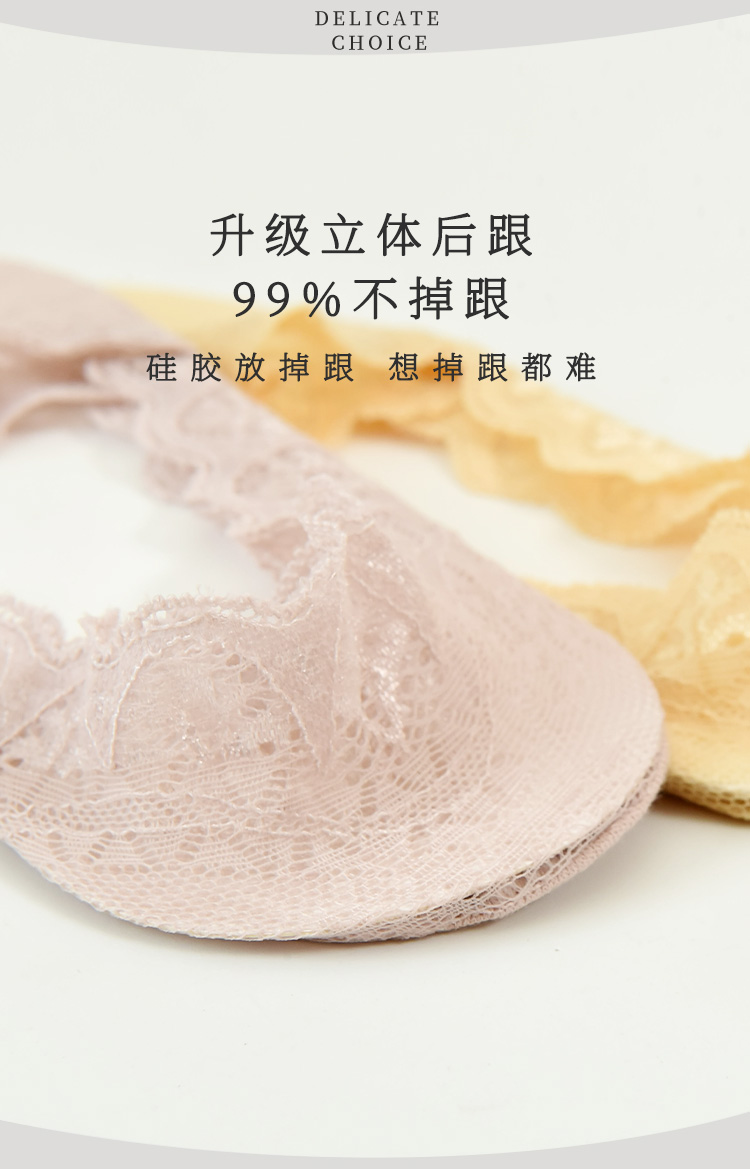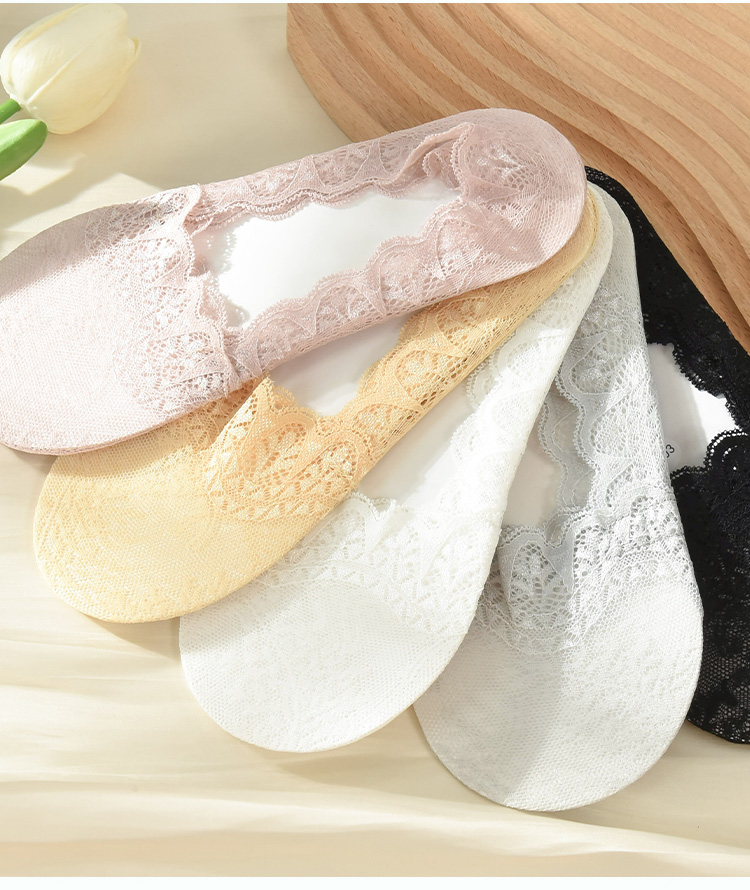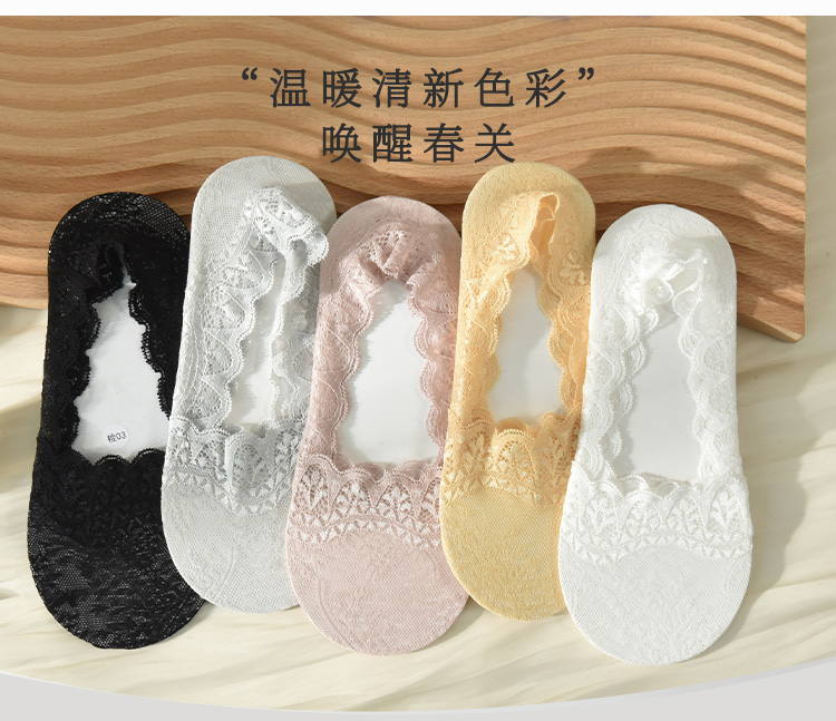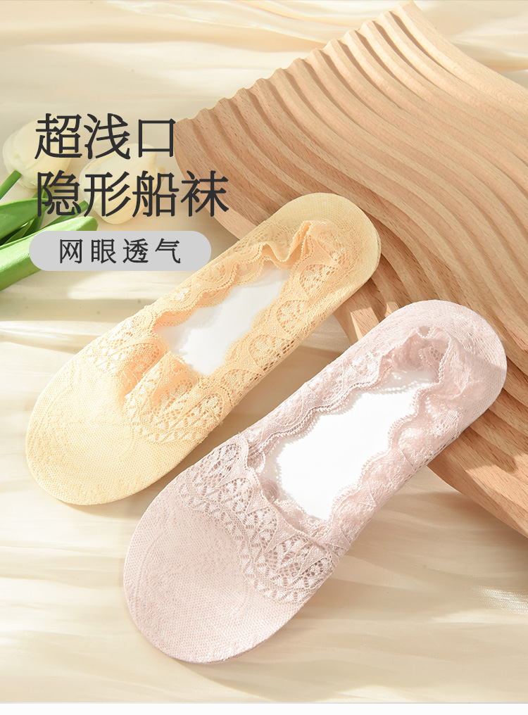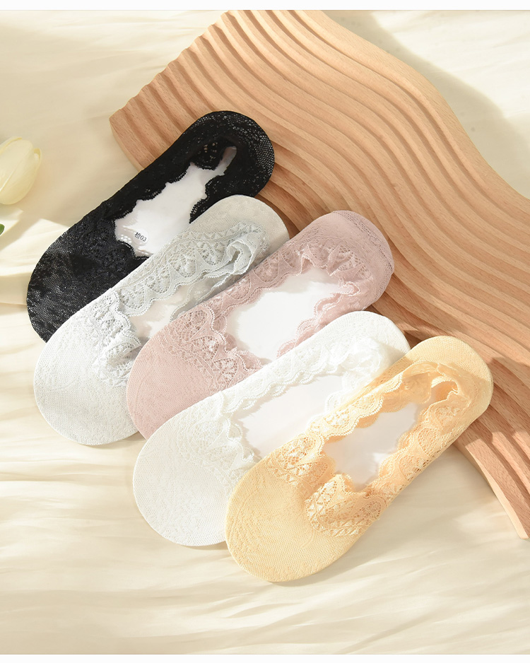 洁丽雅5双装女士船袜蕾丝边隐形硅胶防滑不掉跟棉底短袜隐形袜女