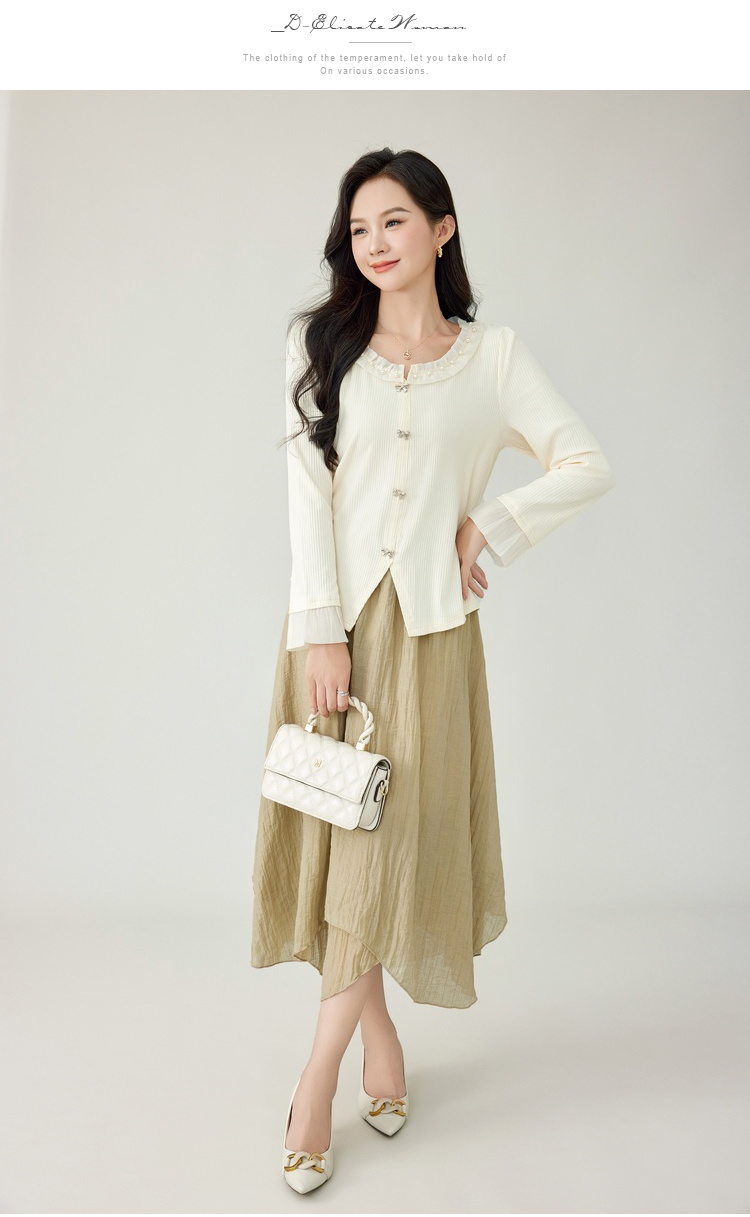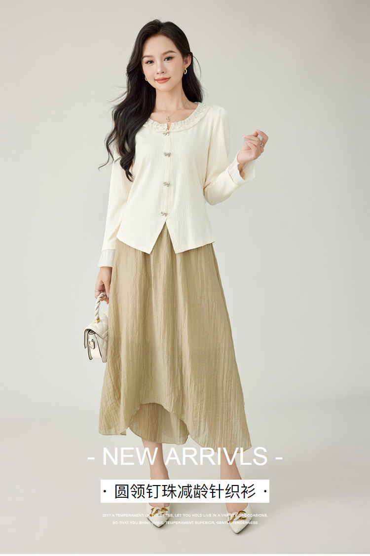 奢姿2025年春季新款大码女装减龄钉珠上衣胖妹妹拼接开衩针织衫5543262127