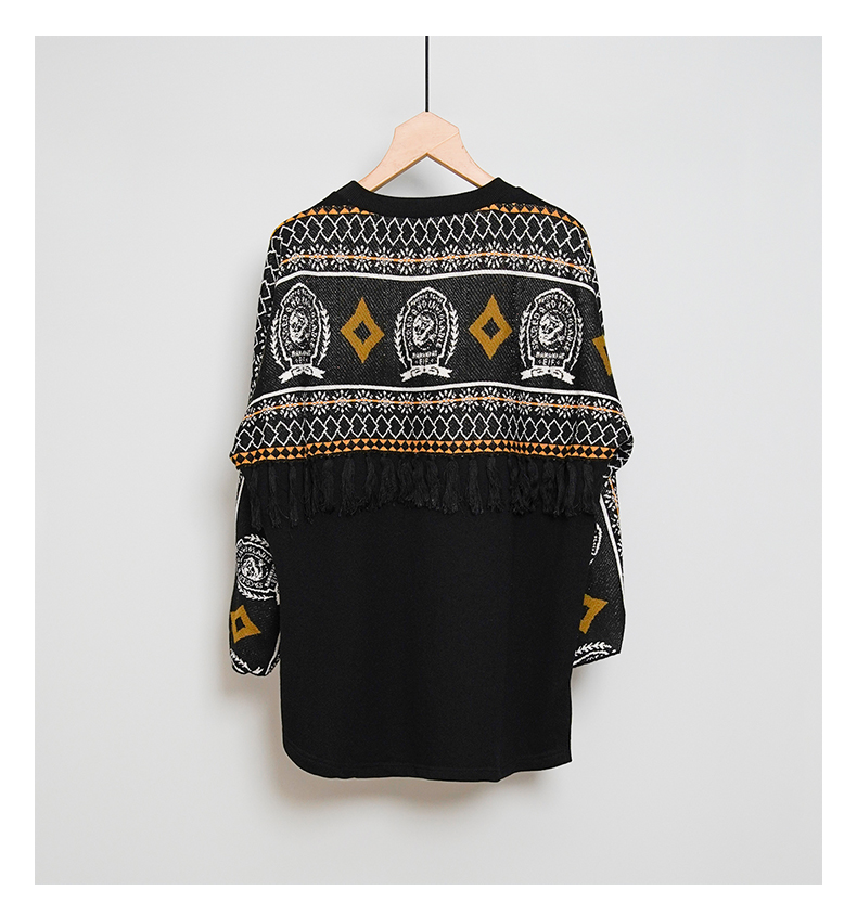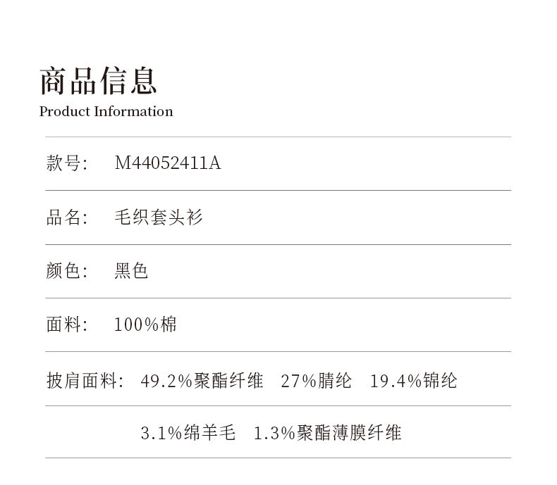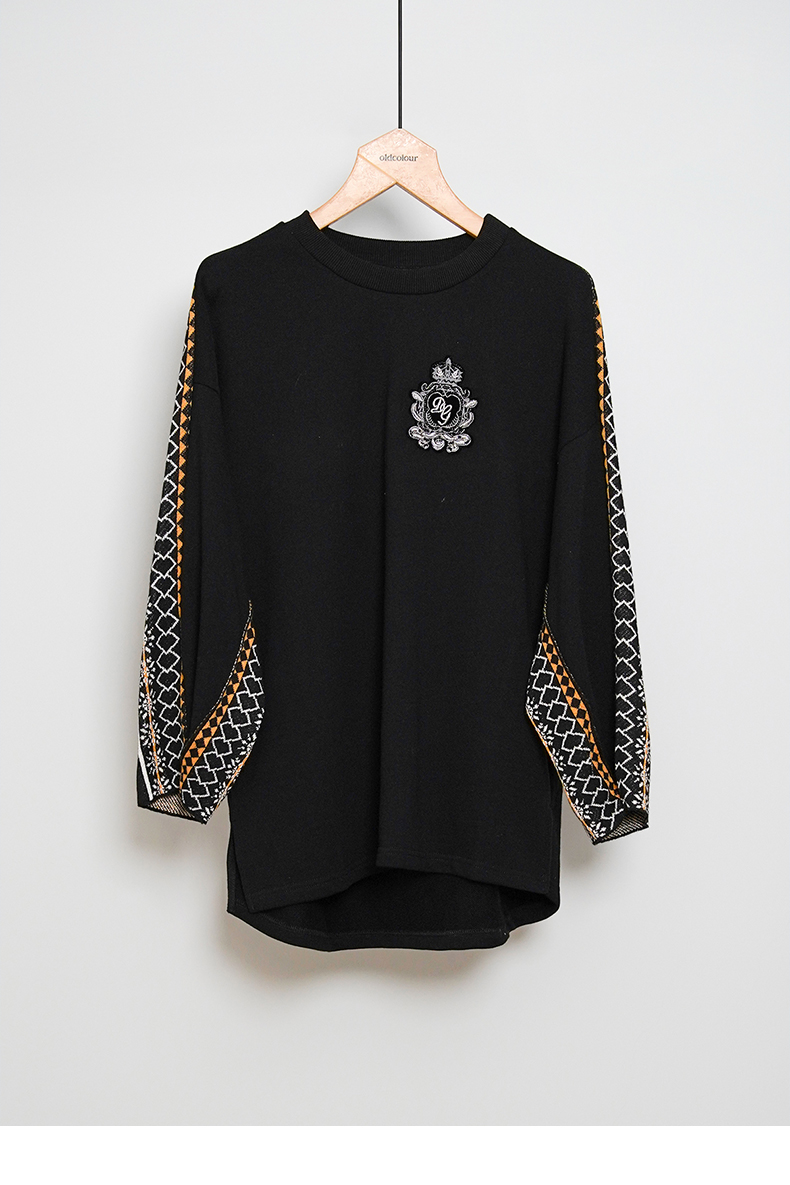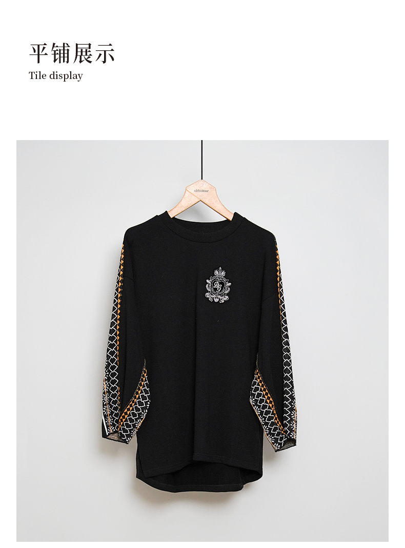 oldcolour冬季黑色气质休闲通勤宽松百搭毛织套头衫M44052411A