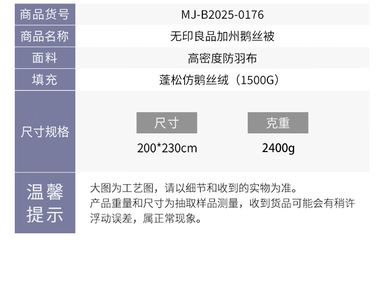 【分仓直发包邮】无印良品加州鹅丝被MJ-B2025-0176