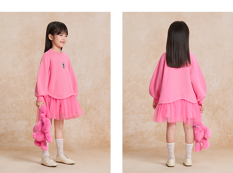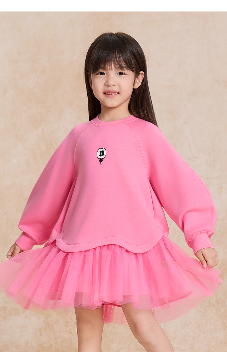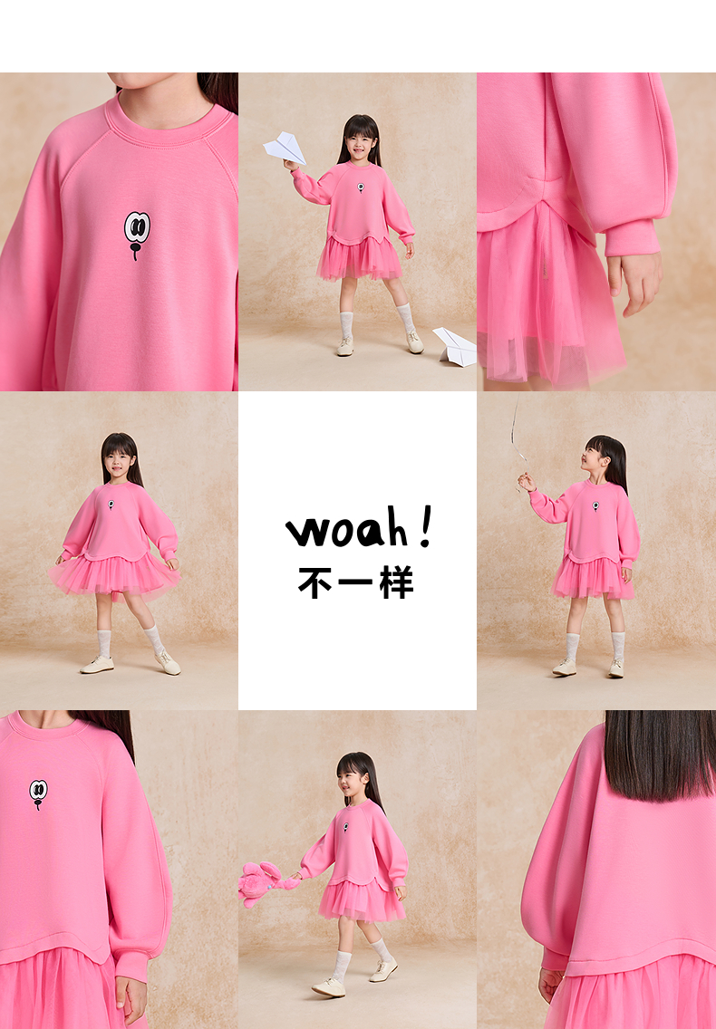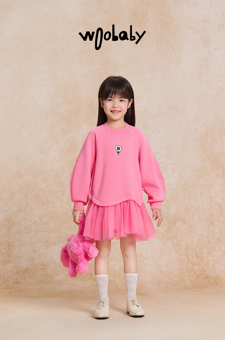【woobaby】儿童轻盈空气层卫衣裙25秋新品网纱连衣裙女童公主裙长袖