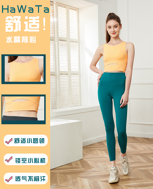 哈瓦塔亲肤裸感(后带兜)九分瑜伽裤H341171