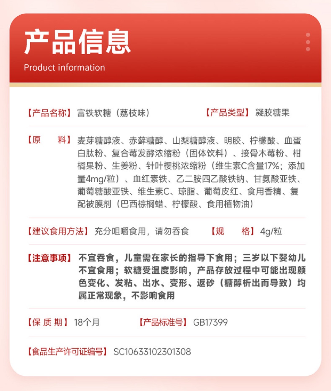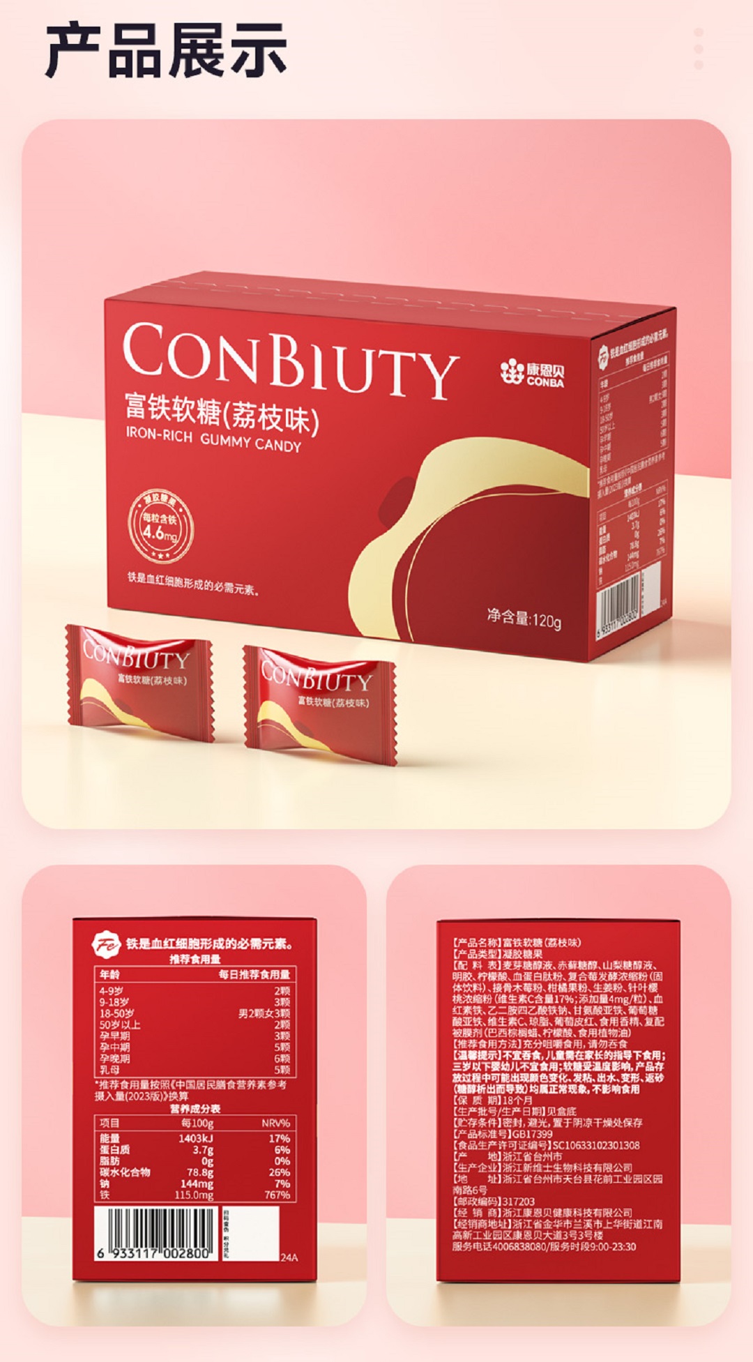 【大熊好货专属】康恩贝富铁软糖(荔枝味)(4g*30粒/盒*5盒)