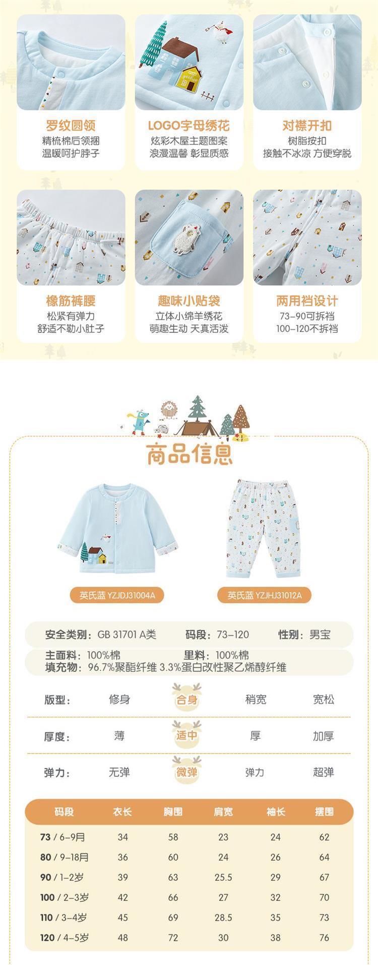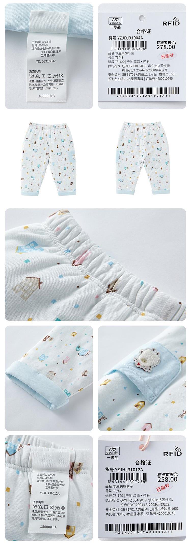 英氏婴儿保暖裤子宝宝夹棉居家服秋冬新款YZJHJ31012A
