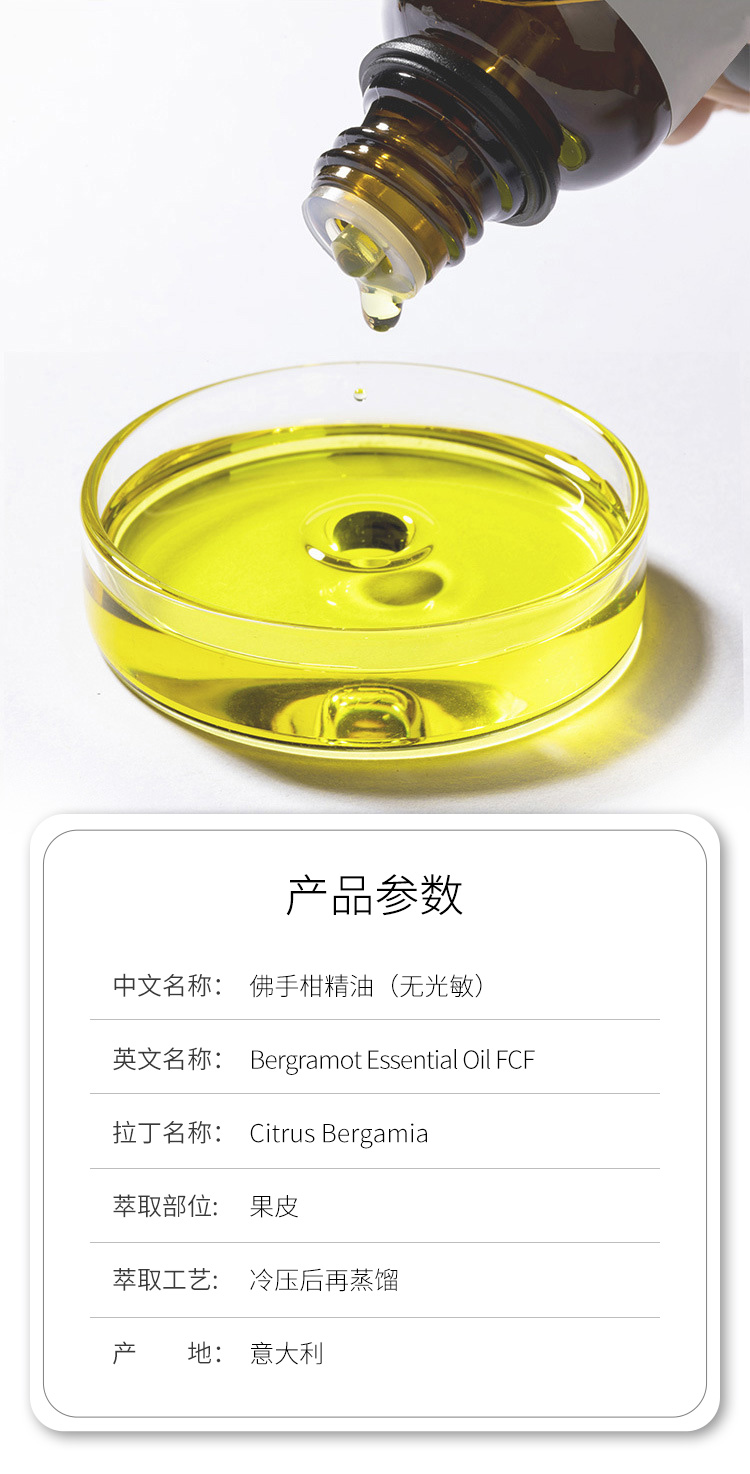 佛手柑精油(无光敏) 意大利单方精油原料批发芳疗护理调香香薰
