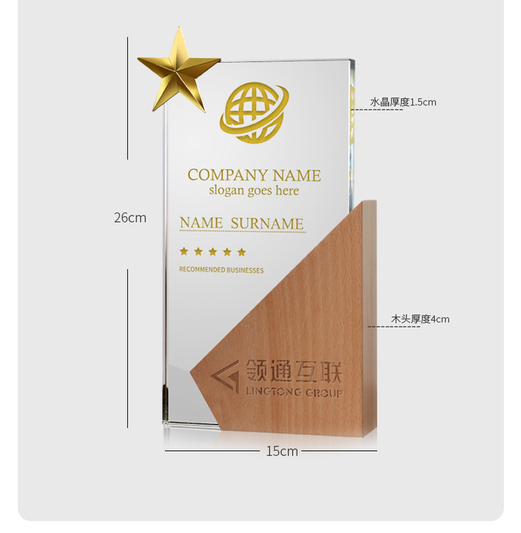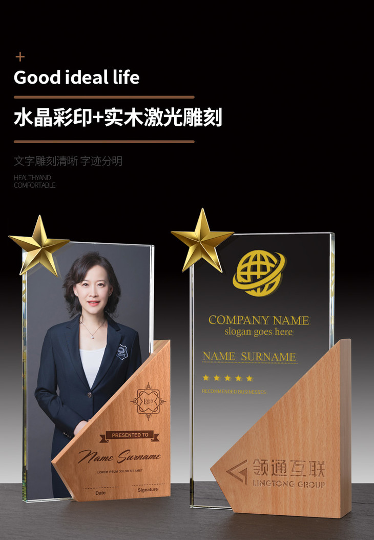木质奖杯创意定制实木头水晶奖杯奖牌荣誉授权牌团队销售冠军刻字