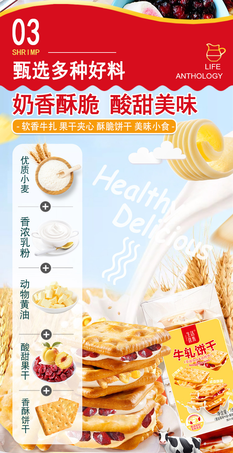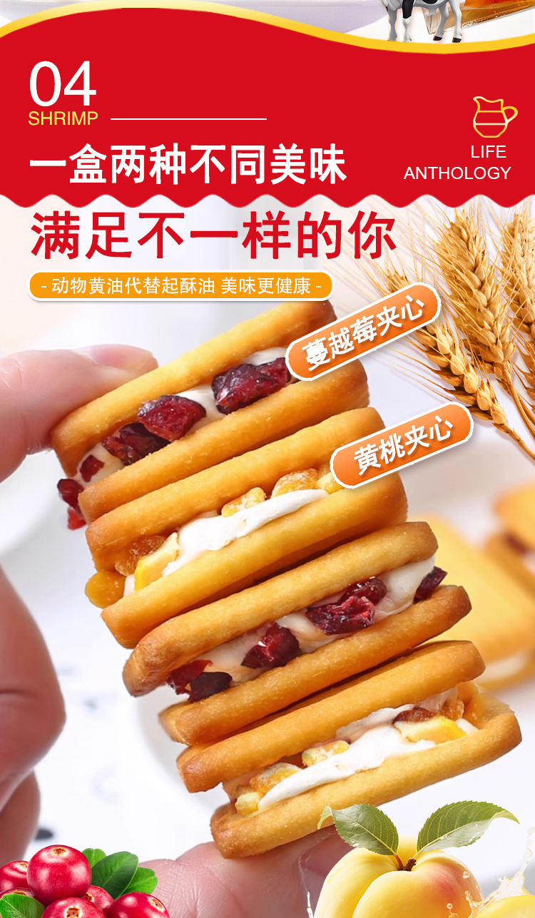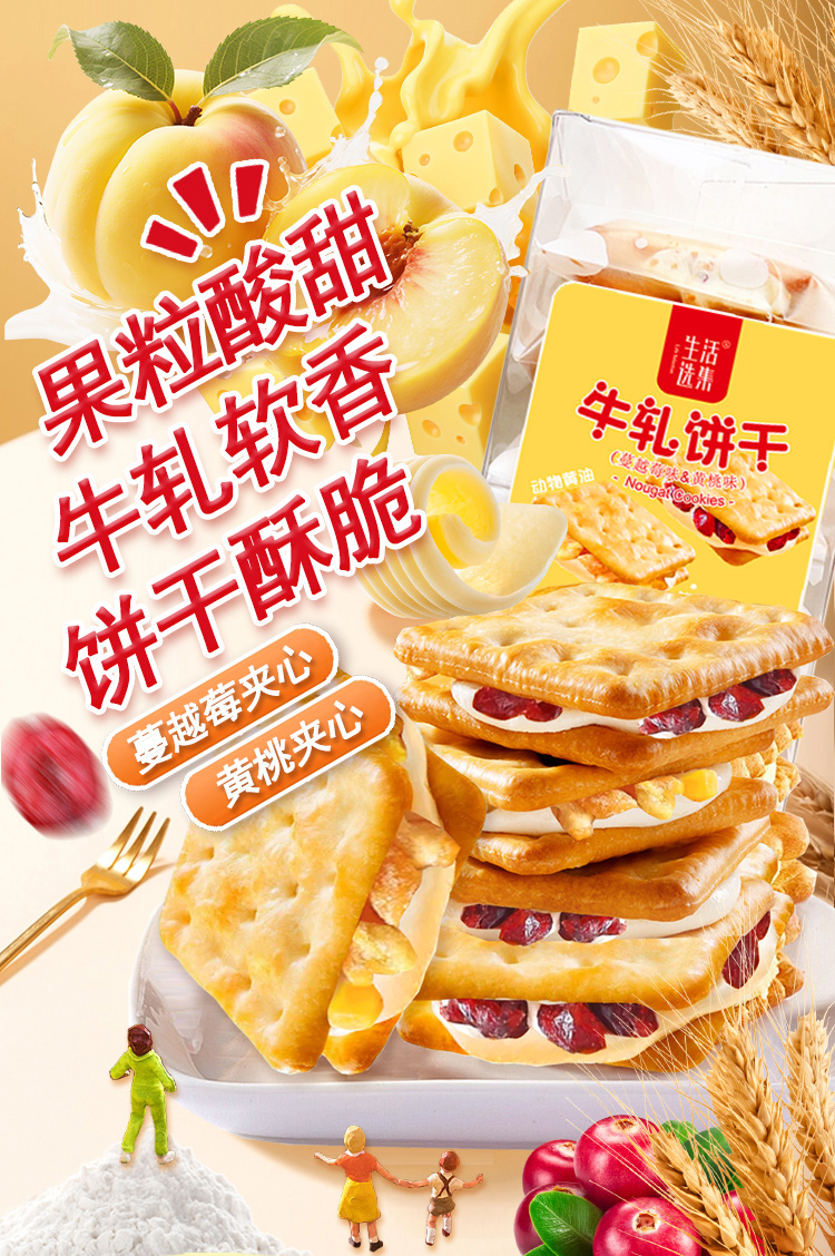 【生活选集】牛轧饼干(蔓越莓味&黄桃味)160克/盒