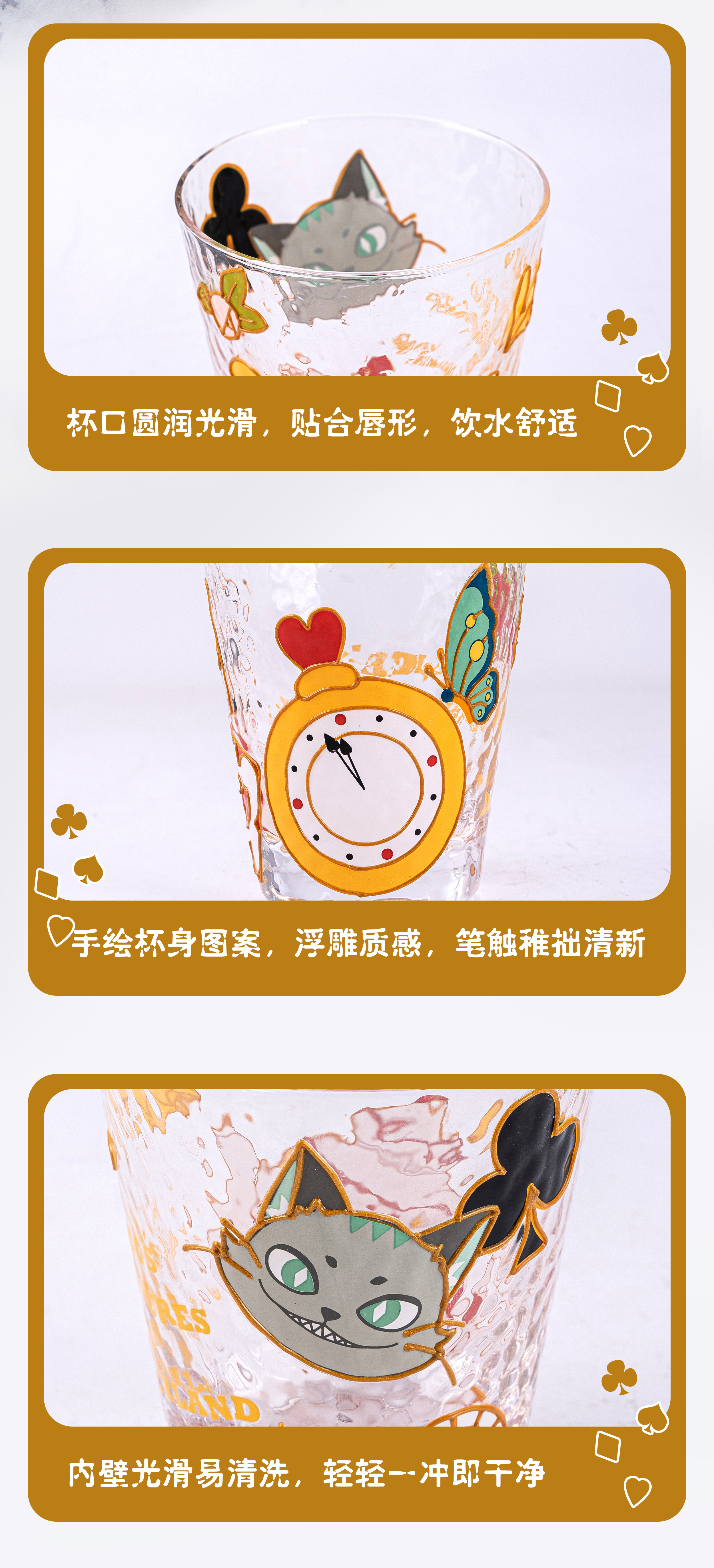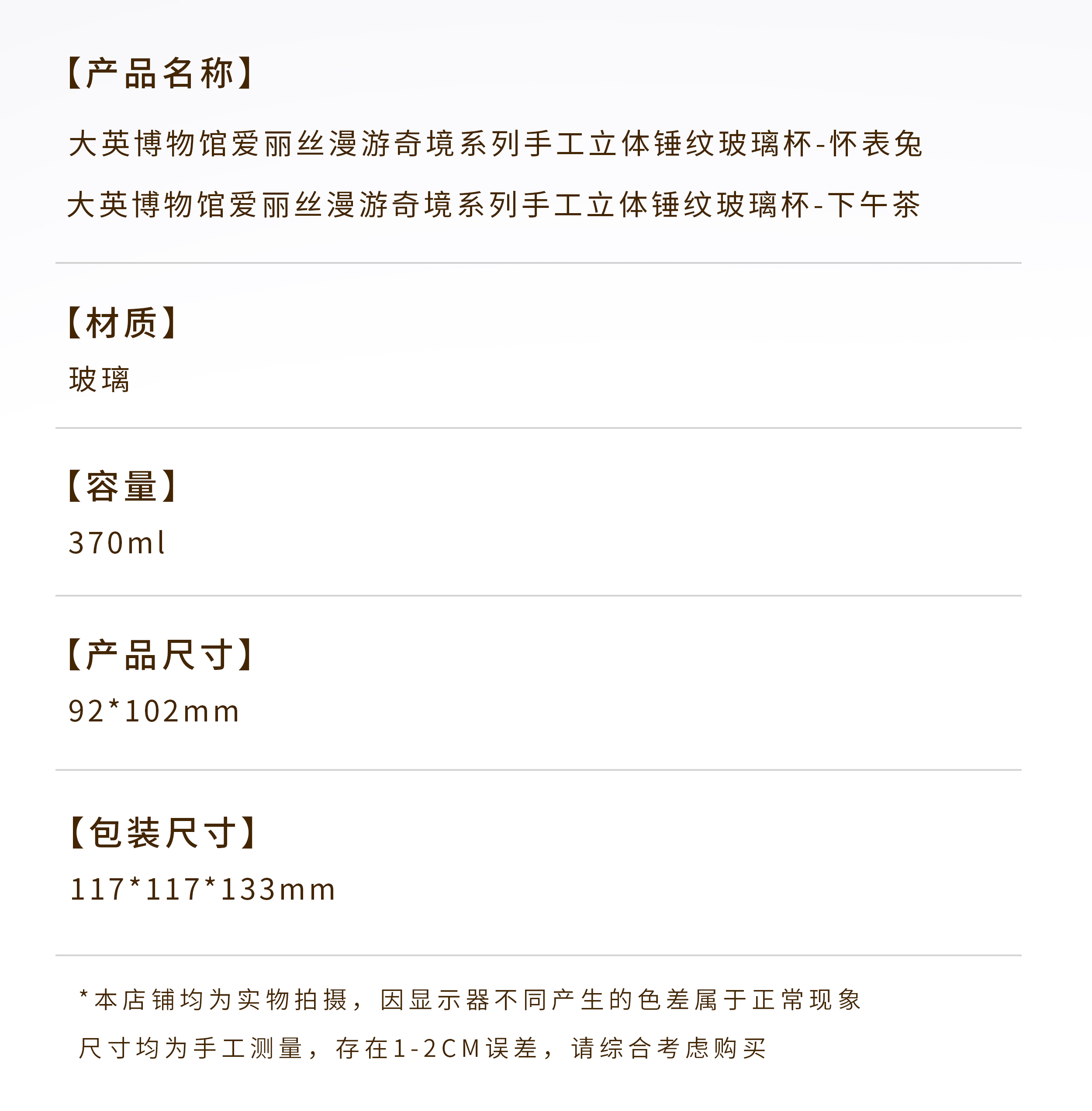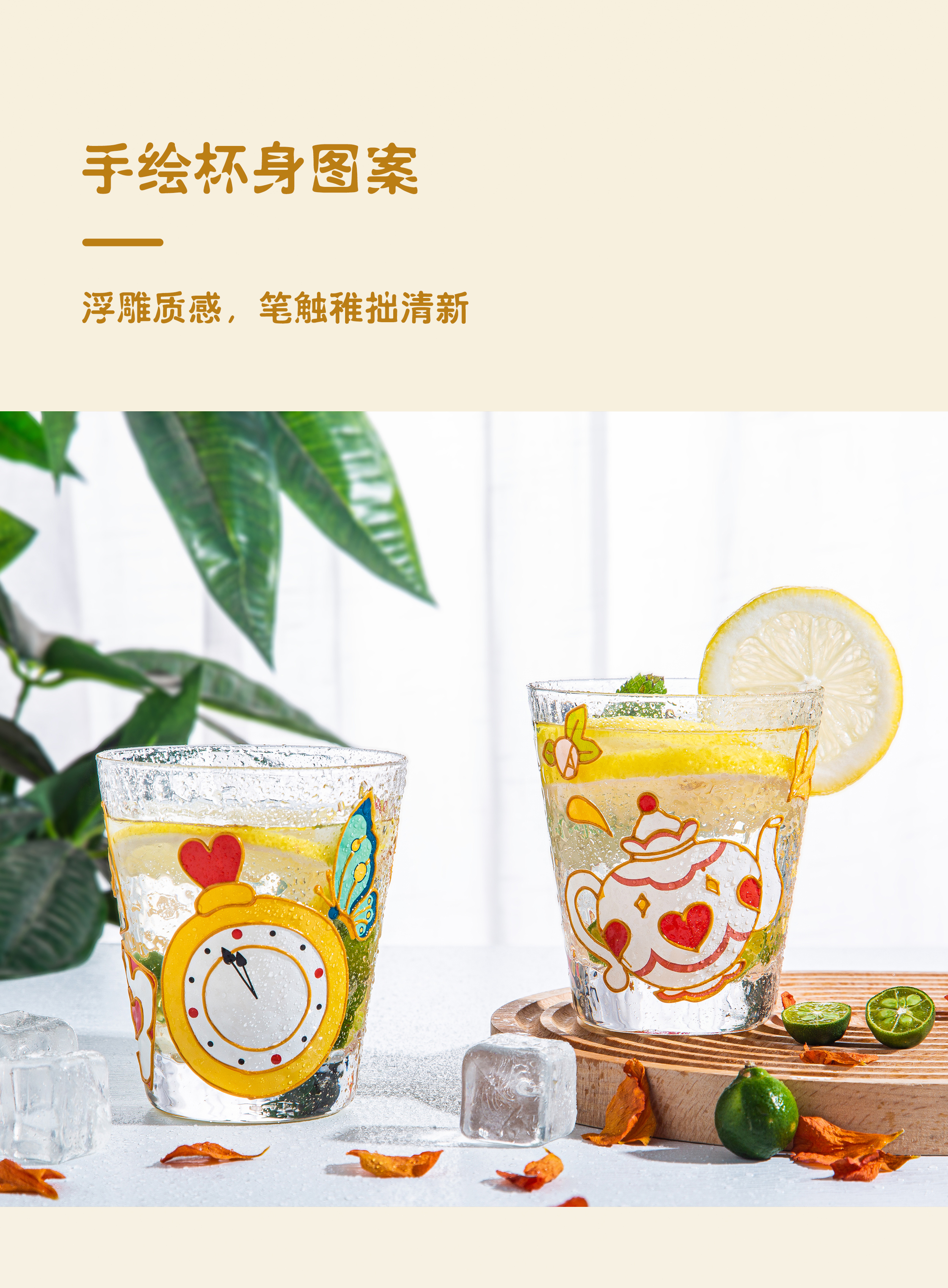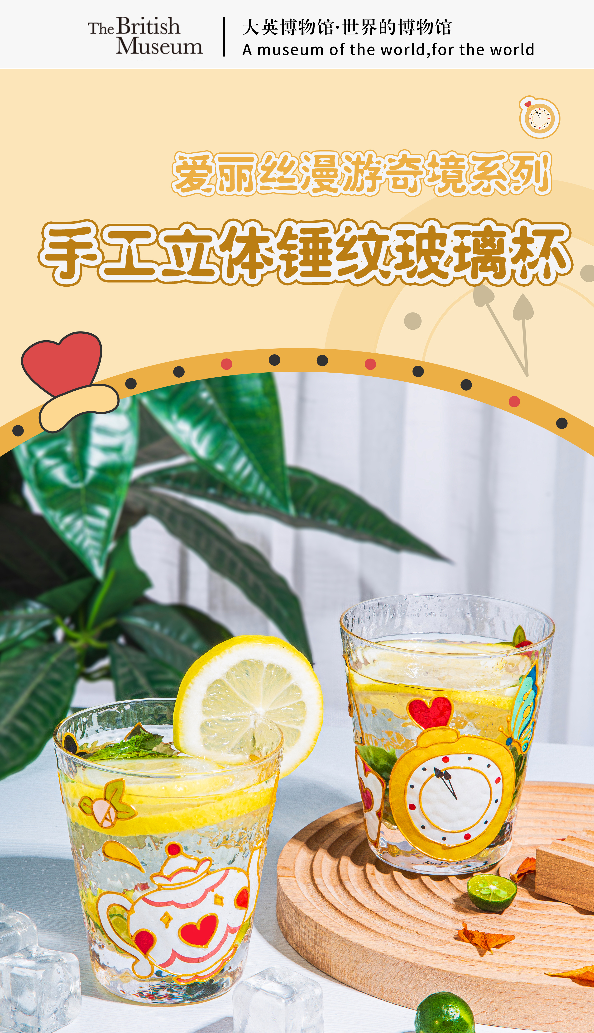 大英博物馆 爱丽丝漫游奇境系列 手工立体 锤纹玻璃杯 下午茶 怀表兔