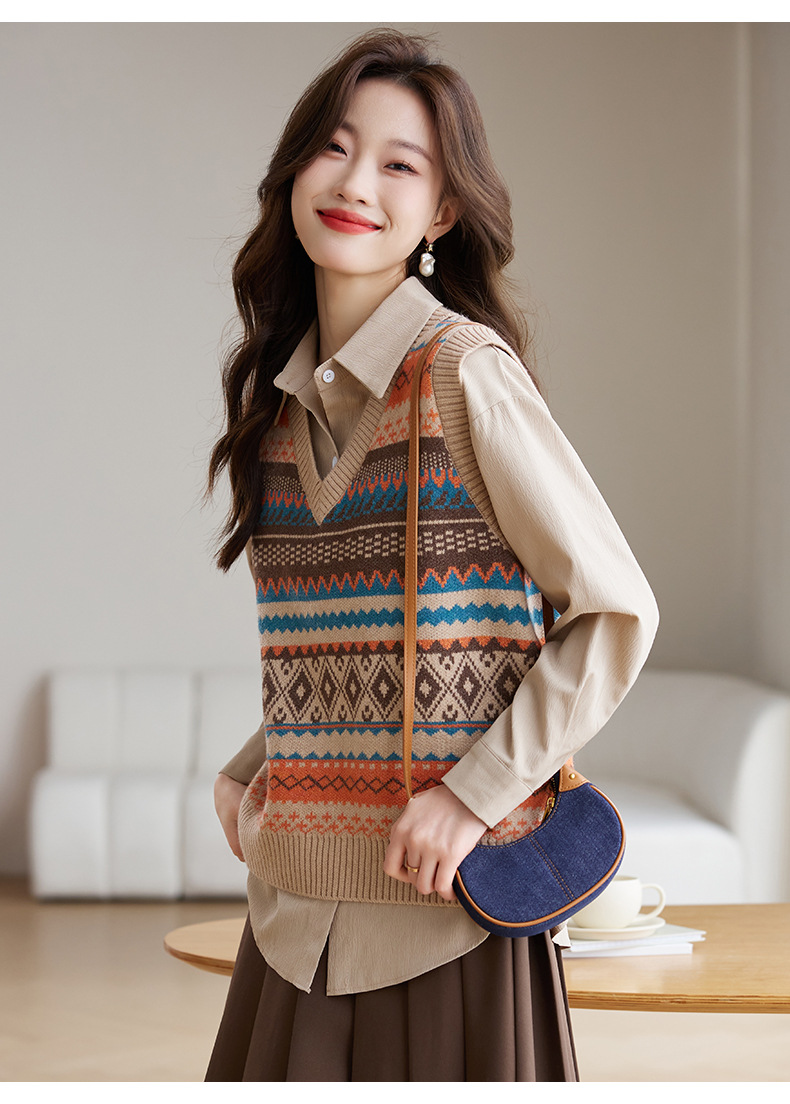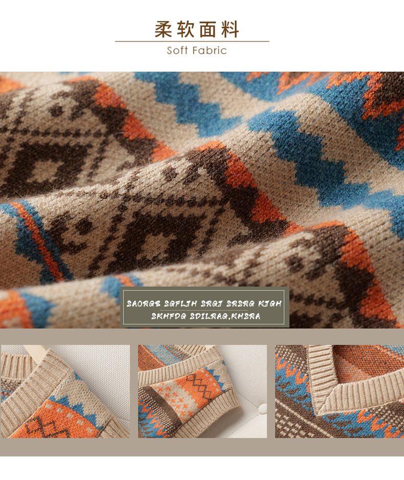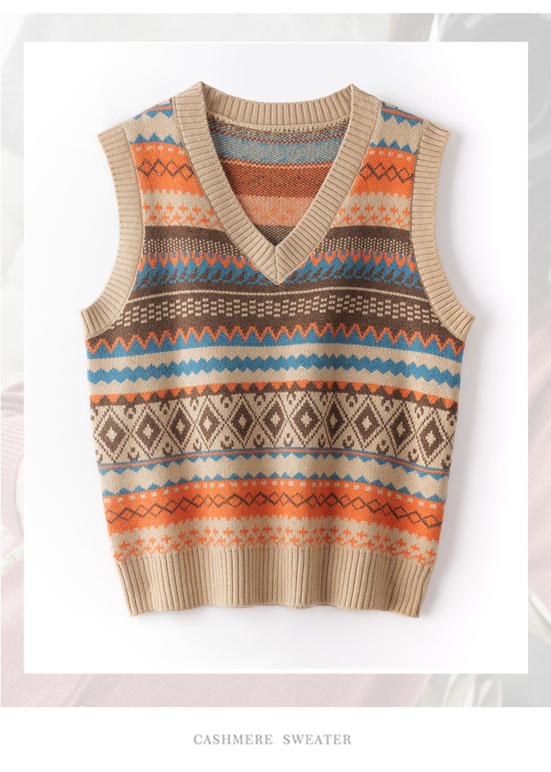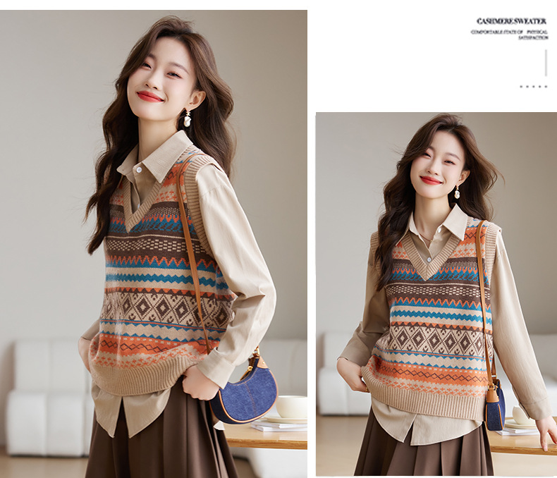 复古V领毛衣马甲背心,女秋冬季叠穿坎肩提花针织上衣马夹短款外穿CC-J369