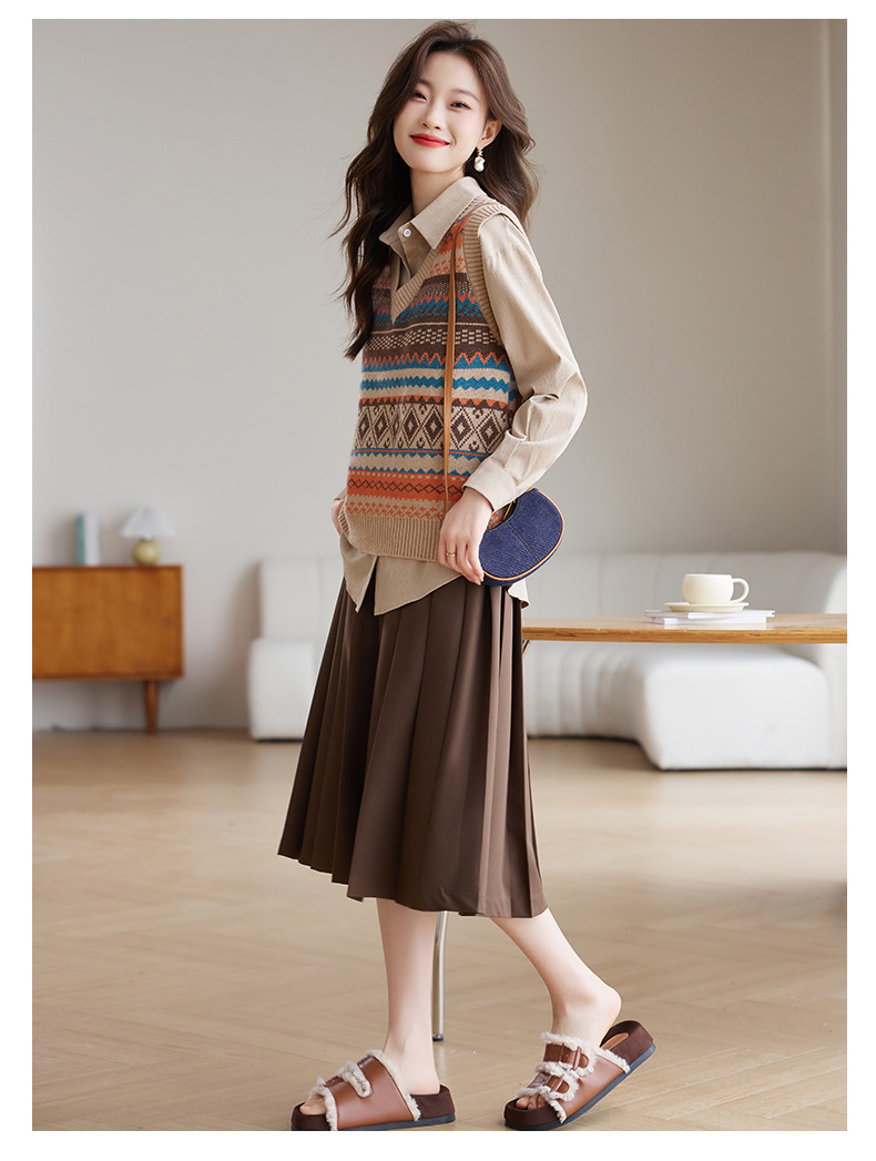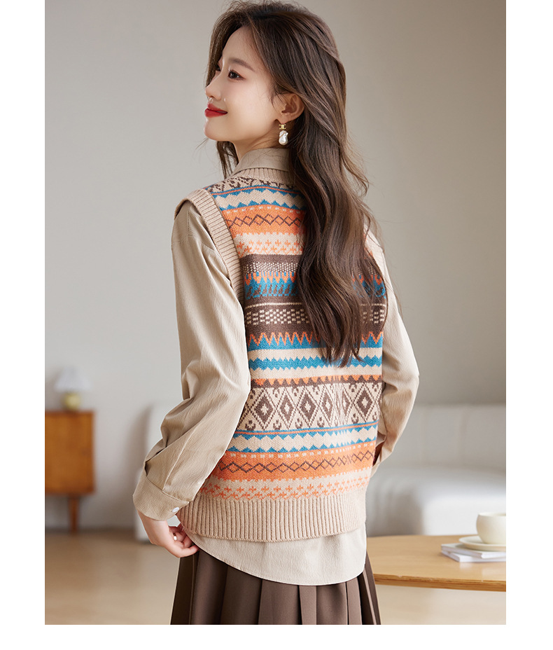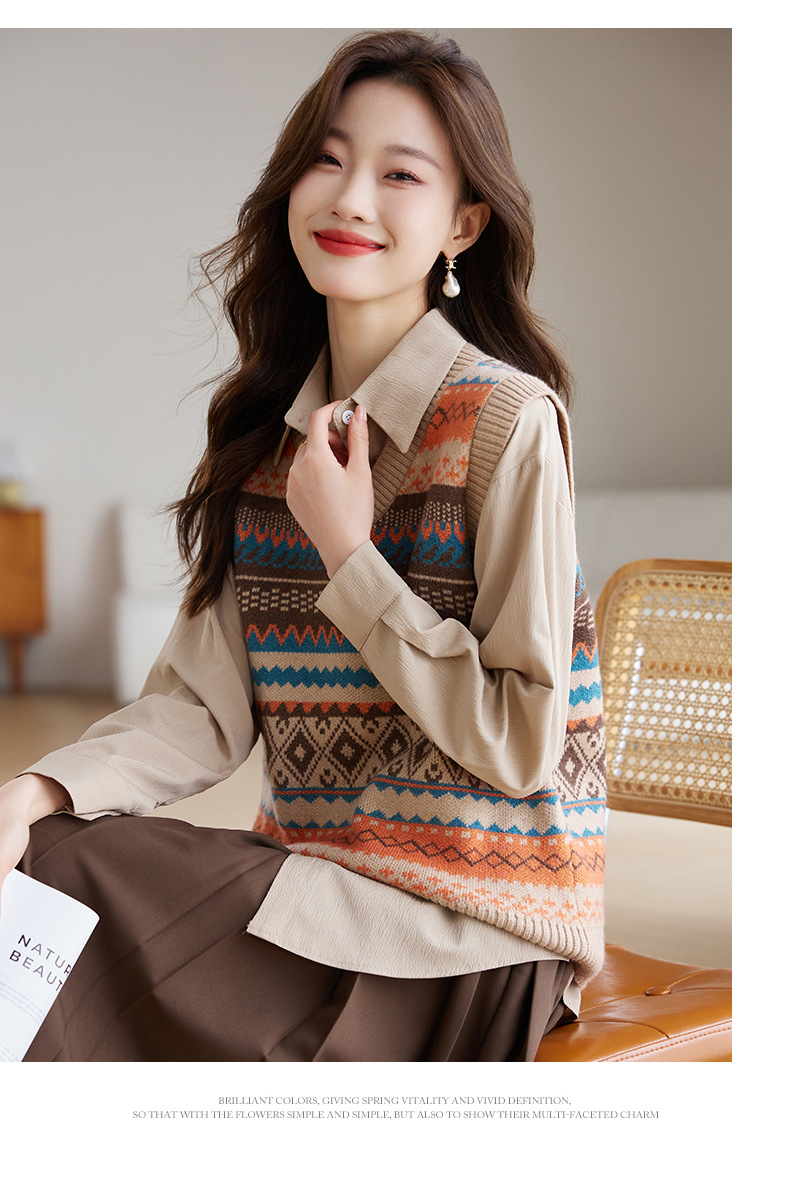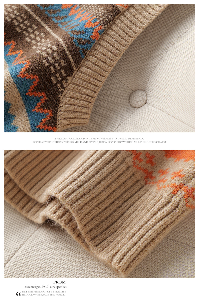 复古V领毛衣马甲背心,女秋冬季叠穿坎肩提花针织上衣马夹短款外穿CC-J369