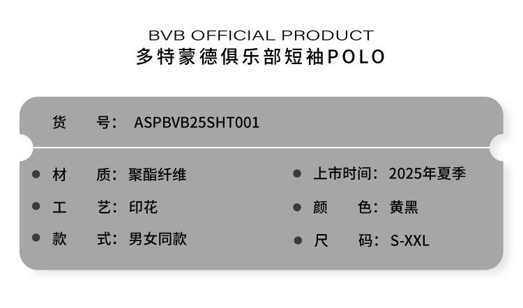 【官方正版】多特蒙德足球俱乐部 | 聚星黑黄拼色POLO夏季潮流舒适短袖