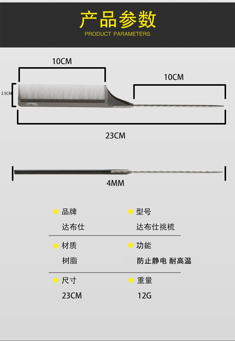 Doubles 达布仕理发剪发梳子裁剪梳尖尾梳 美发钢针挑梳盘发分区梳子