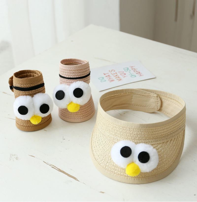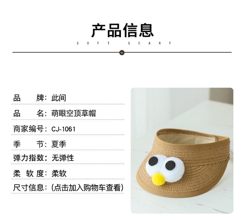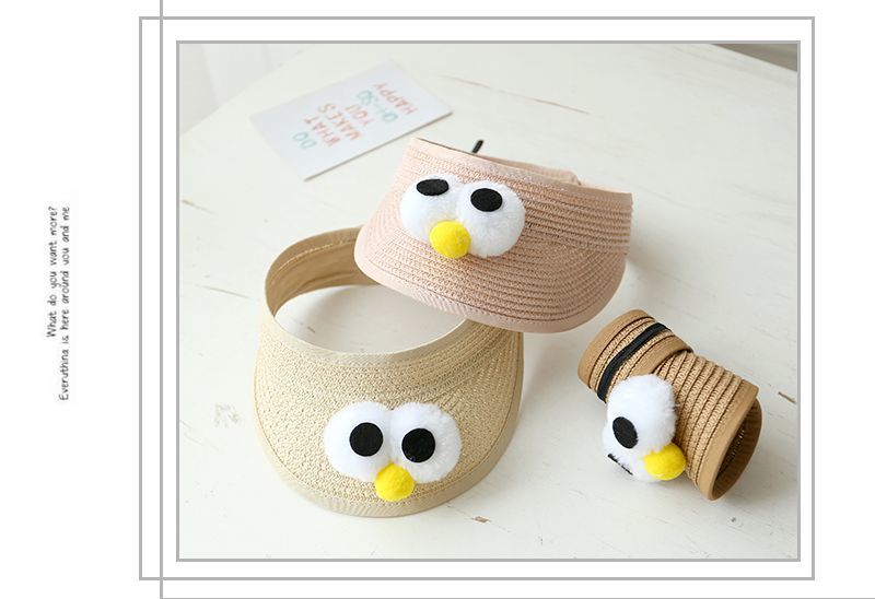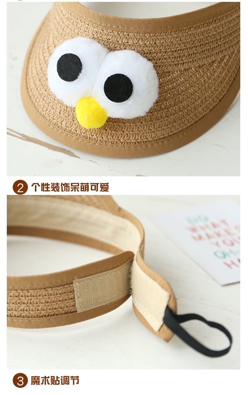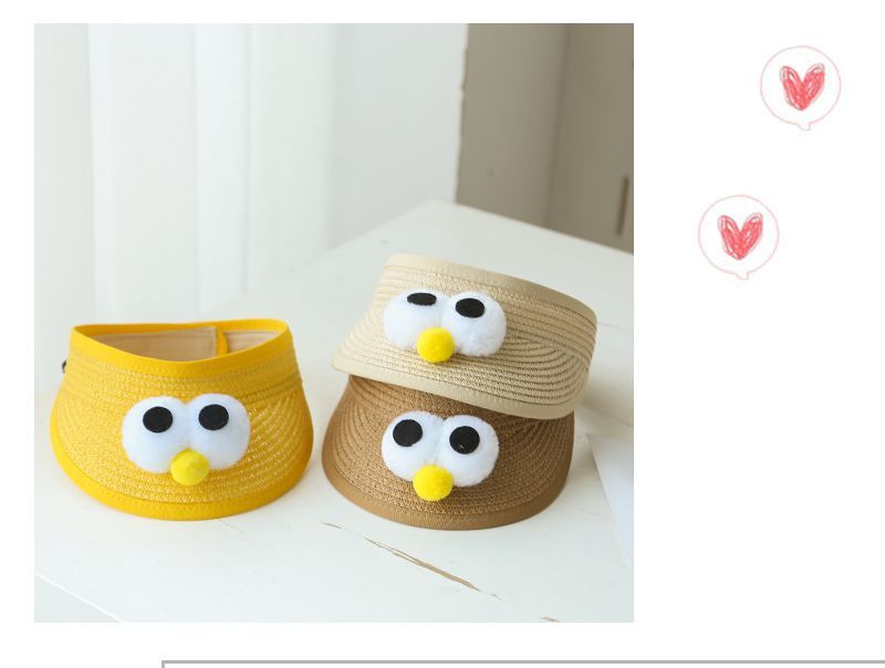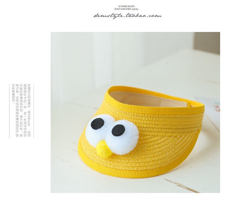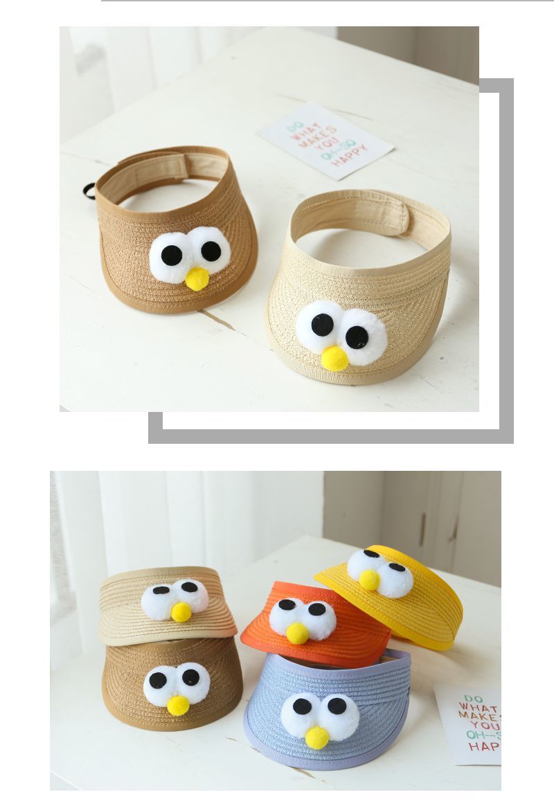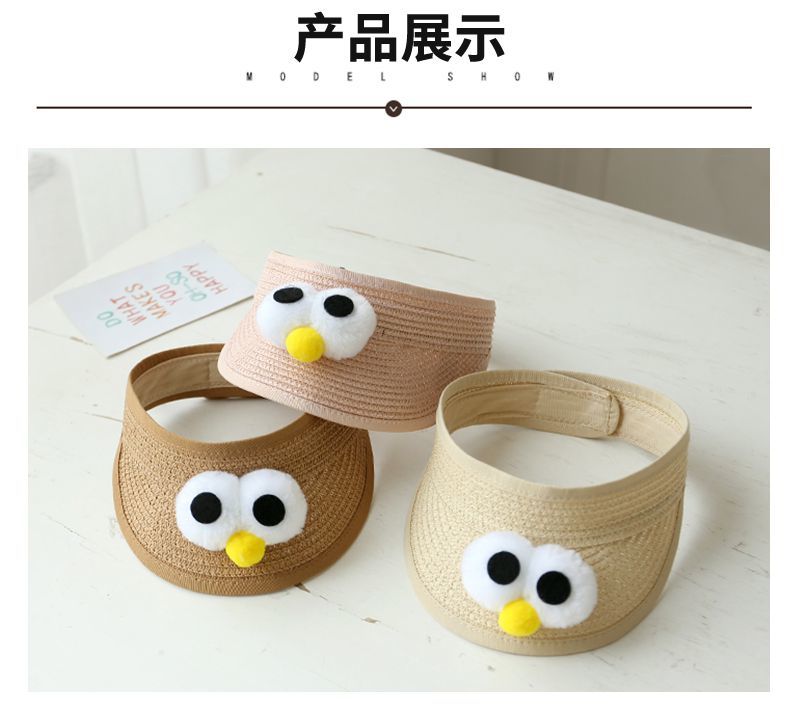 婴儿帽子夏天薄款防晒空顶草帽遮阳帽宝宝卡通大眼超萌太阳帽凉帽国庆出游