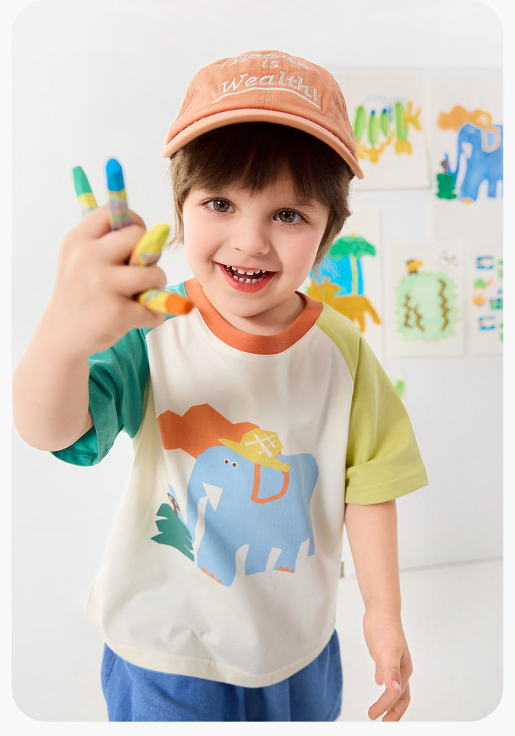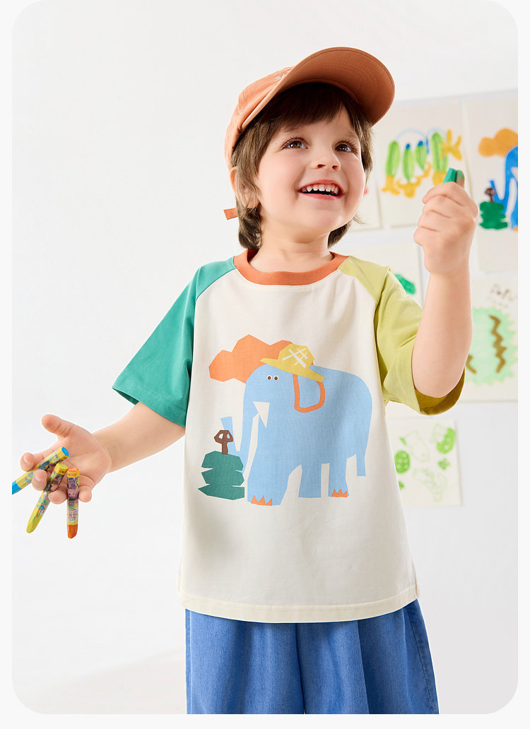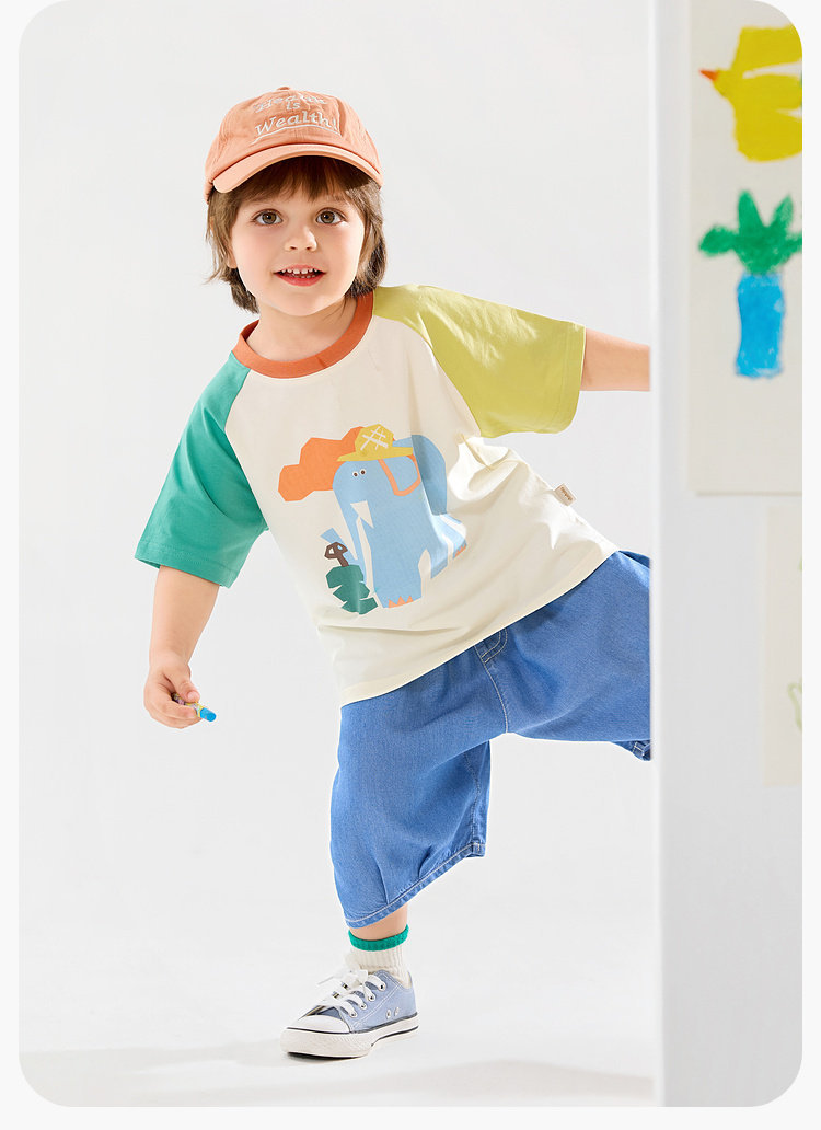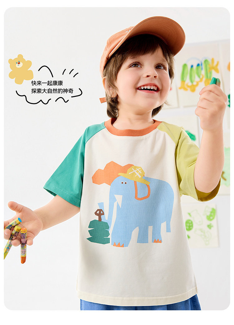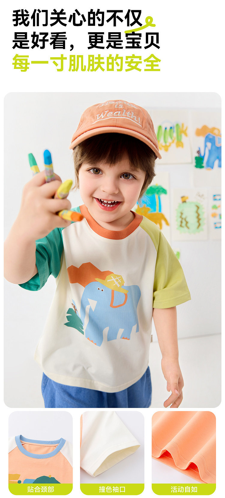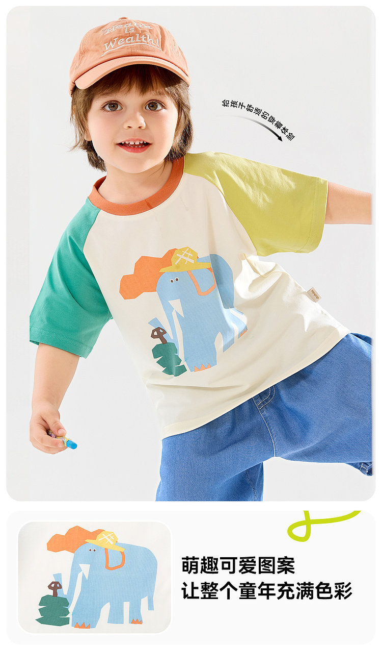 【棉软艺术T】嘟嘟家童装儿童短袖T恤夏装男童插肩袖上衣女童衣服T6BTX419