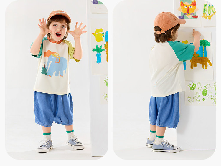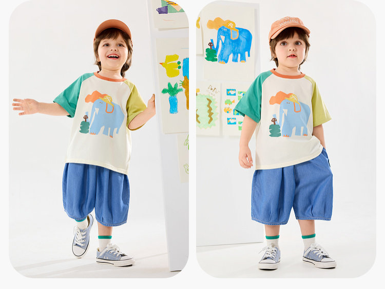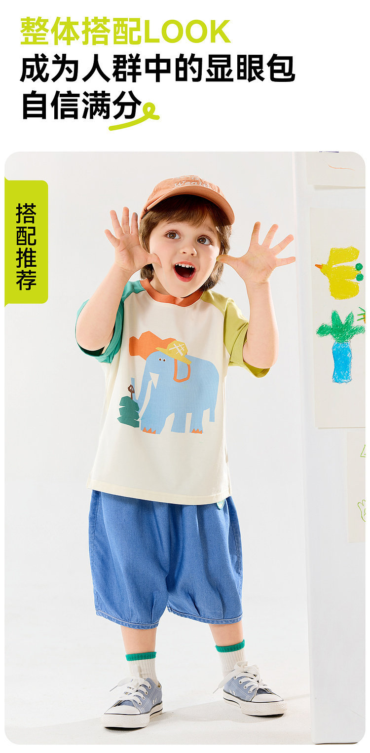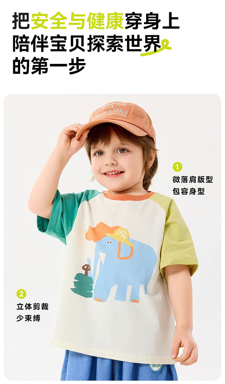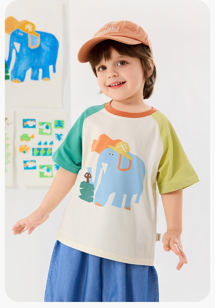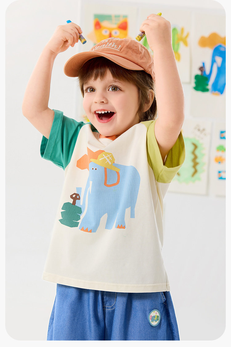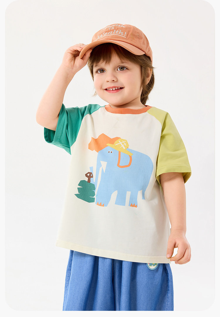 【棉软艺术T】嘟嘟家童装儿童短袖T恤夏装男童插肩袖上衣女童衣服T6BTX419