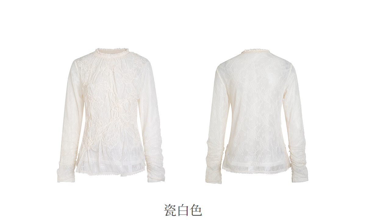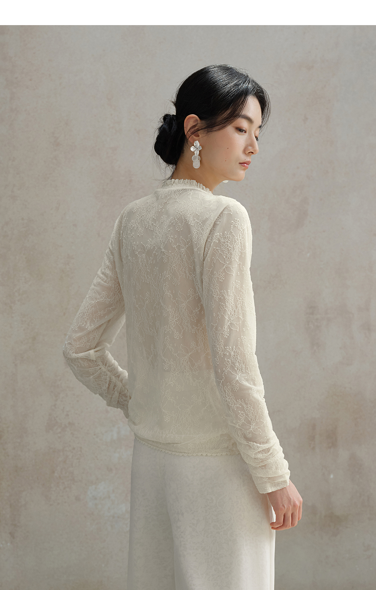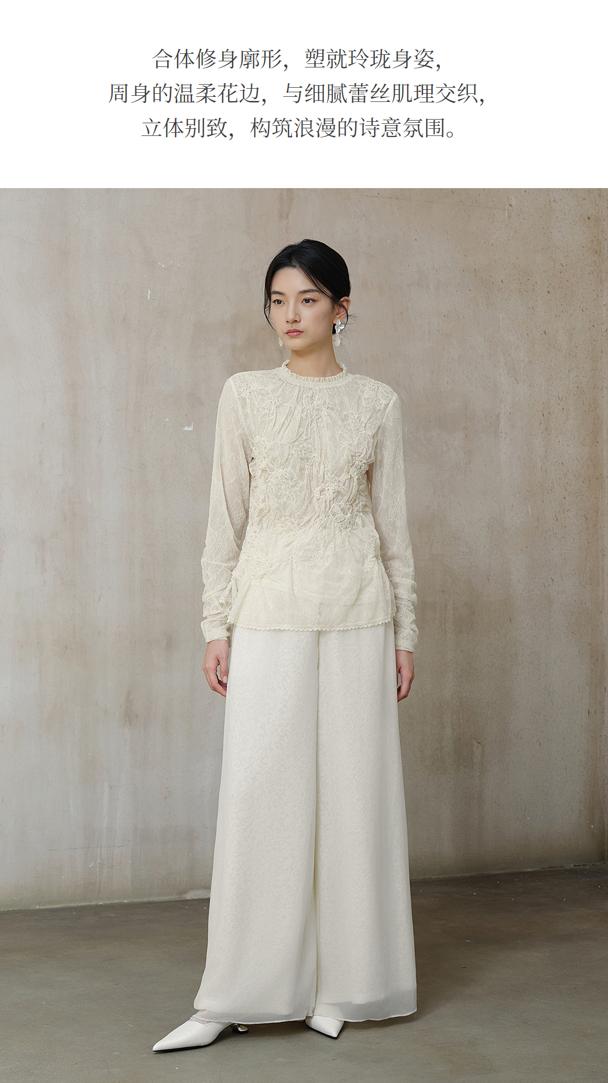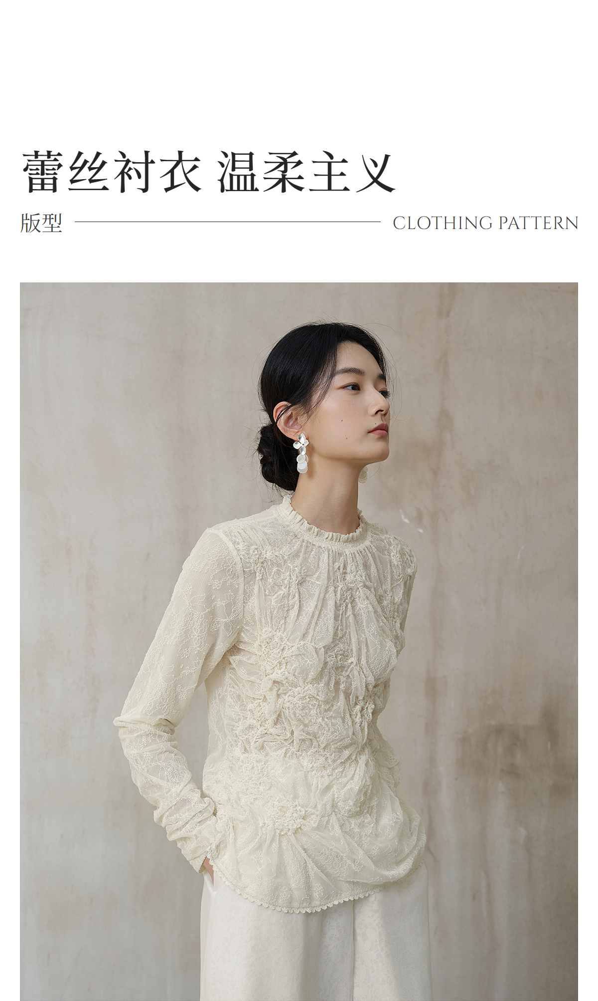 【林栖设计小店】蕾丝衬衣花边优雅肌理感修身显瘦2025秋冬新款长袖上衣女1954033