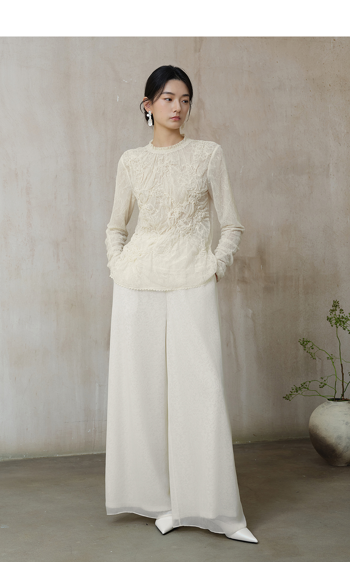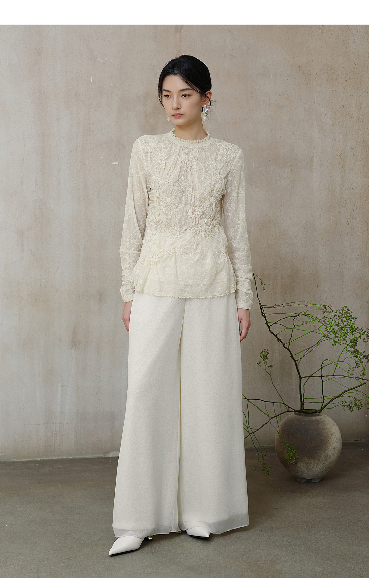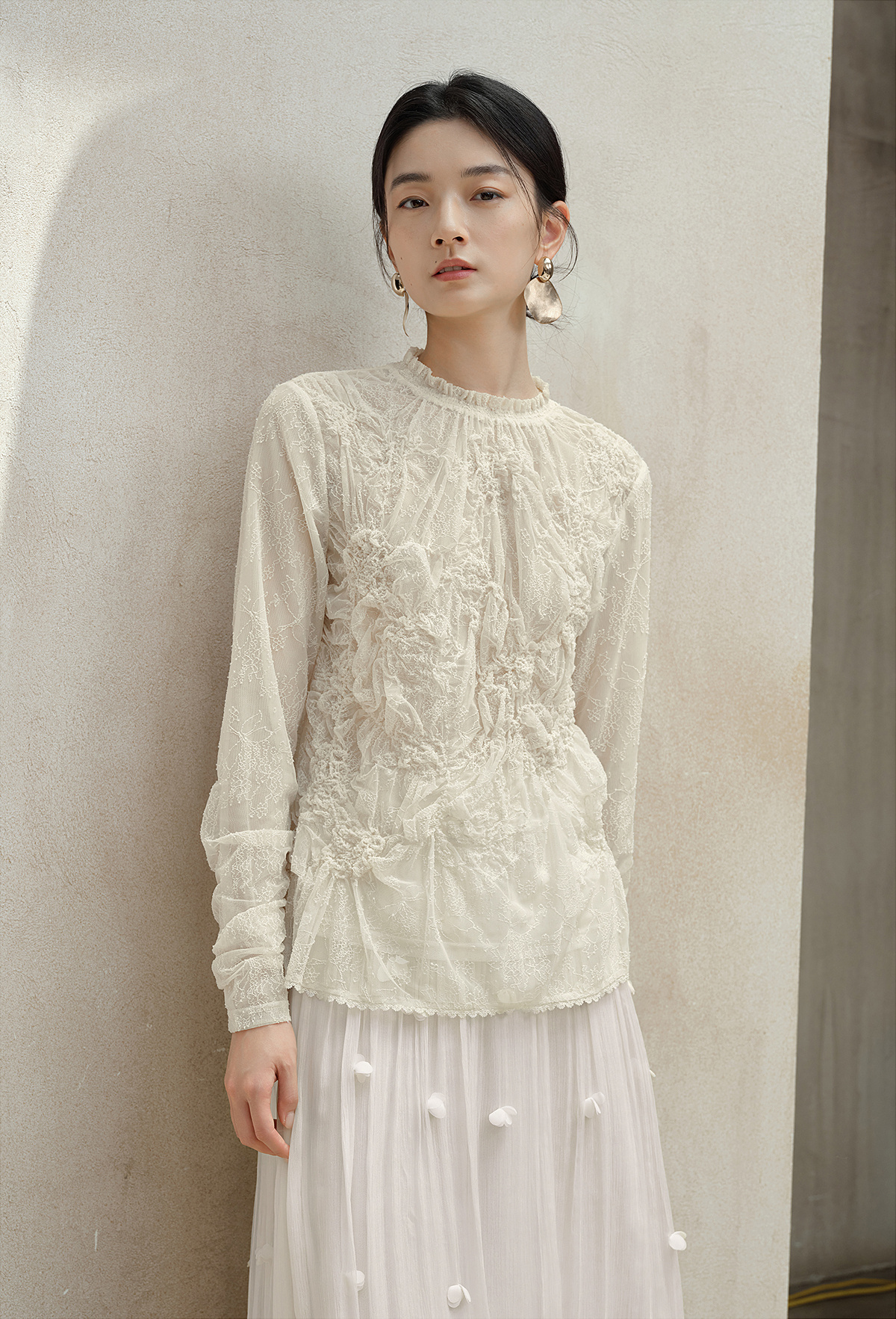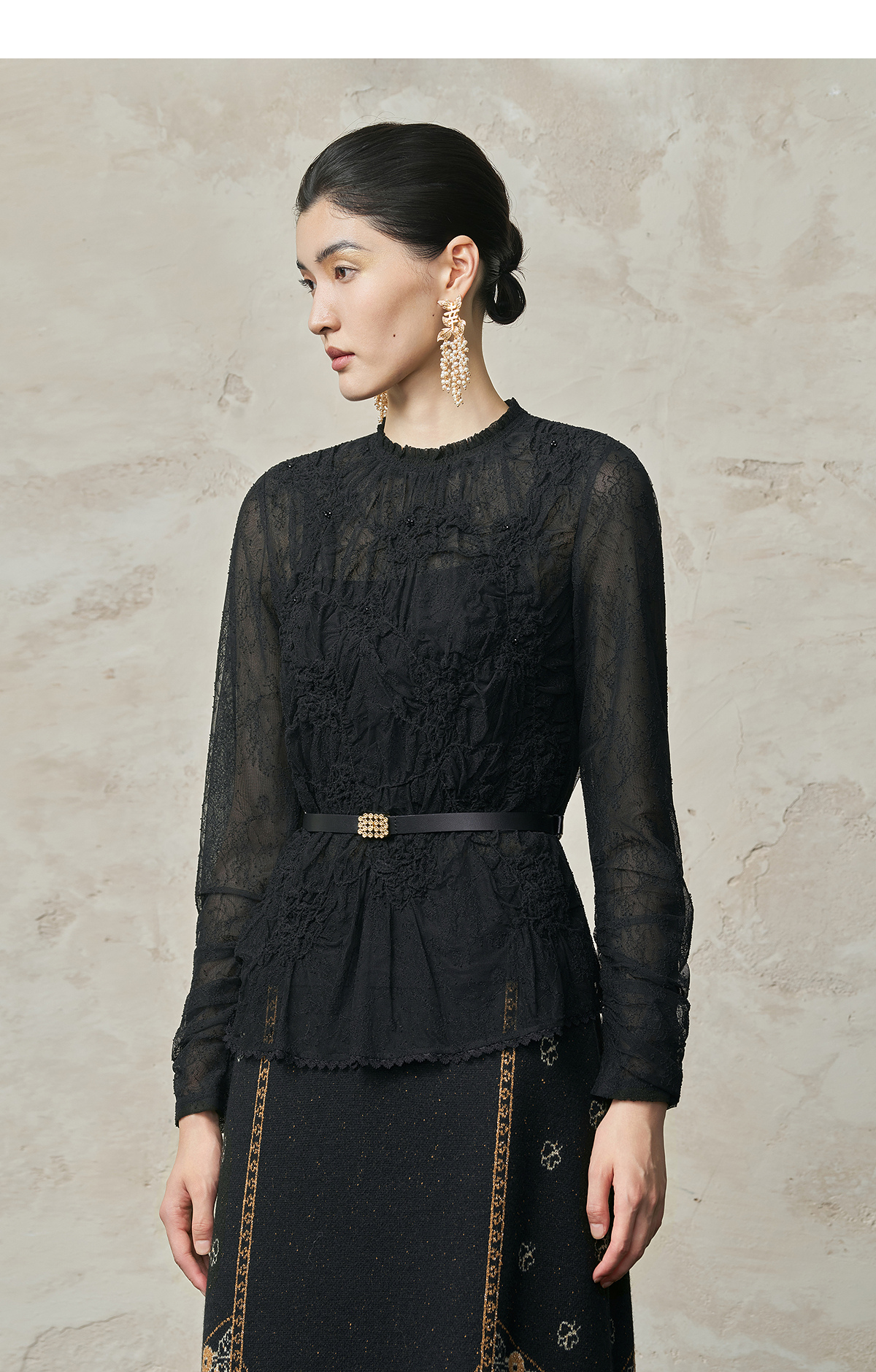 【林栖设计小店】蕾丝衬衣花边优雅肌理感修身显瘦2025秋冬新款长袖上衣女1954033