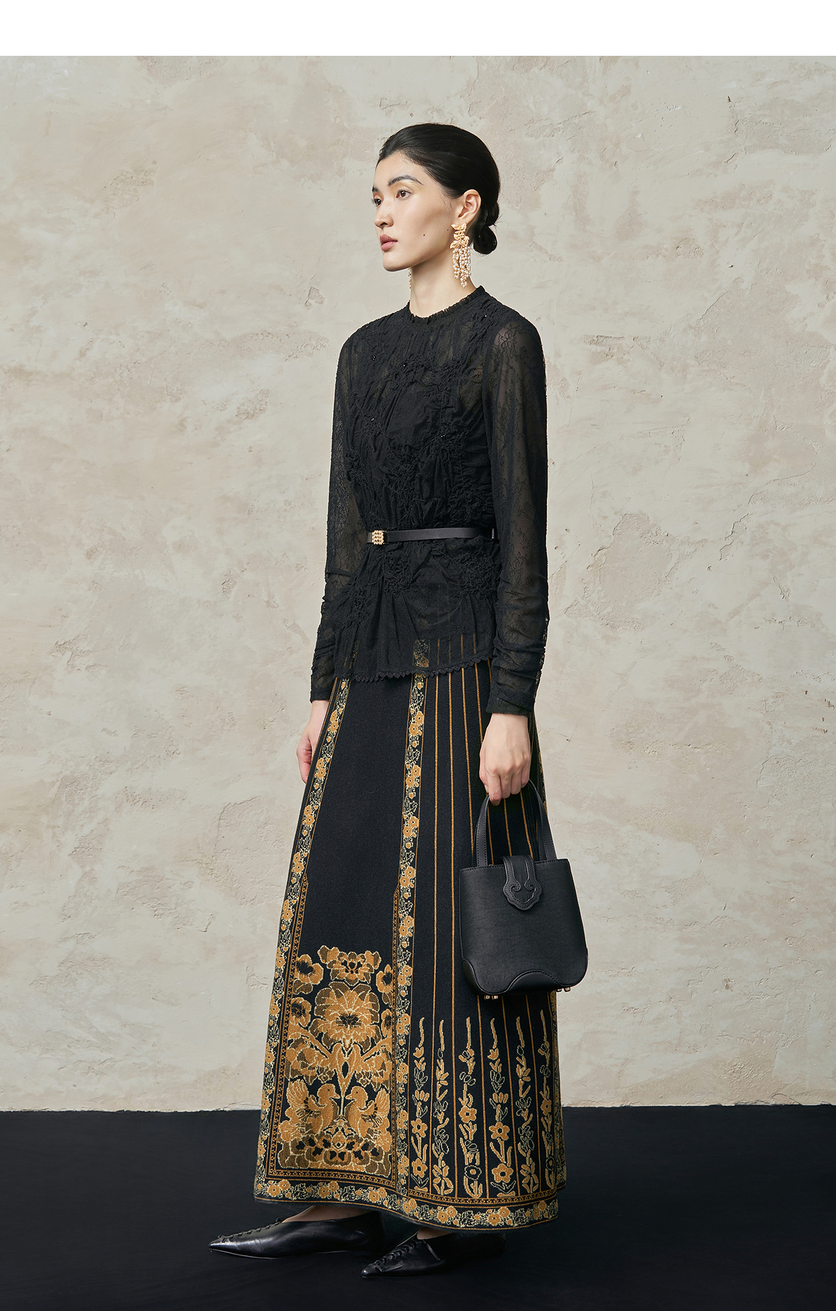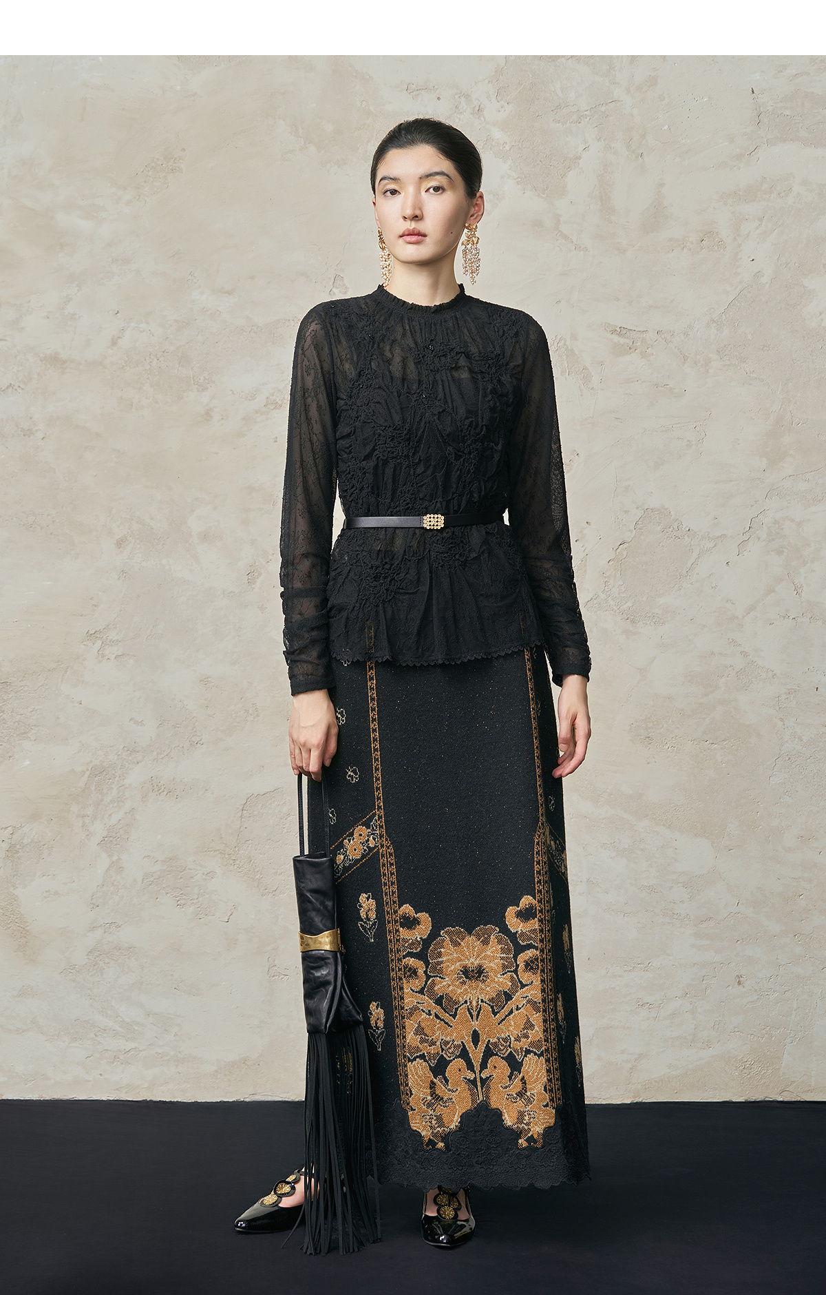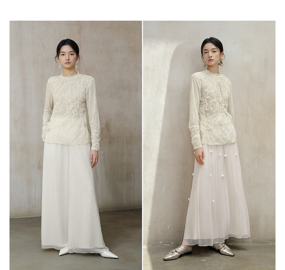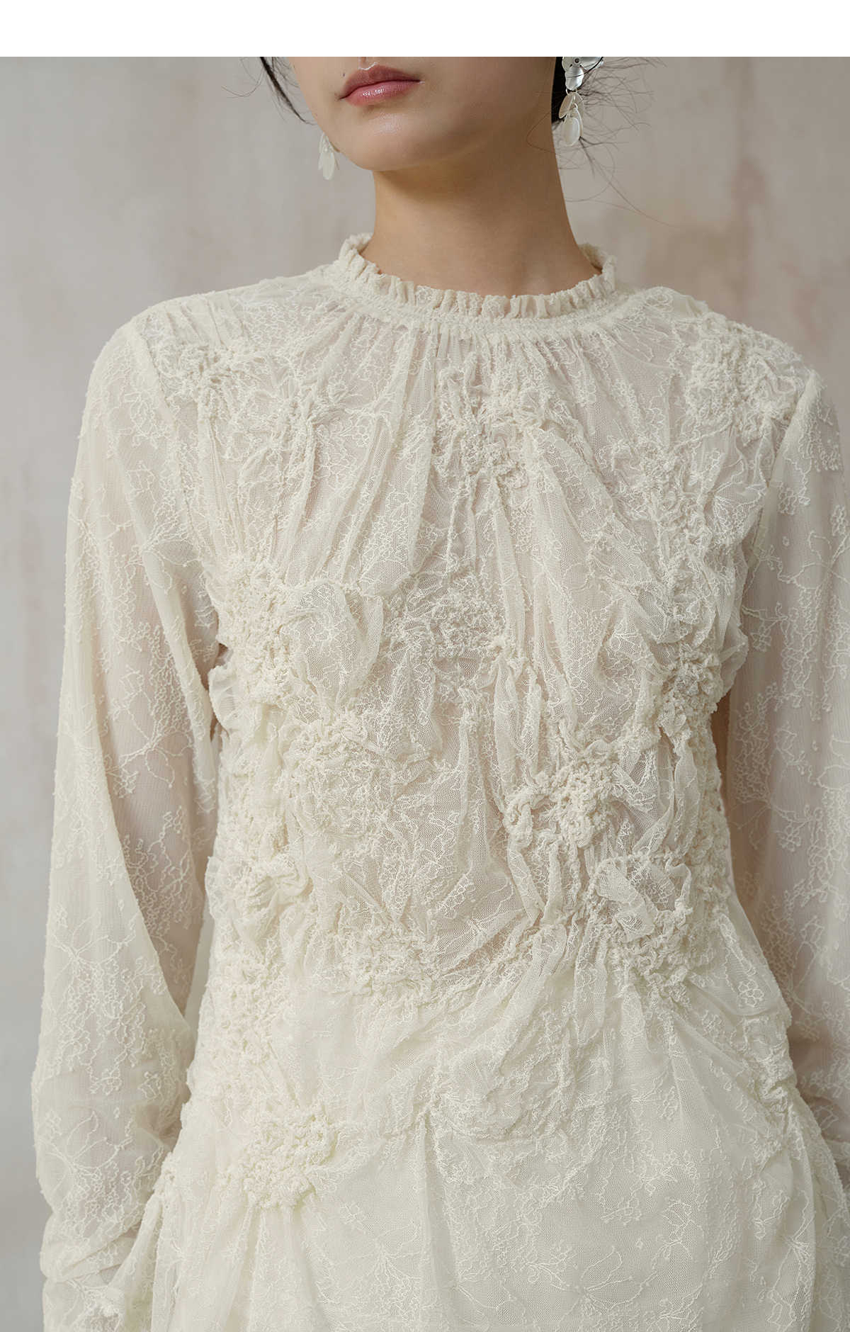 【林栖设计小店】蕾丝衬衣花边优雅肌理感修身显瘦2025秋冬新款长袖上衣女1954033