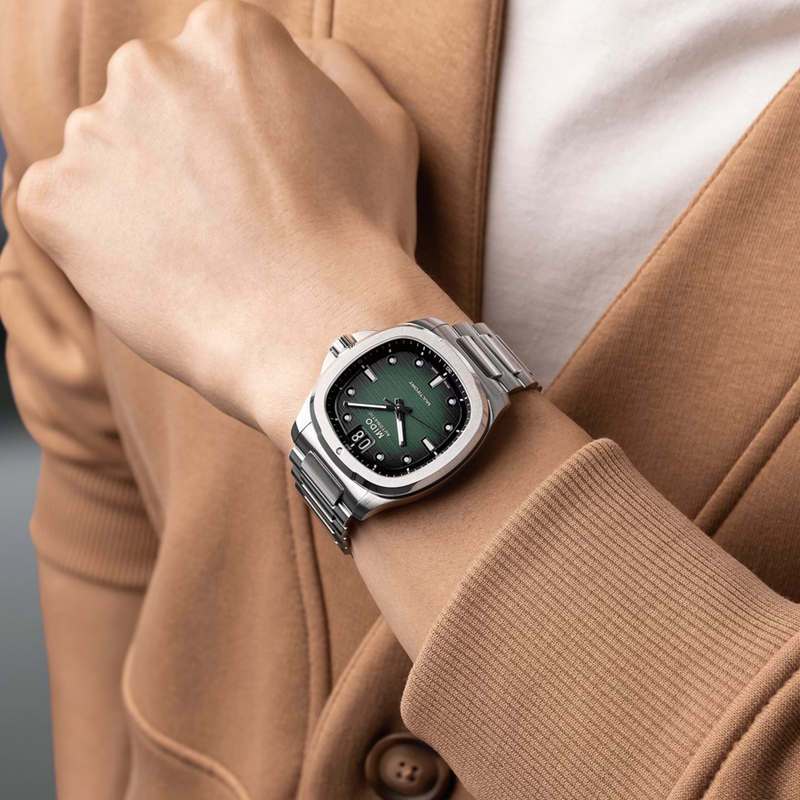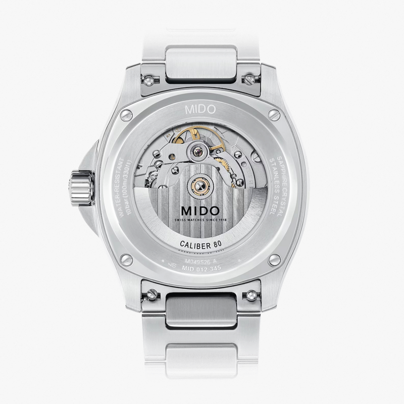 | 防水 | 100 m | 表扣 | 抛光和丝光打磨不锈钢表带;抛光中心链 折叠扣,配以Mido标志 |