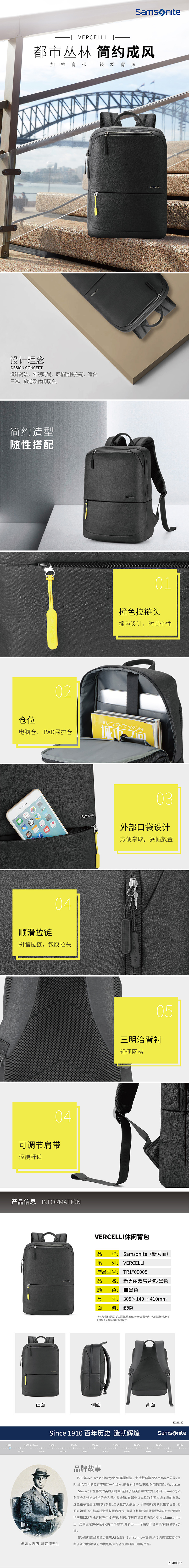 新秀丽 双肩包黑色 TR1*09114