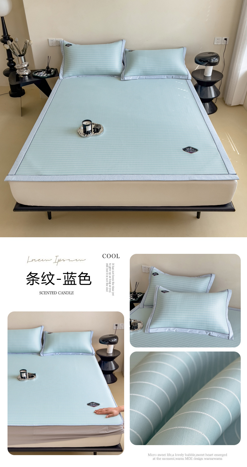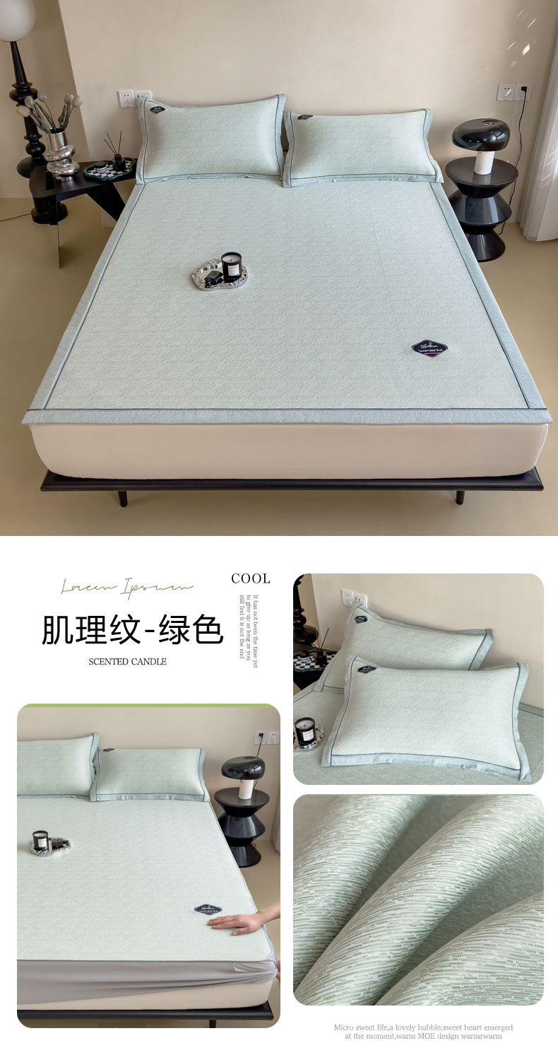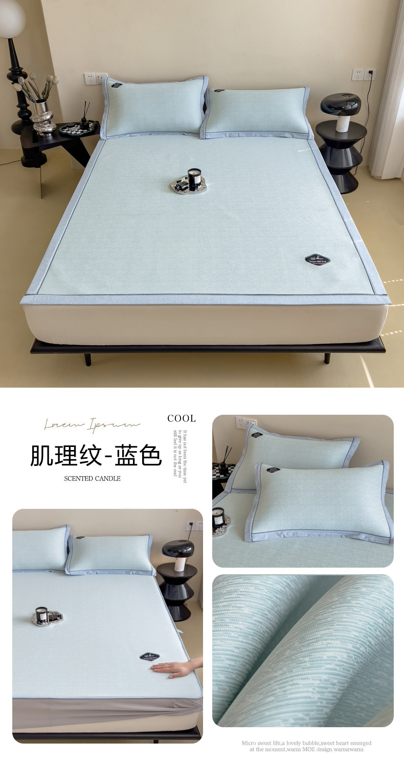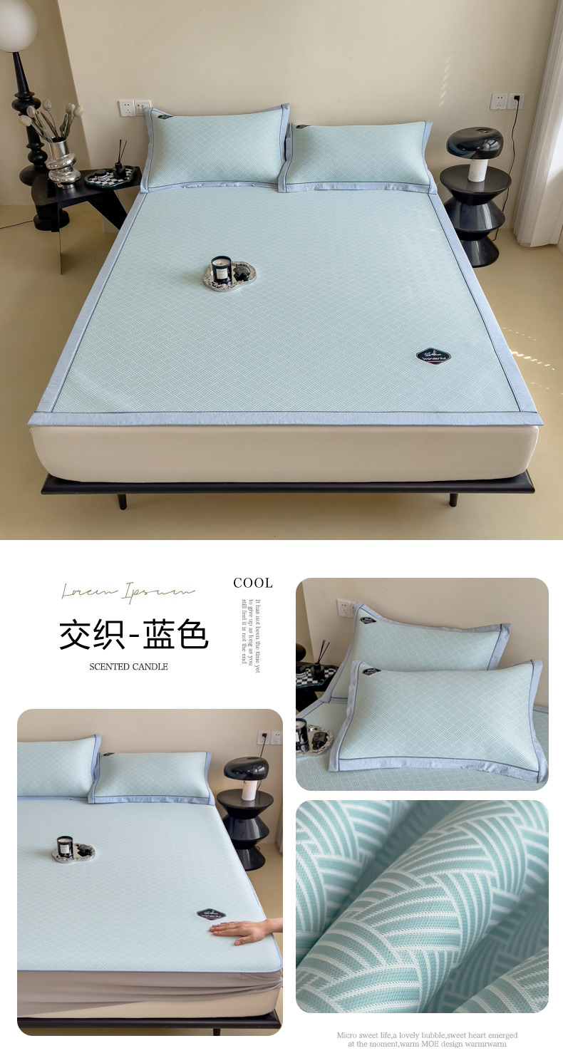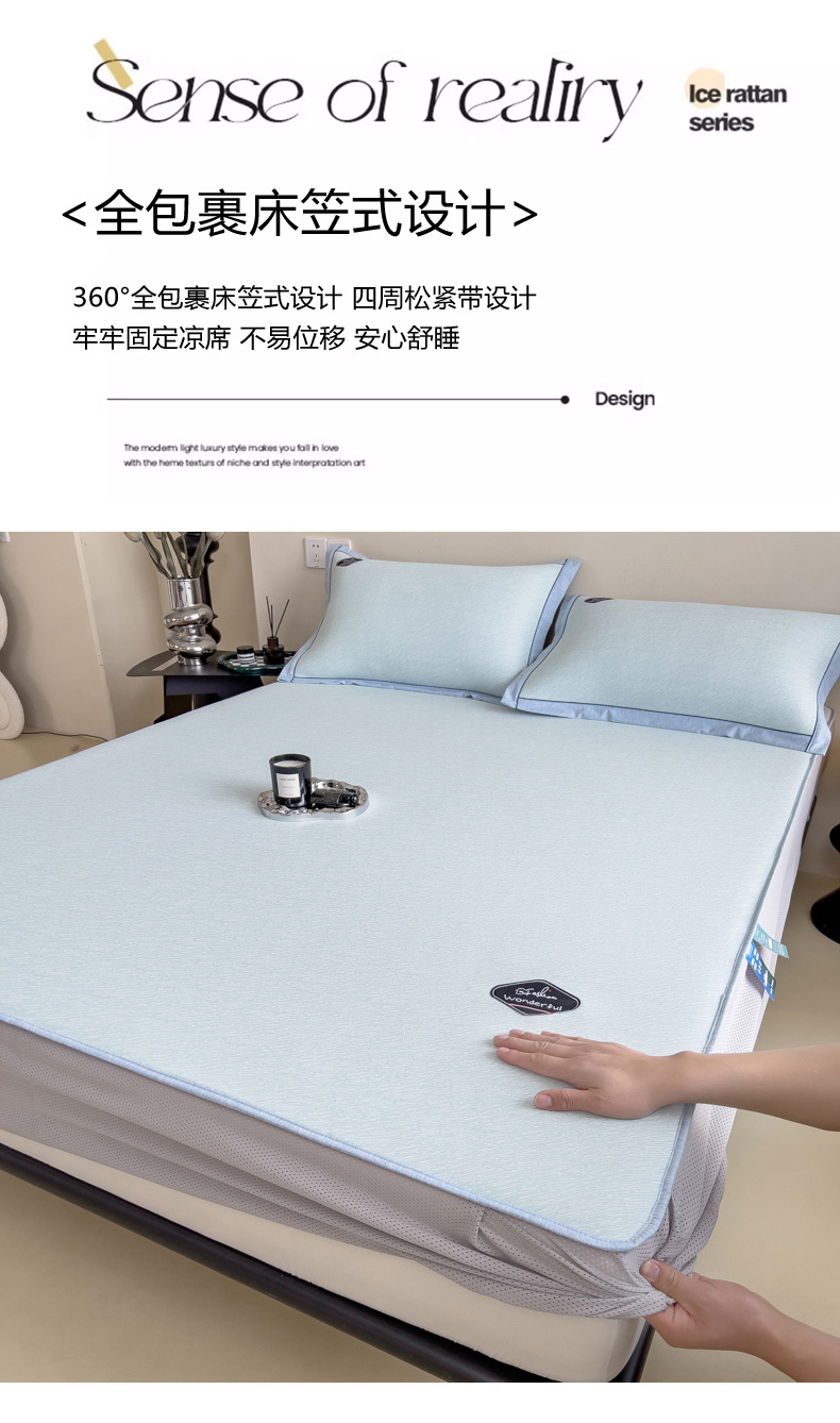 【轻奢质感冰丝席三件套】夏日冰爽凉感软凉席三件套 无痕无印三明治床笠式凉席