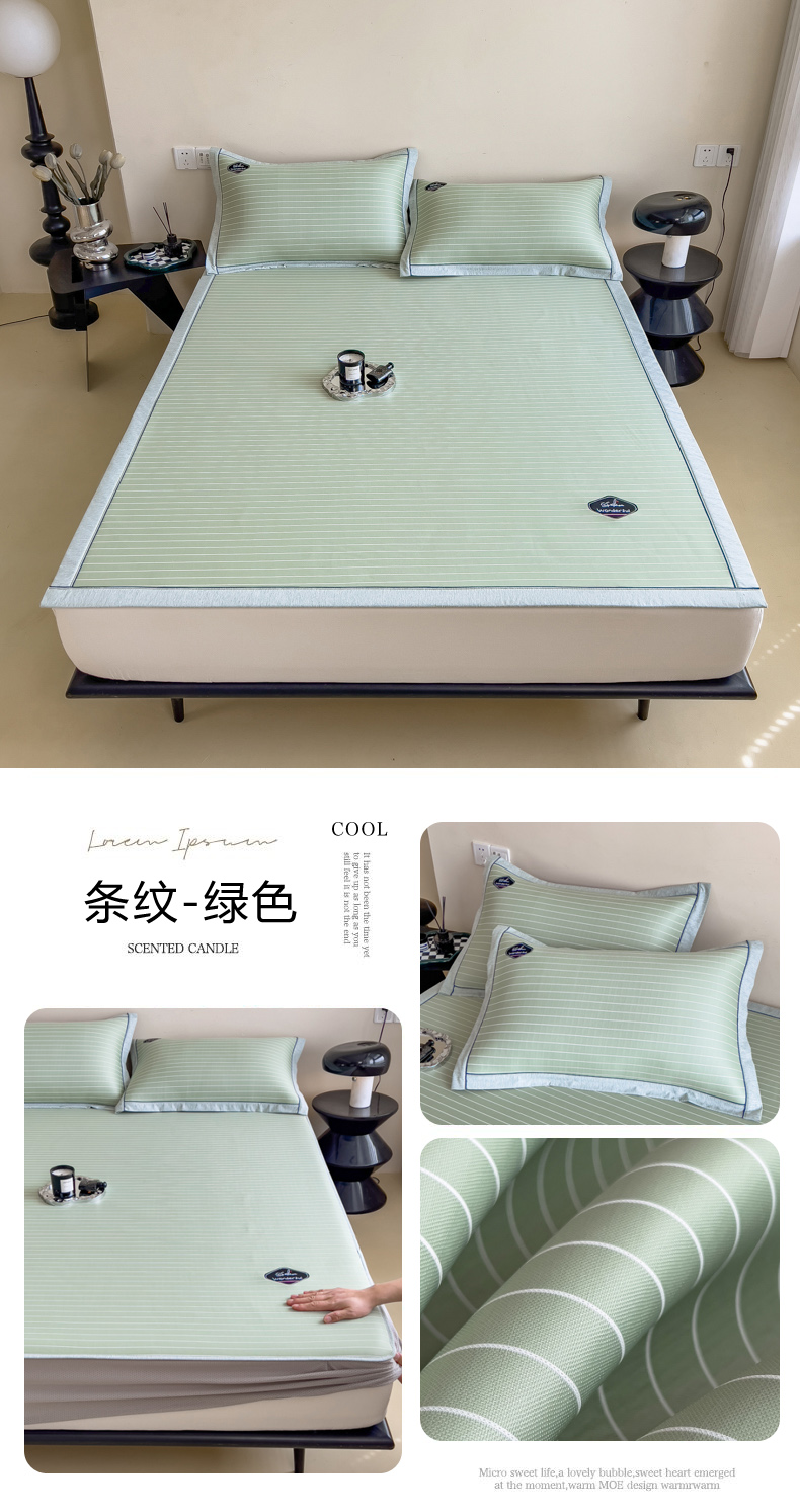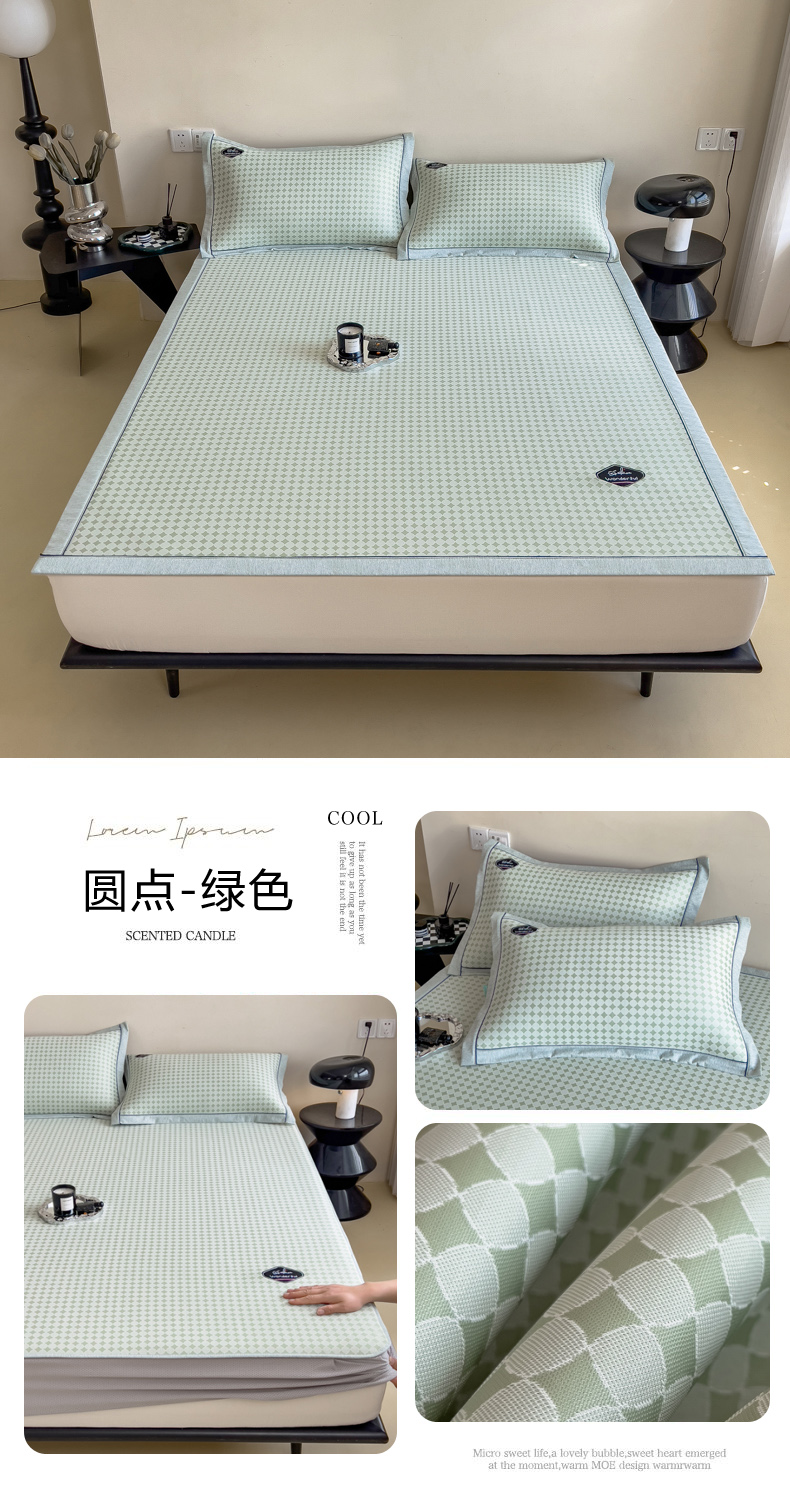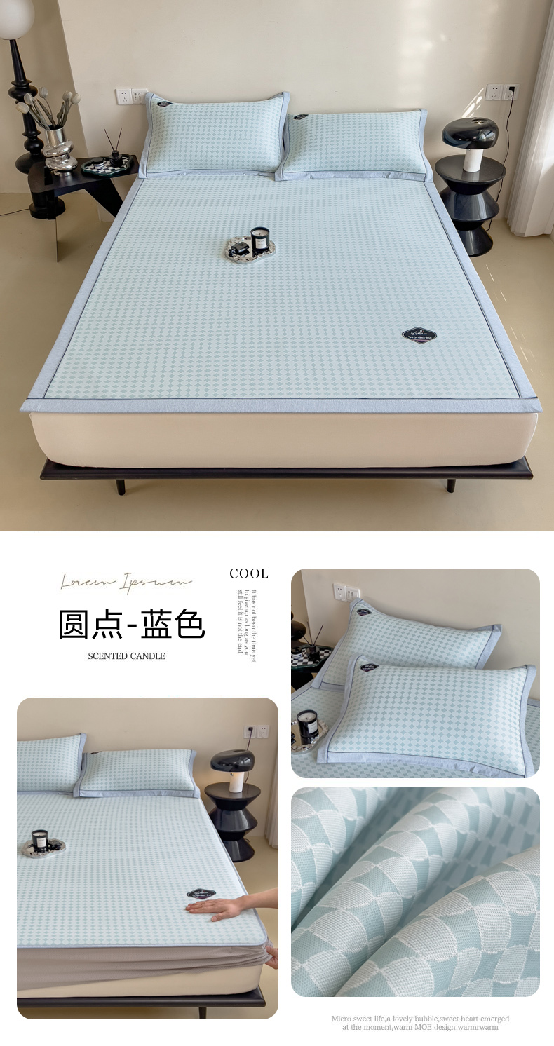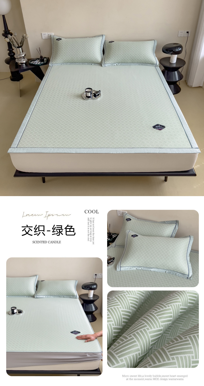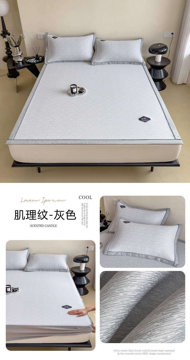 【轻奢质感冰丝席三件套】夏日冰爽凉感软凉席三件套 无痕无印三明治床笠式凉席