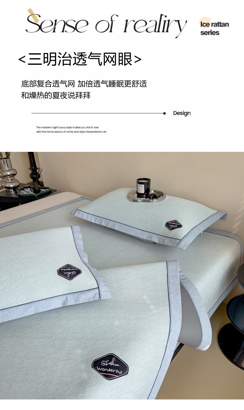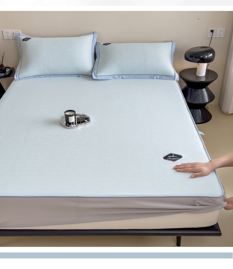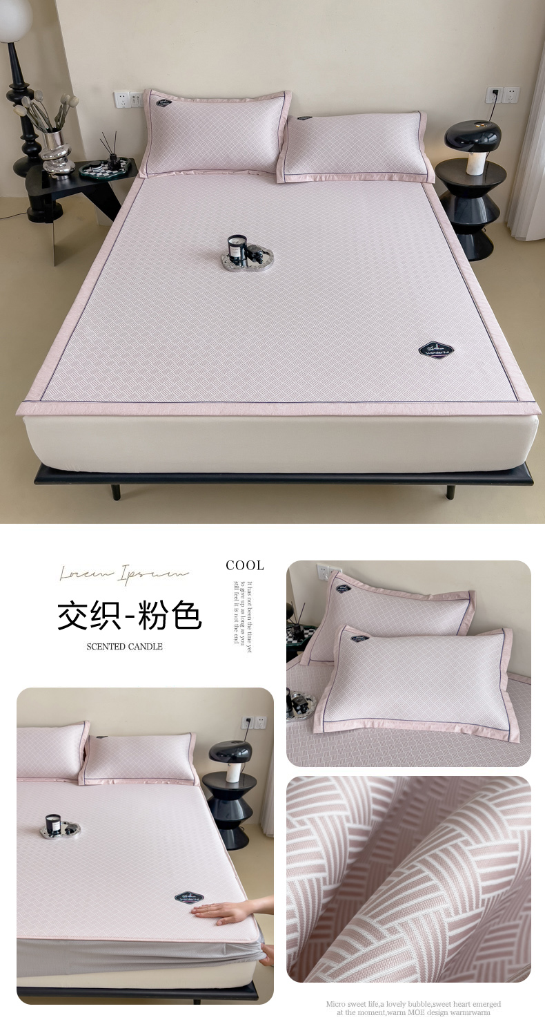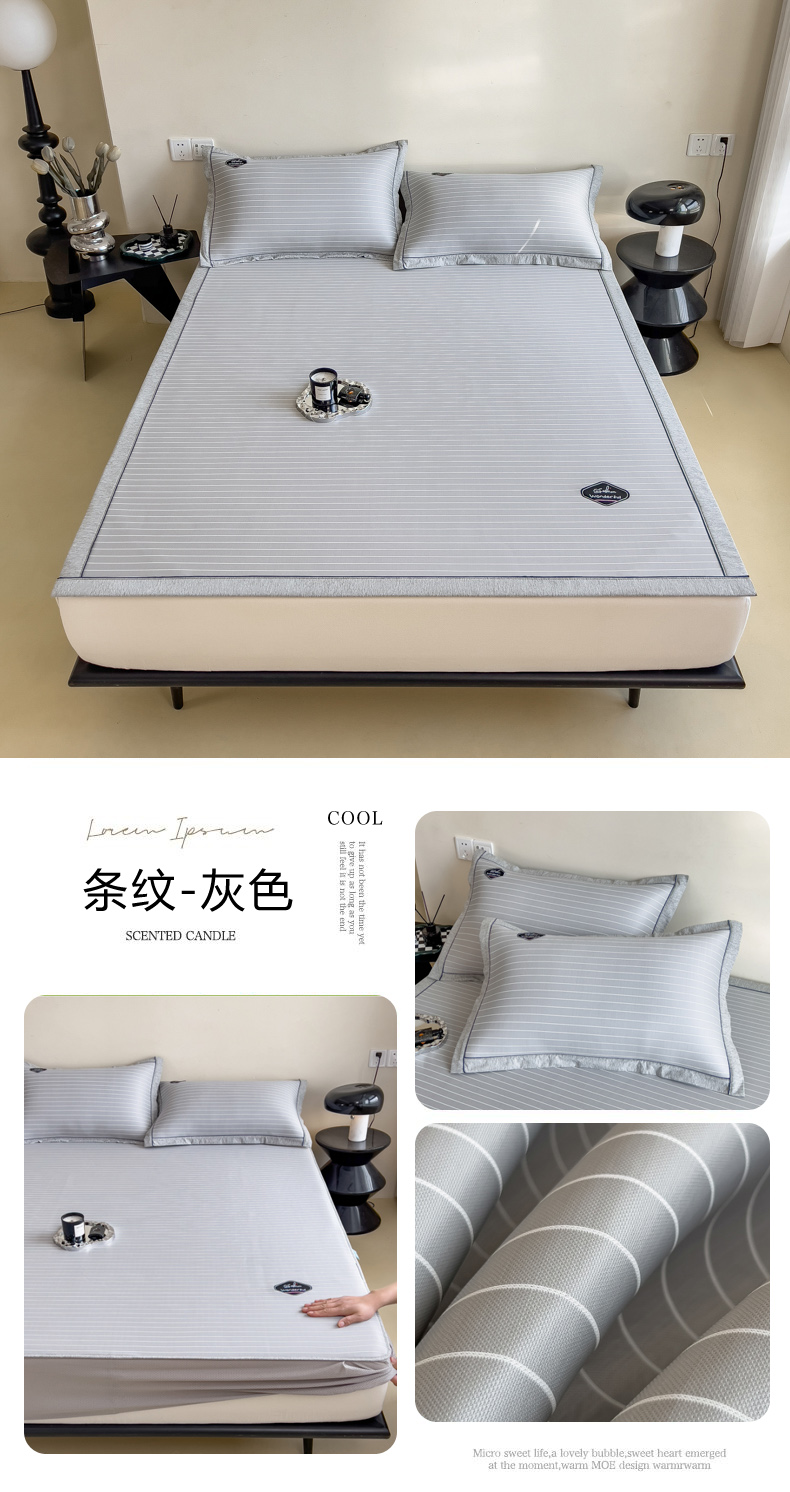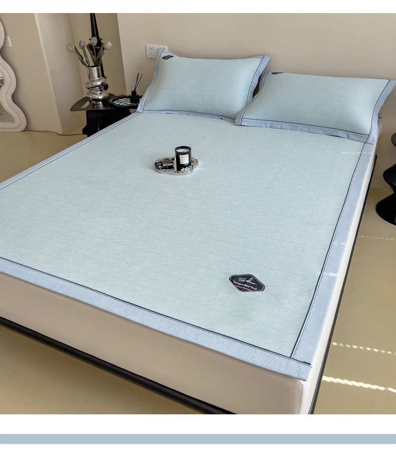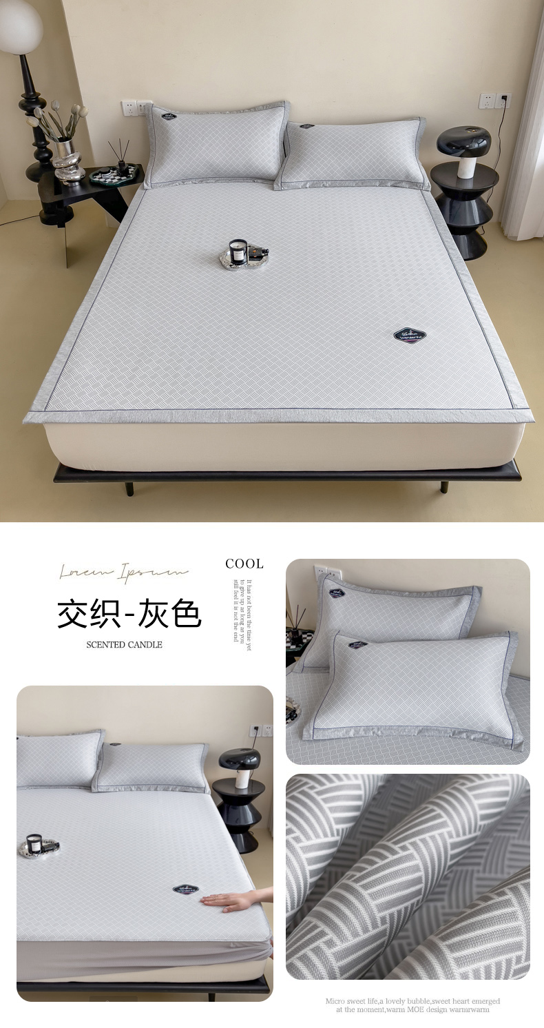 【轻奢质感冰丝席三件套】夏日冰爽凉感软凉席三件套 无痕无印三明治床笠式凉席