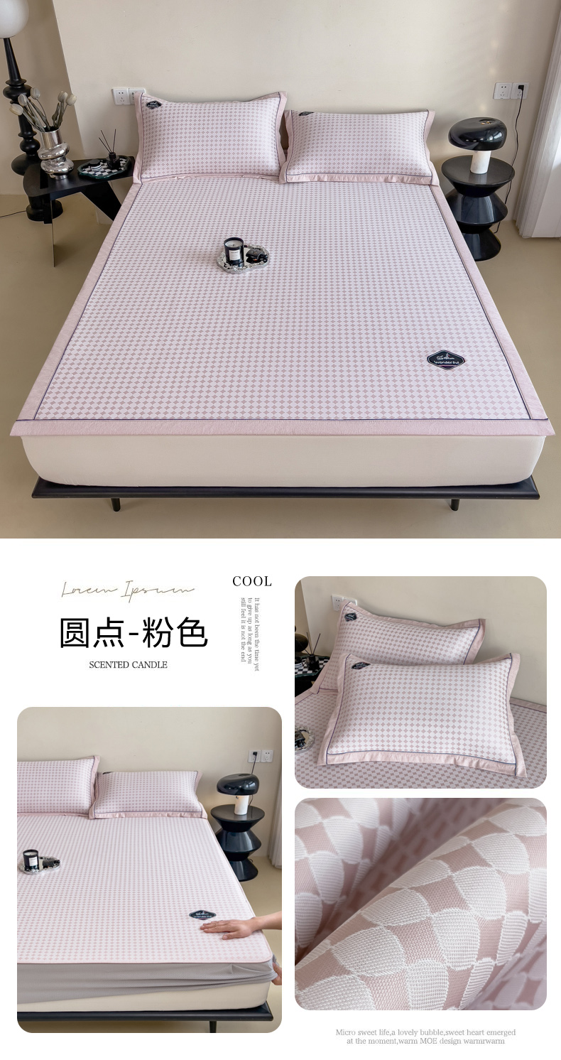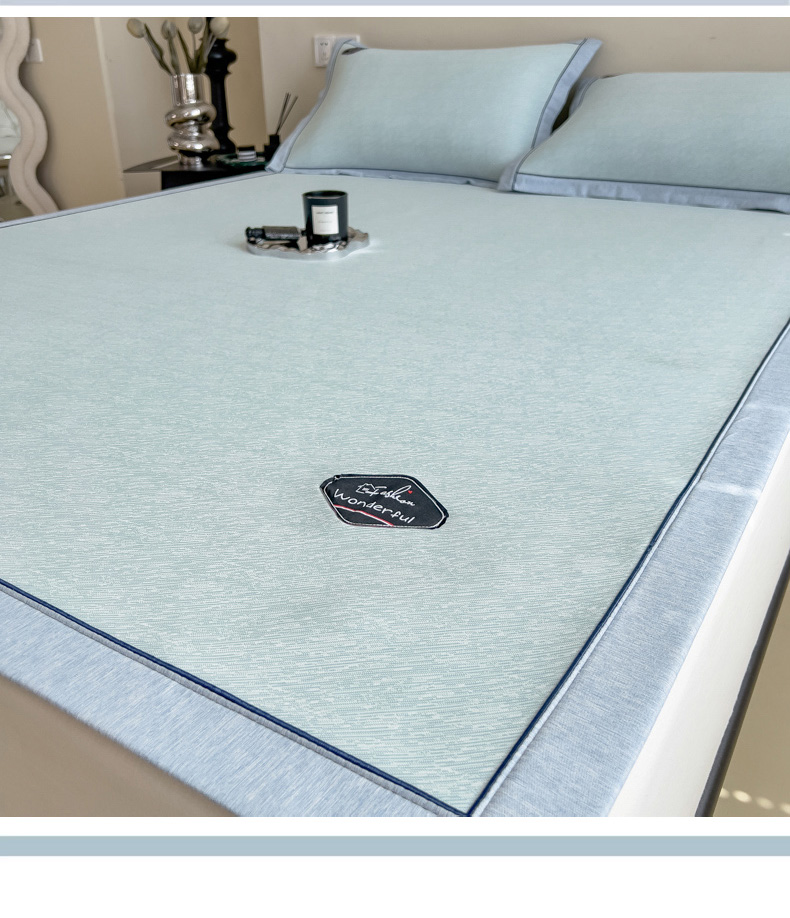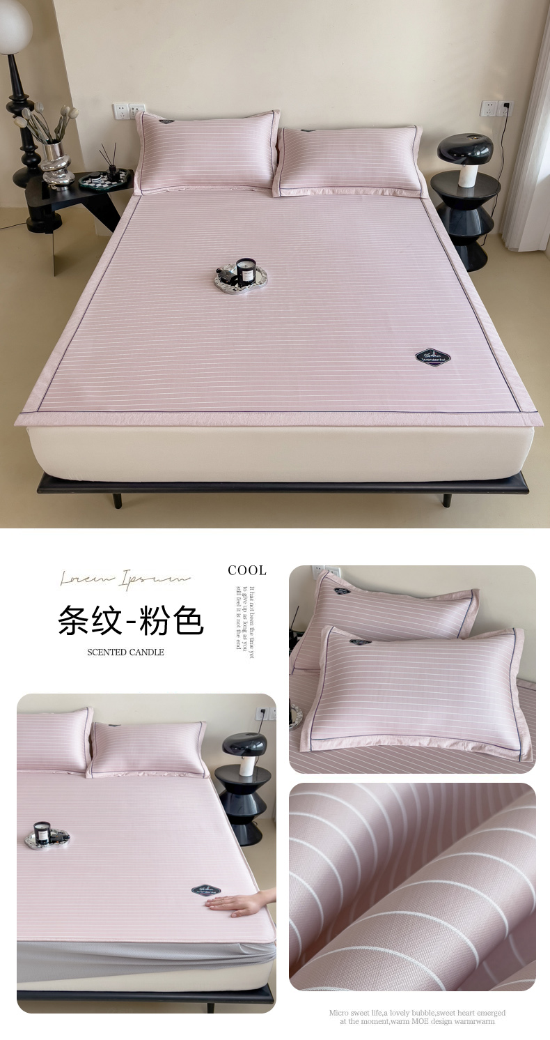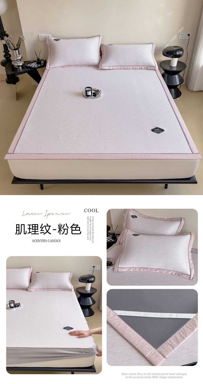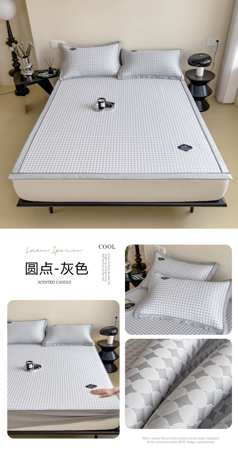 【轻奢质感冰丝席三件套】夏日冰爽凉感软凉席三件套 无痕无印三明治床笠式凉席