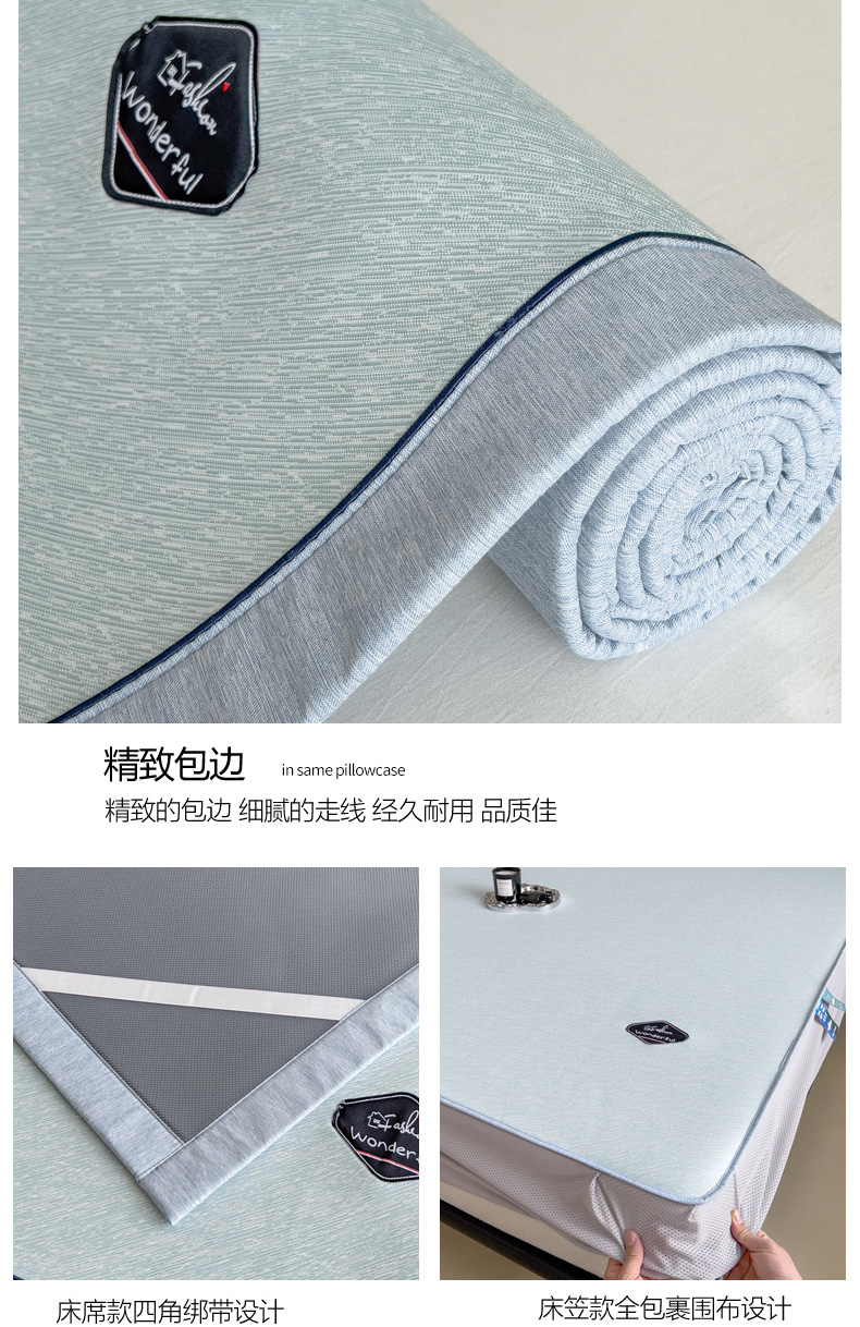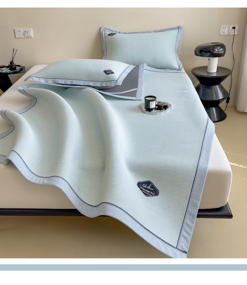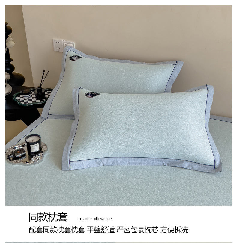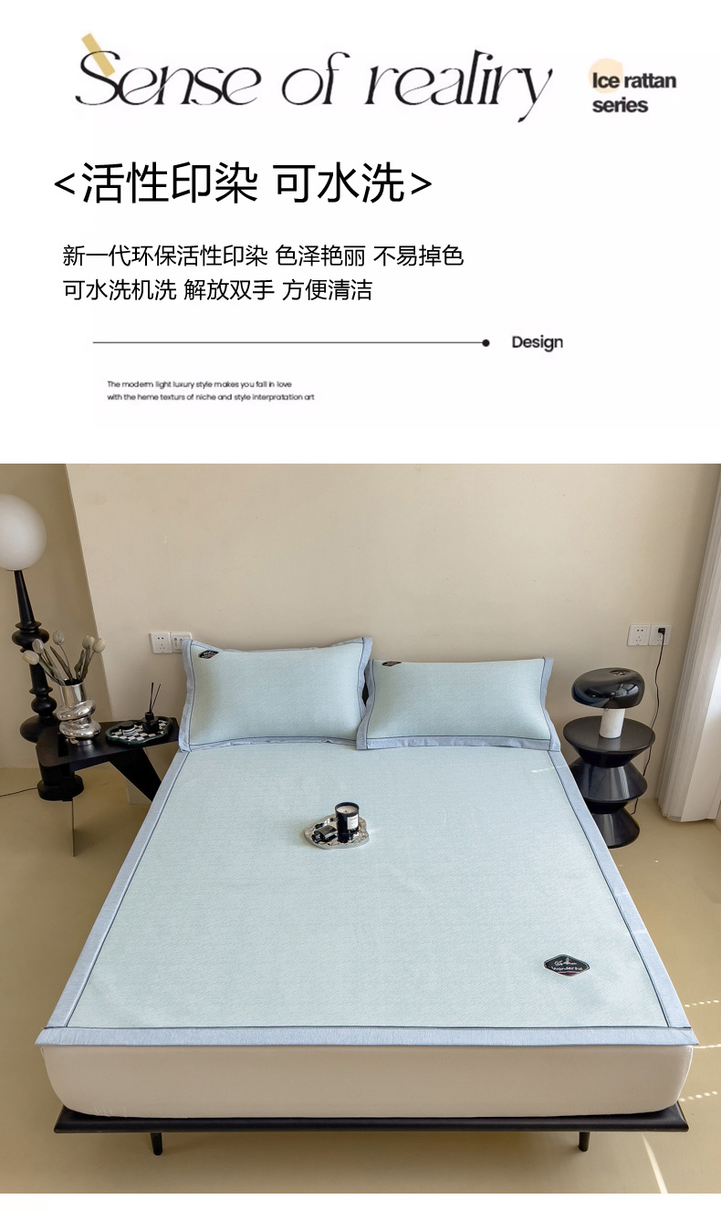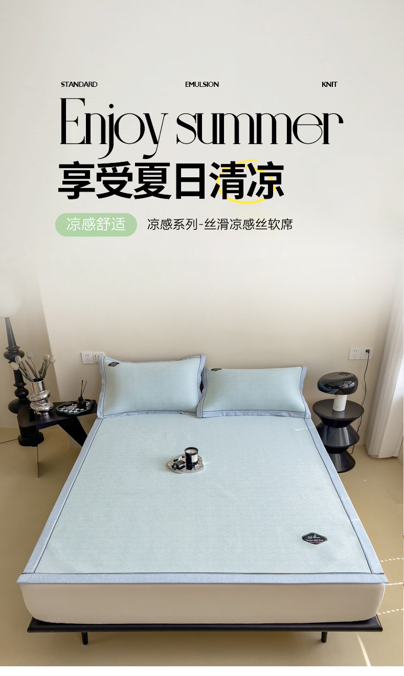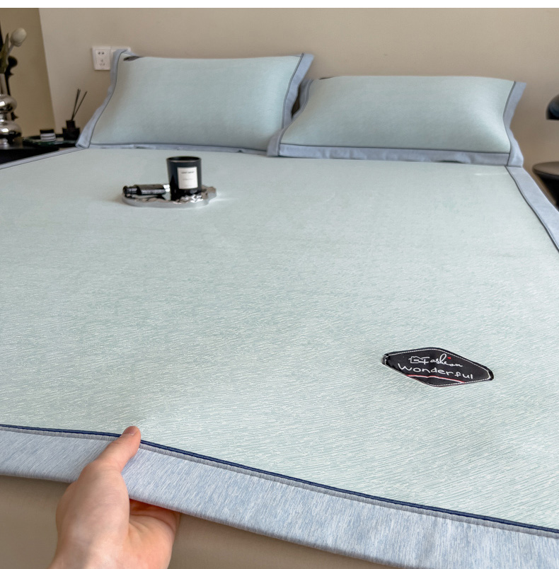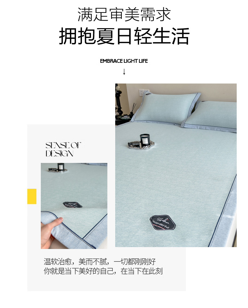 【轻奢质感冰丝席三件套】夏日冰爽凉感软凉席三件套 无痕无印三明治床笠式凉席