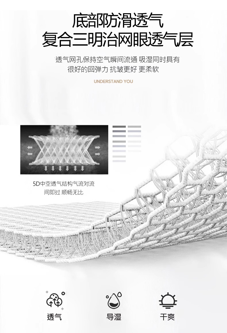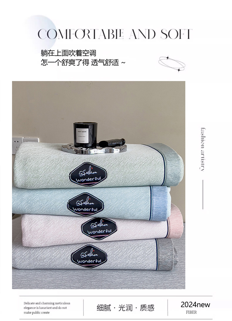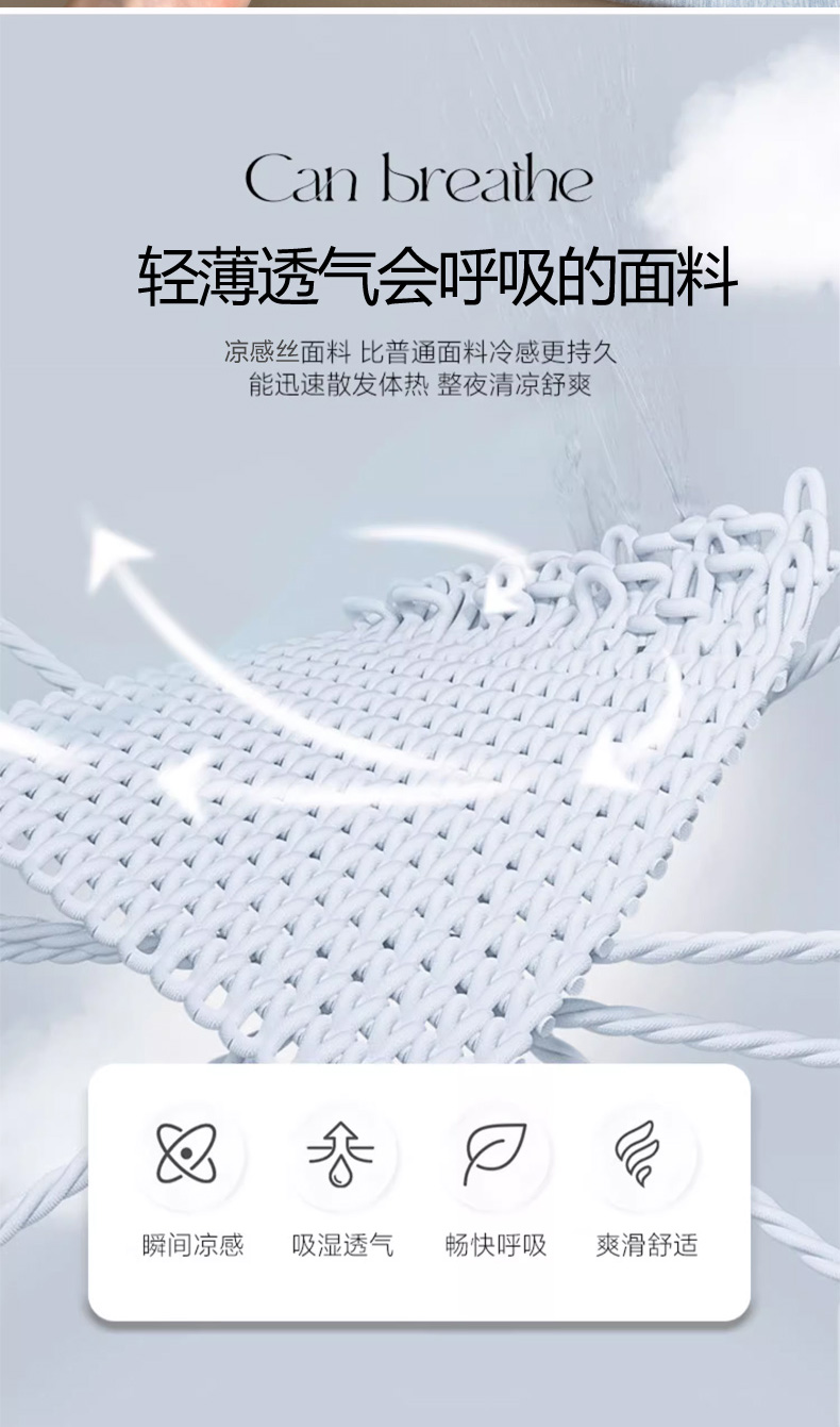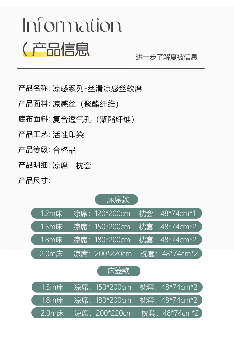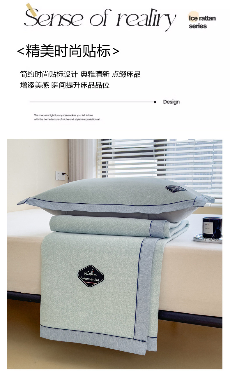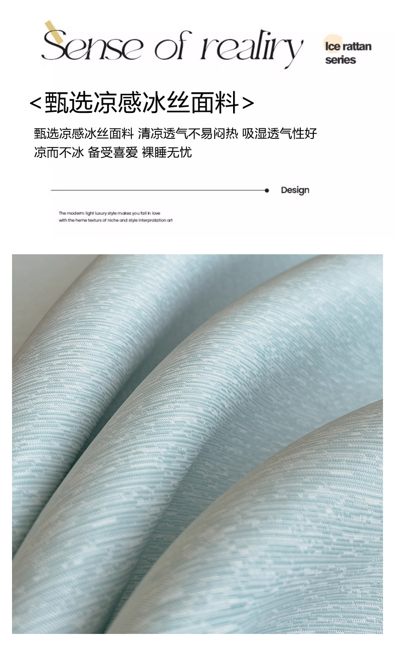 【轻奢质感冰丝席三件套】夏日冰爽凉感软凉席三件套 无痕无印三明治床笠式凉席