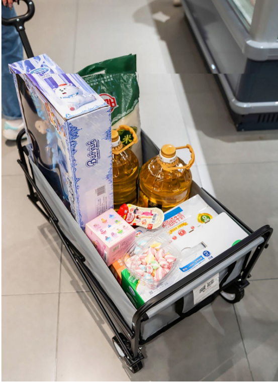 还是一个可以折叠的便携的购物车,买东西再多也不怕