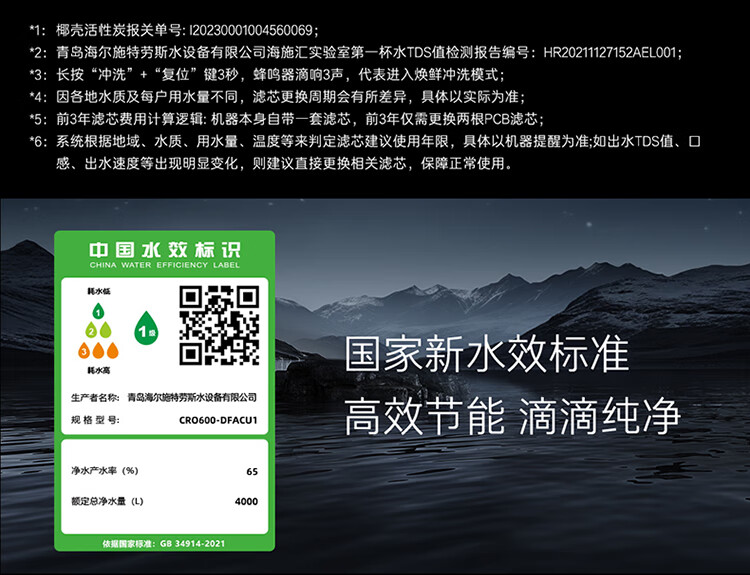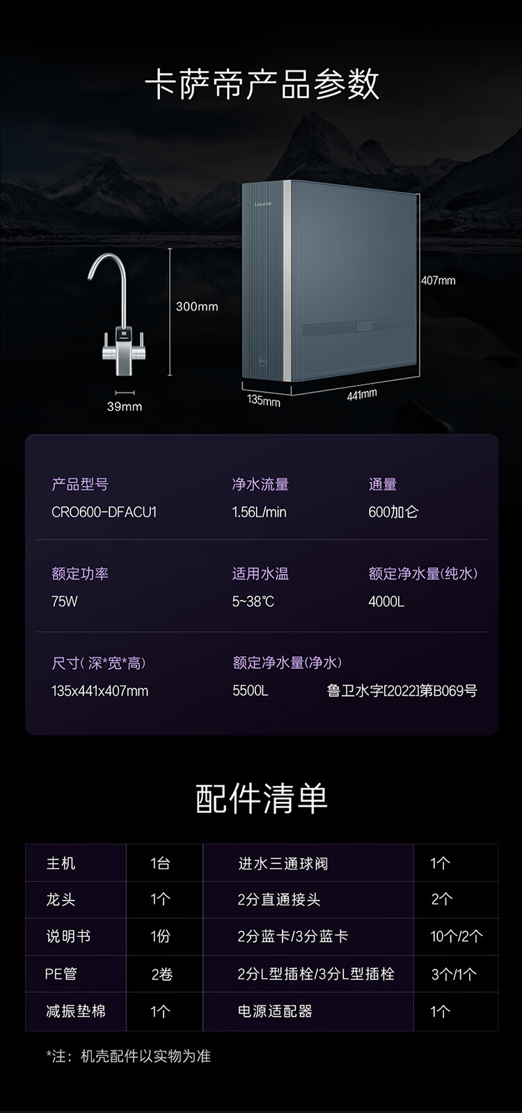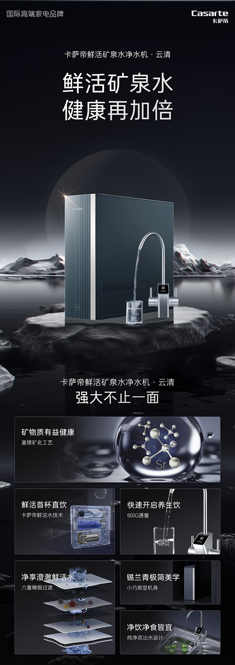 卡萨帝(Casarte)净水器家用净水机 富锶鲜活水矿泉水600G大通量纯净双出水 CRO600-DFACU1