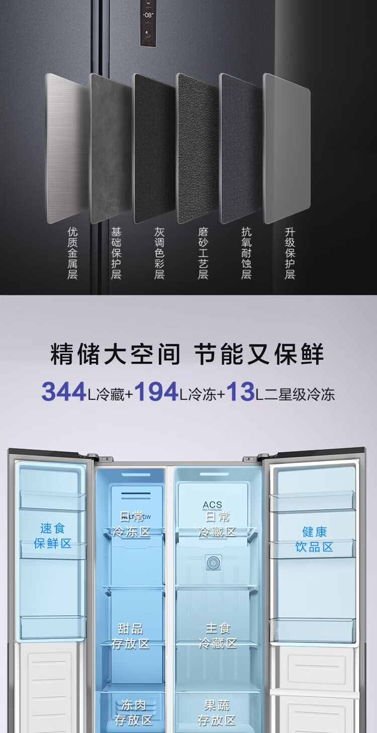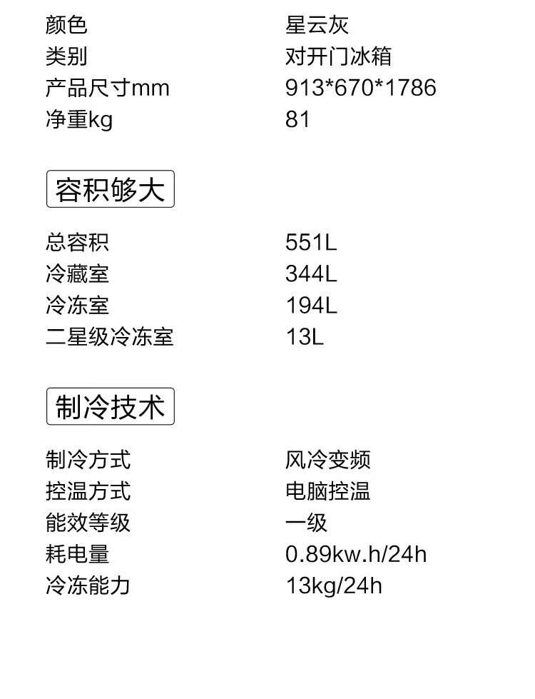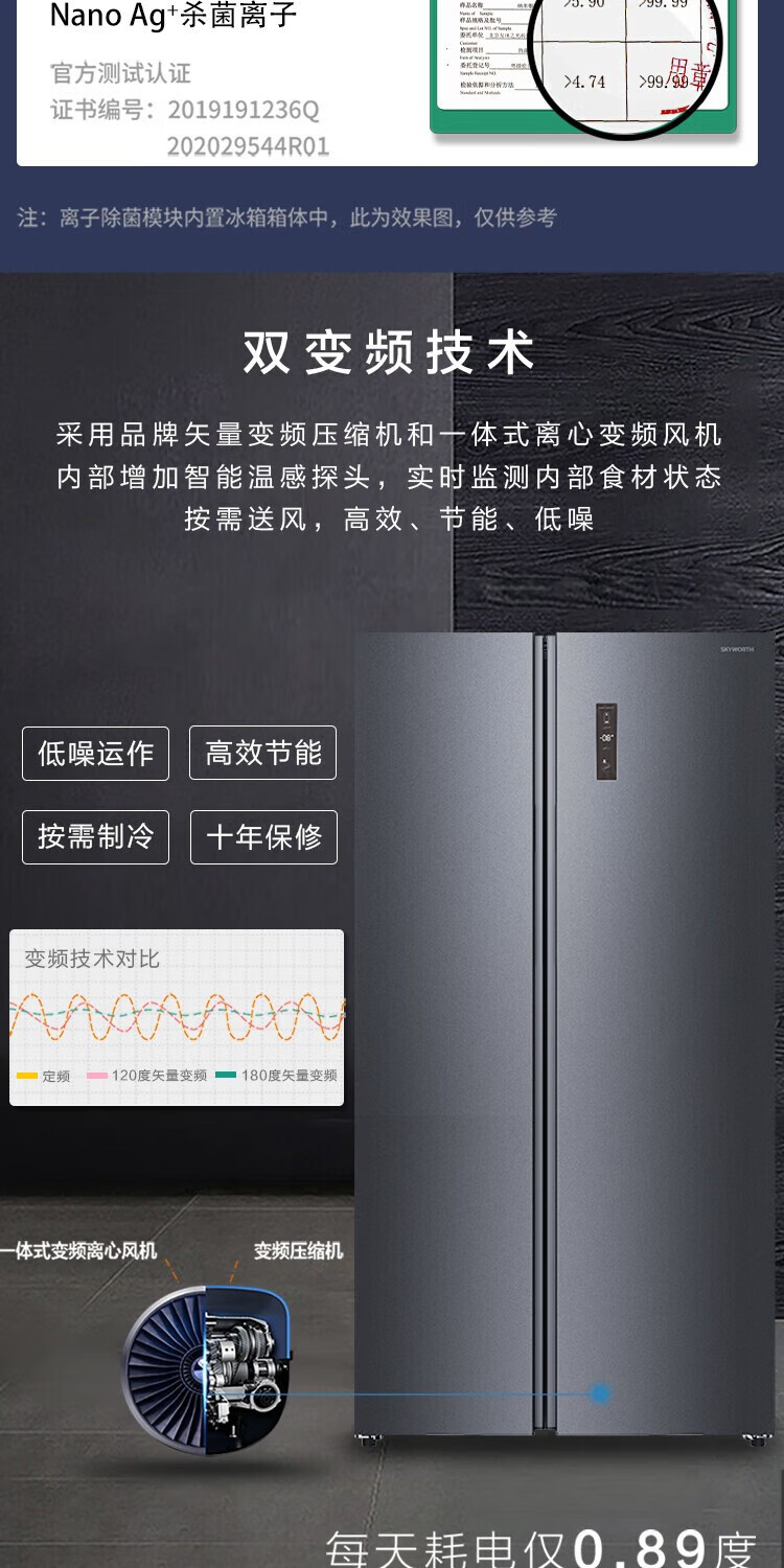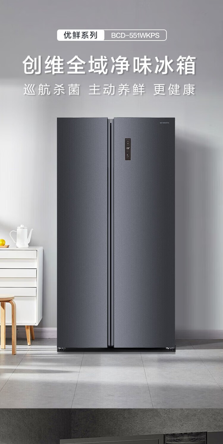 【家电焕新季】创维对开门家用电冰箱 风冷无霜 一级能效大容量551升双变频BCD-551WKPS 星云灰