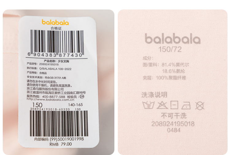 巴拉巴拉女童小背心发育期小学生少女文胸一阶段儿童内衣萌随心裁