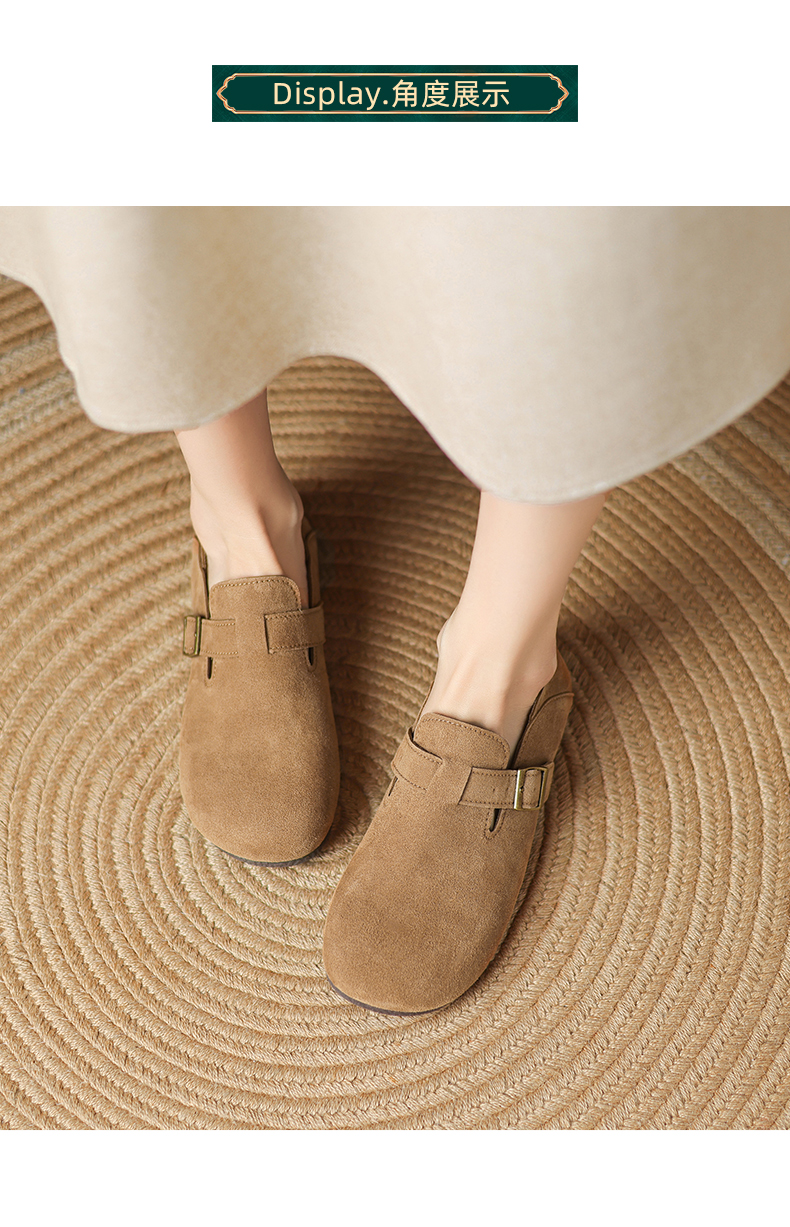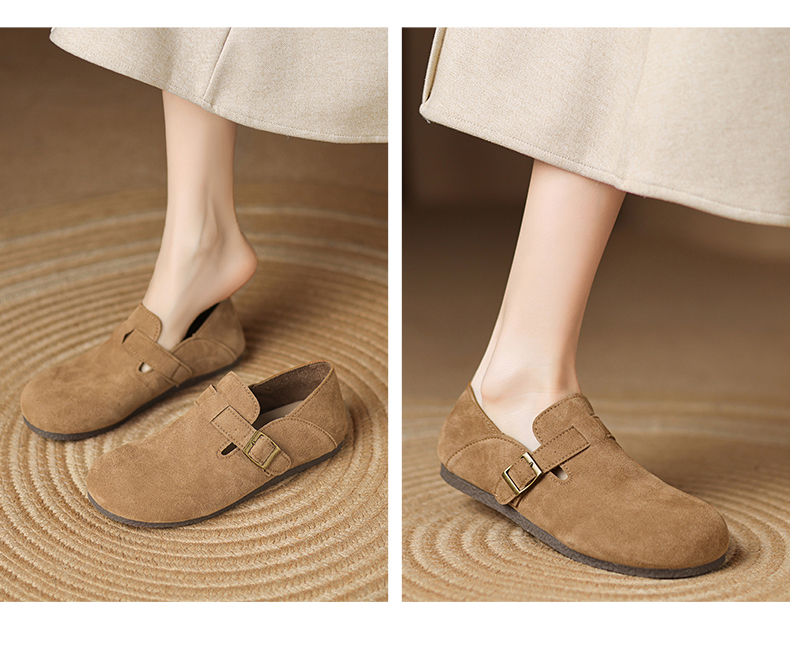 阿么手工女鞋复古休闲真皮勃肯鞋透气2025新款软底百搭单鞋女2CM