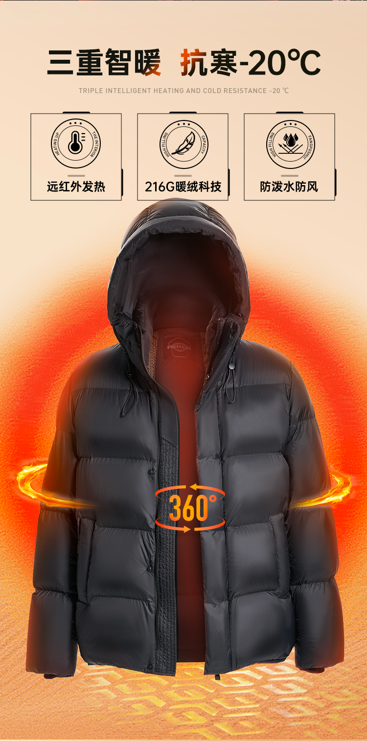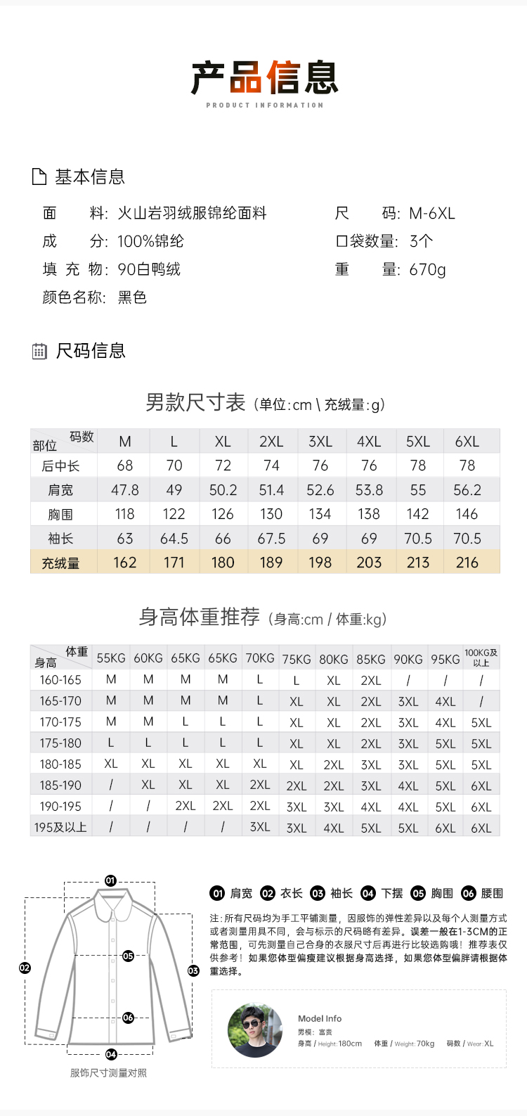 【火山黑金羽绒服】保暖防寒羽绒服外套通勤连帽棉服YZ402